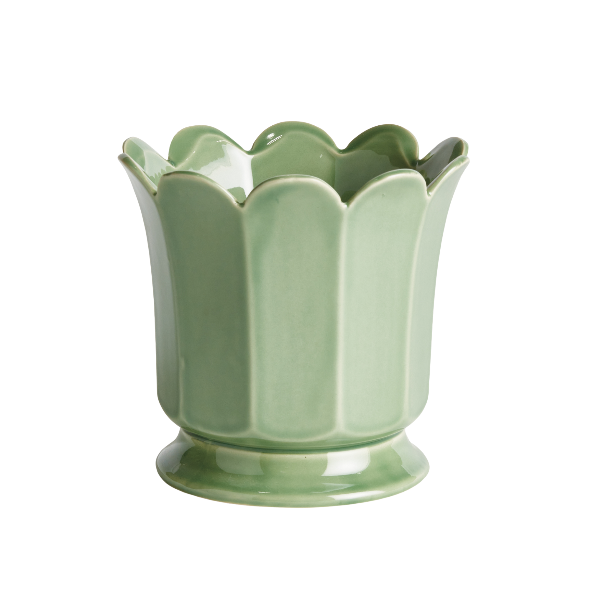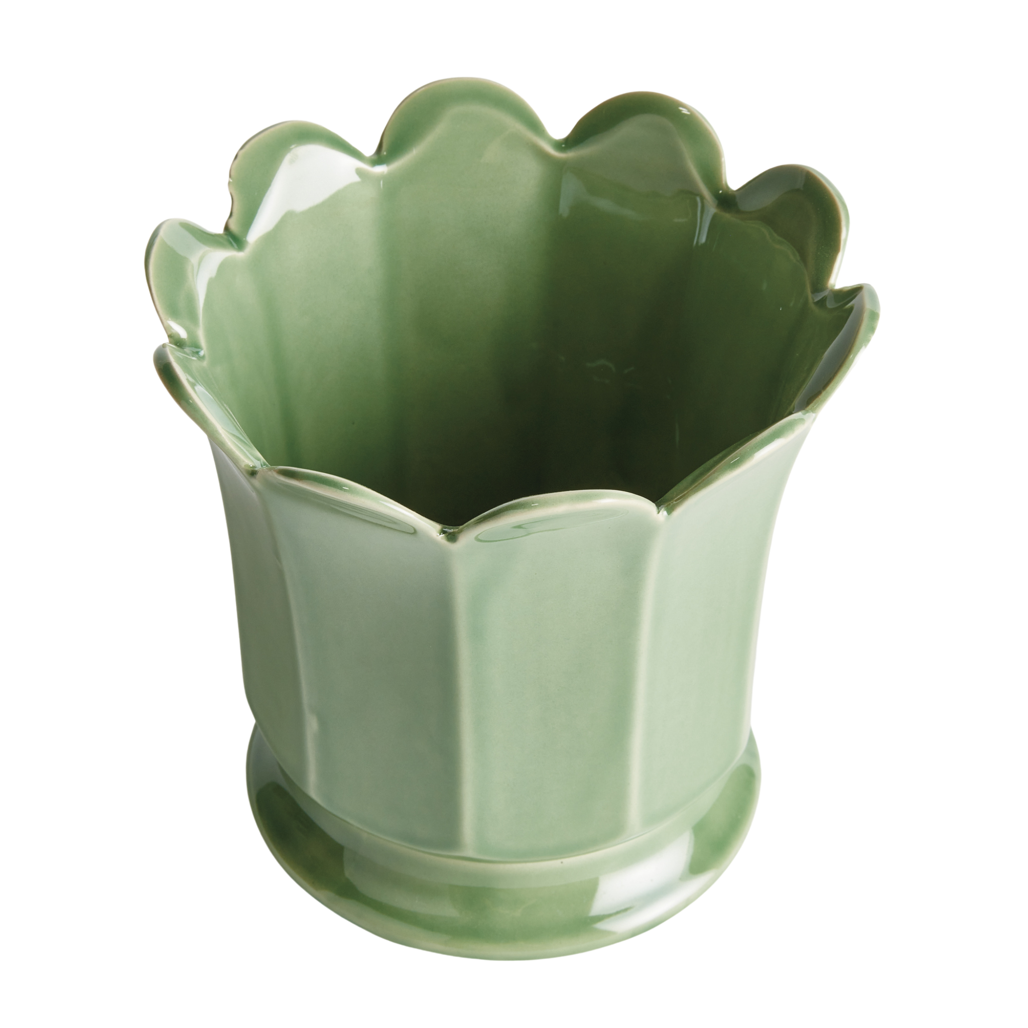 In a classic silhouette with petal edges, this footed pot is nature-inspired. Finished in a soft verdant reactive glaze, it is a great way to add a touch of color to any space.