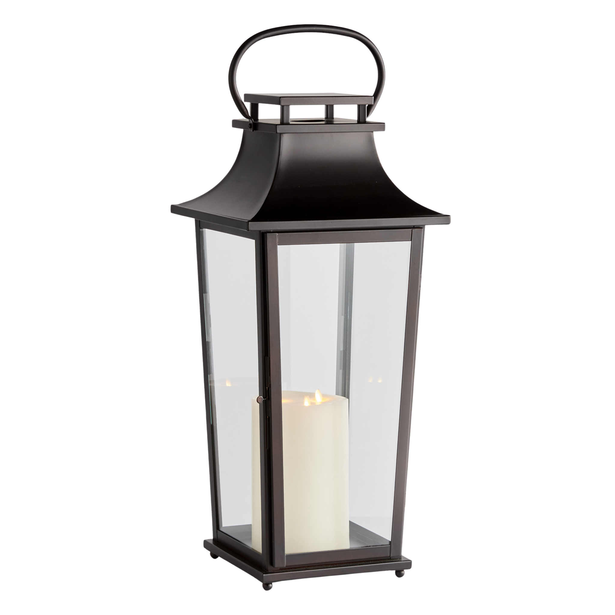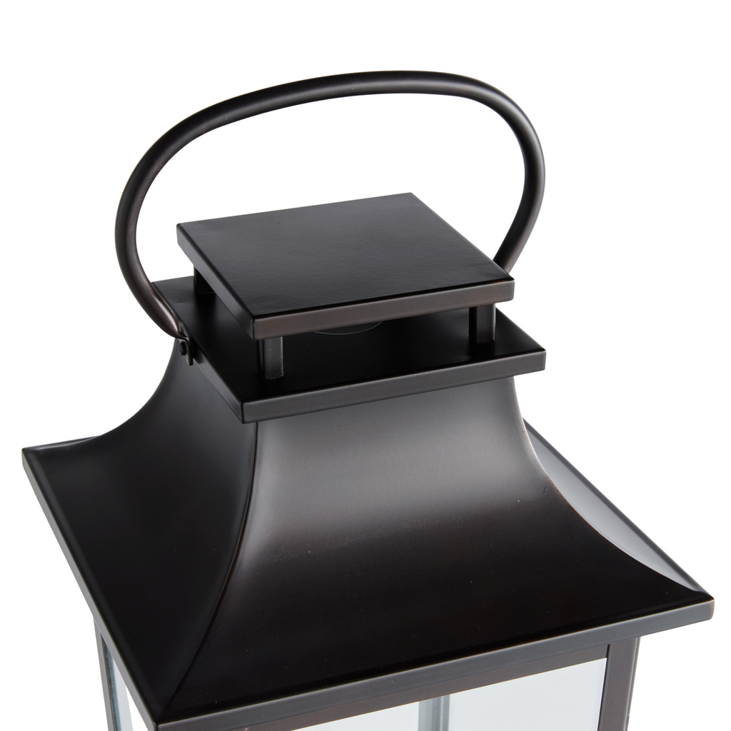 Scaled to wow, this outdoor lantern is fitted with round, flattened moveable handles. Powder-coated & ready for the outdoors, it makes a statement in any environment. Click images for greater detail.