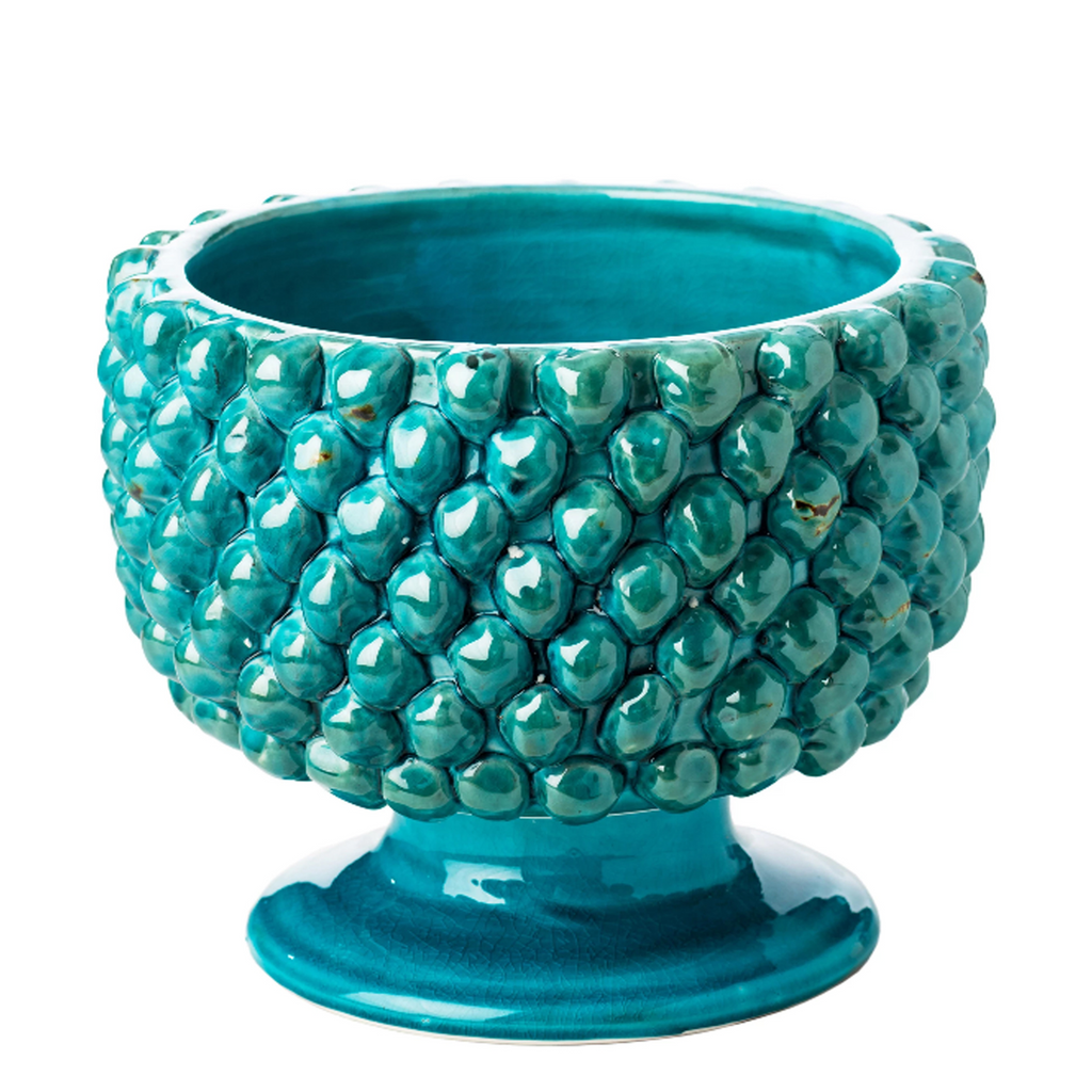 Small Turquoise Vinci Pine Cone Ceramic Planter