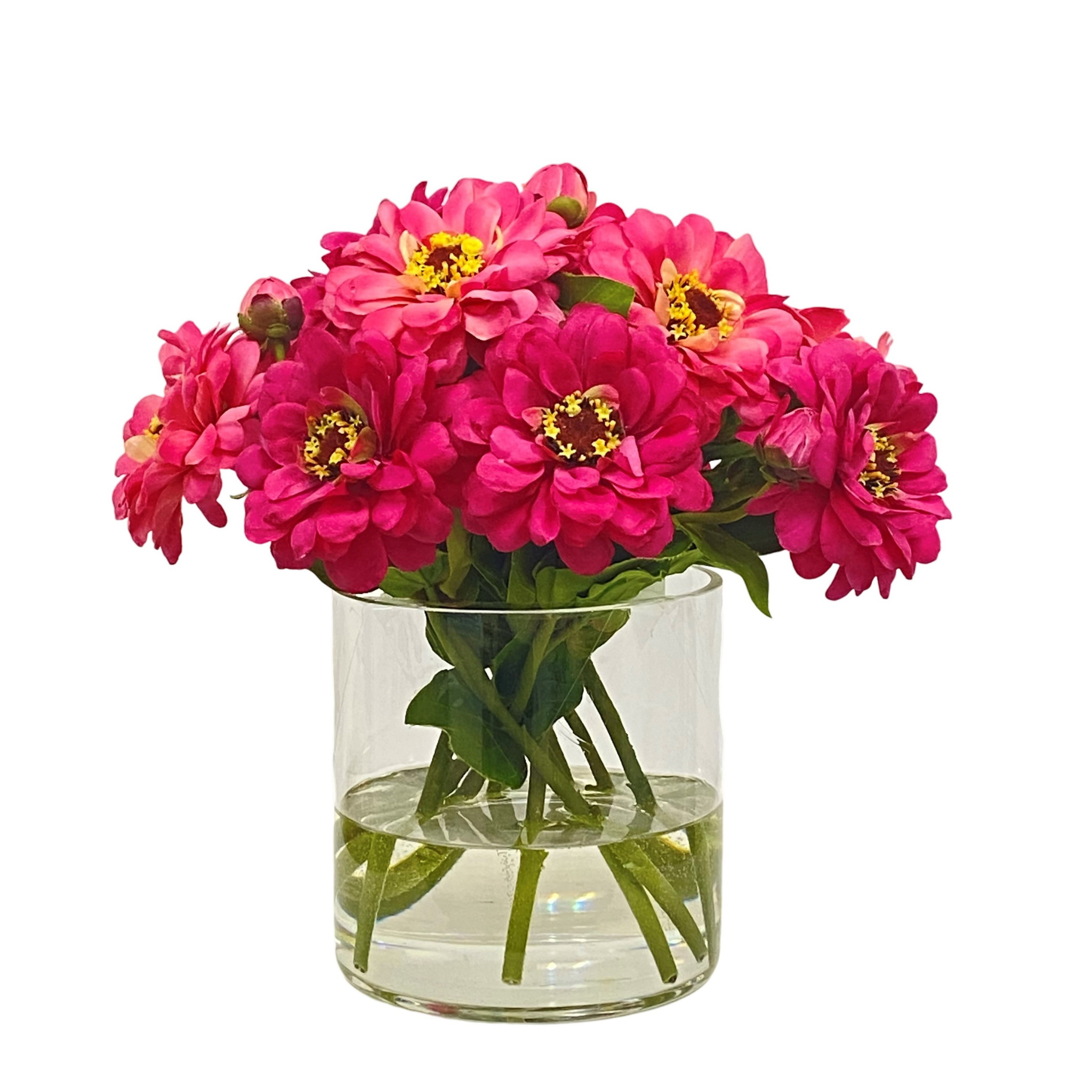 Zinnia Floral Arrangement in Glass Cylinder Vase