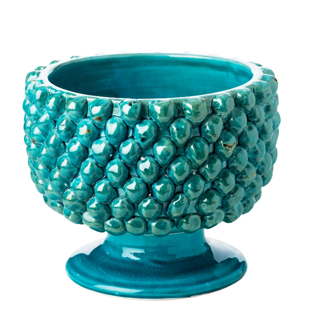 Large Turquoise Vinci Pine Cone Ceramic Planter