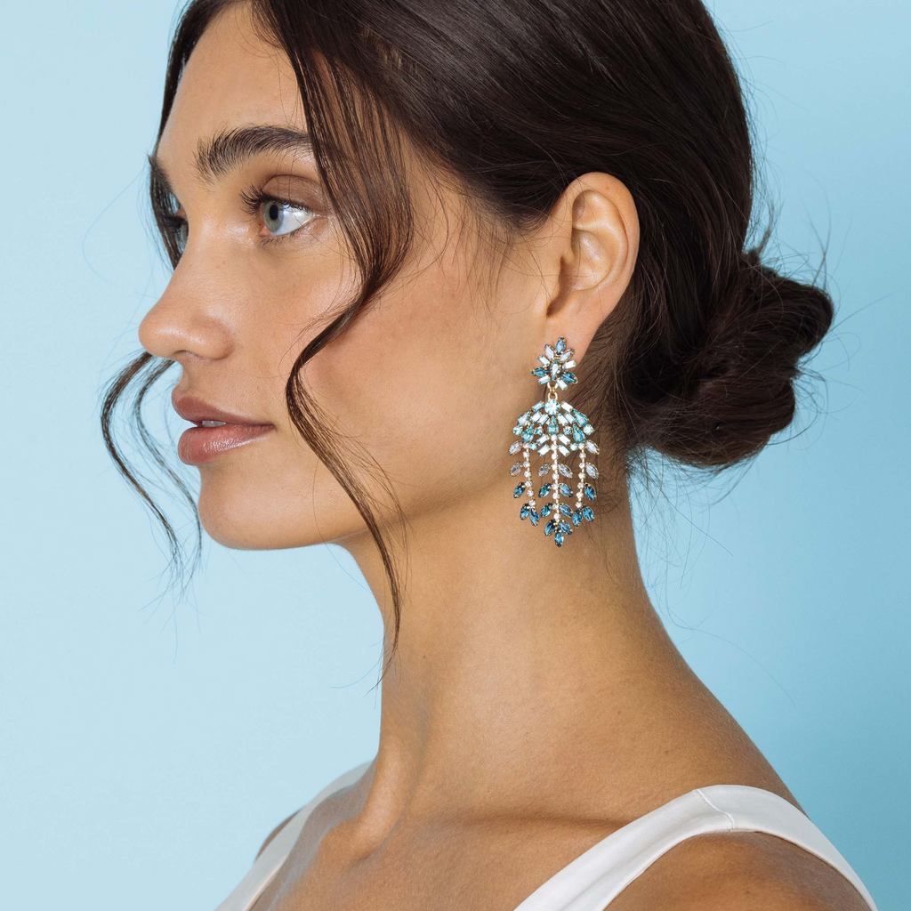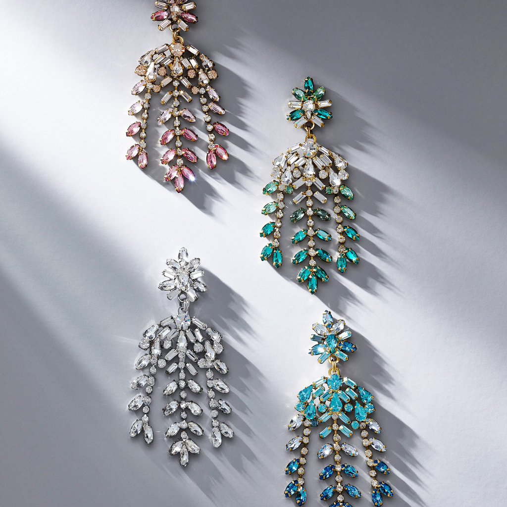 Much like a cascading waterfall, these show-stoppers are dripping with sparkle. Super light-weight, these (very) wearable statement earrings are the perfect finishing touch for your next event. Available in four gorgeous hues.