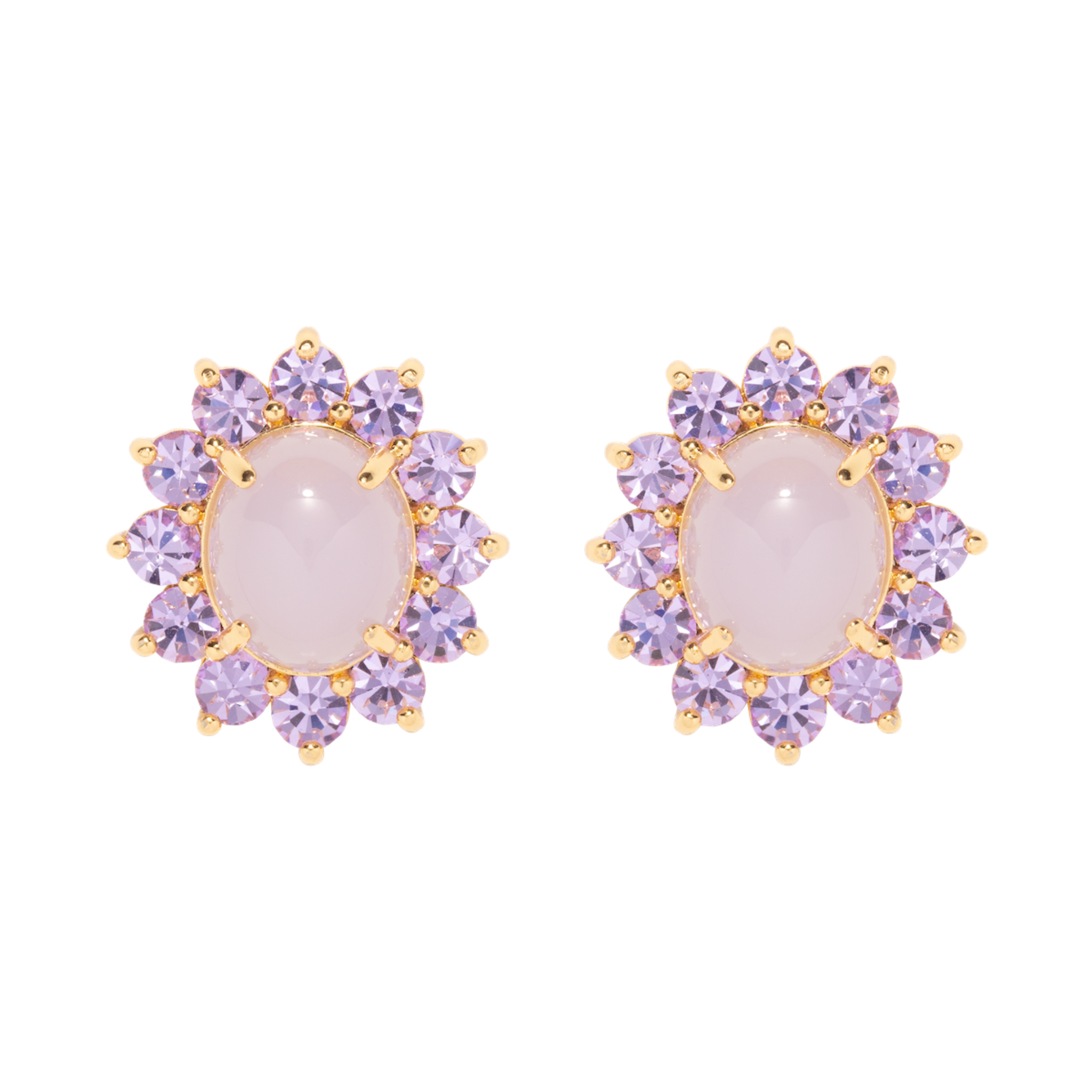 An effortless jolt of color for everyday wear, the Georgie Studs are about to be the hardest working piece in your jewelry wardrobe. These monochromatic stunners feature a center cabochon with a halo of coordinating crystals. If you can’t get enough of this look, try doubling up the fun with the two-stone Georgie Drop Earrings for extra oomph.