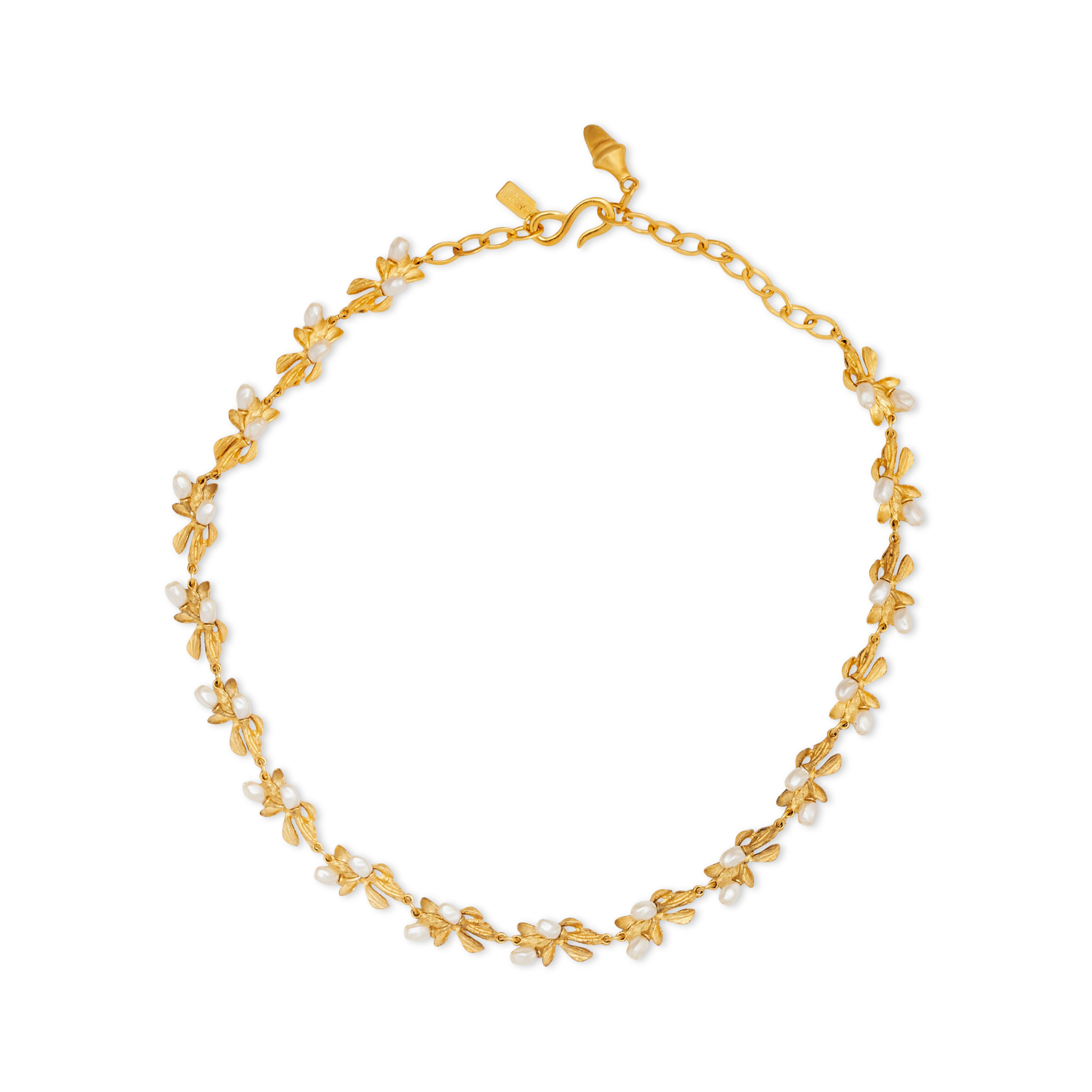 A single strand of gold-plated, faux pearl flowers is all you need to feel like you never left Spring and Summer!