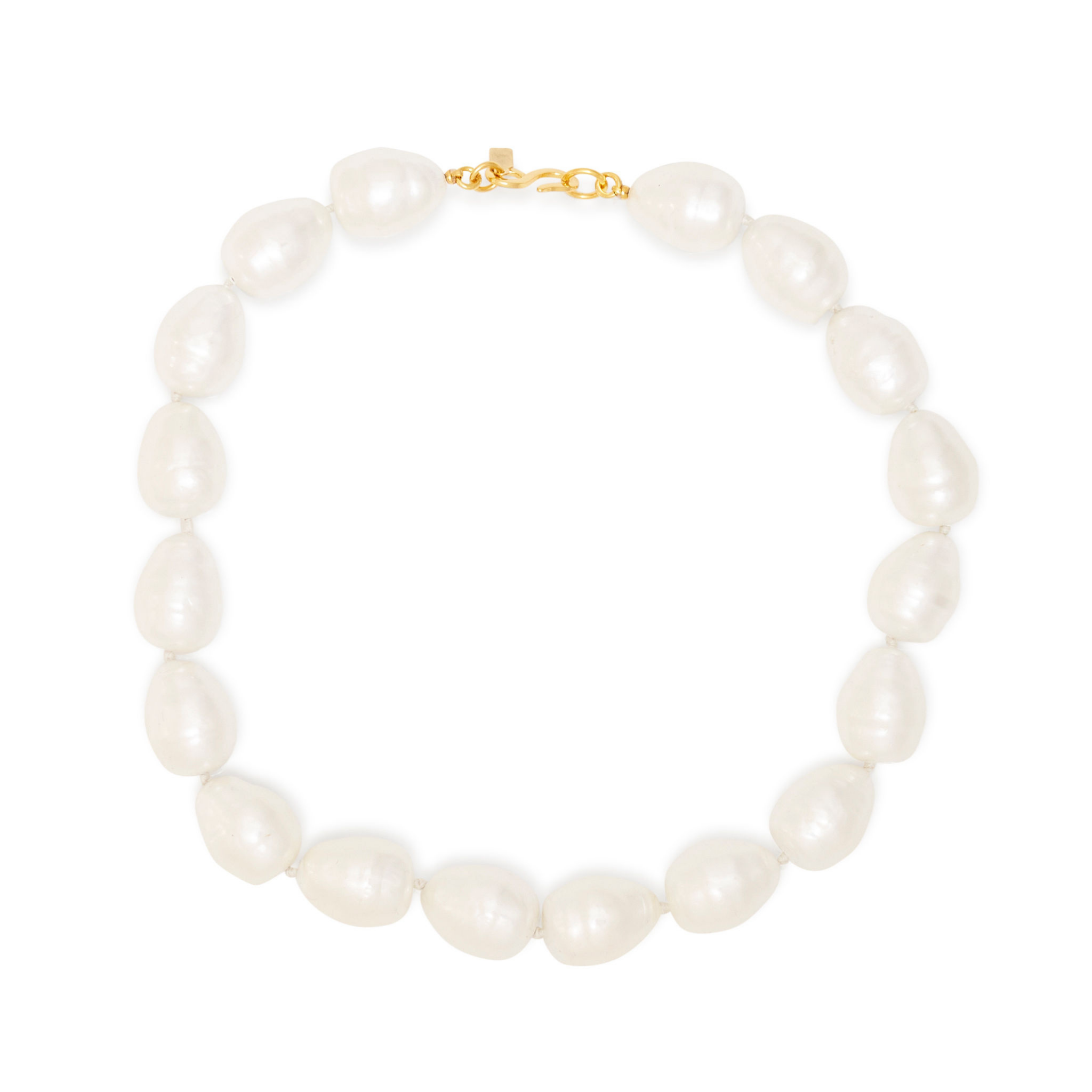 A celebration of timeless elegance and natural beauty. This necklace isn't just an accessory; it's a wearable work of art, meticulously crafted to grace your neckline with the captivating allure of white baroque pearls in a luxurious gold setting.