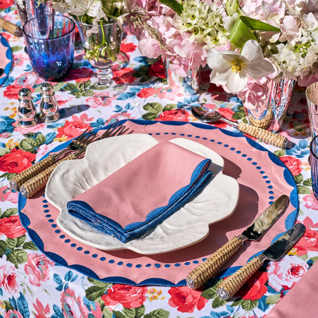 Our colorfully embroidered, treated cotton placemats and napkins will be a wonderful addition to your home. Whether you use them every day, for your casual family dinners or save them for your fancy dinner parties, these liquid repellent linens will make hosting effortless. Set includes 1 placemat and 1 napkin.