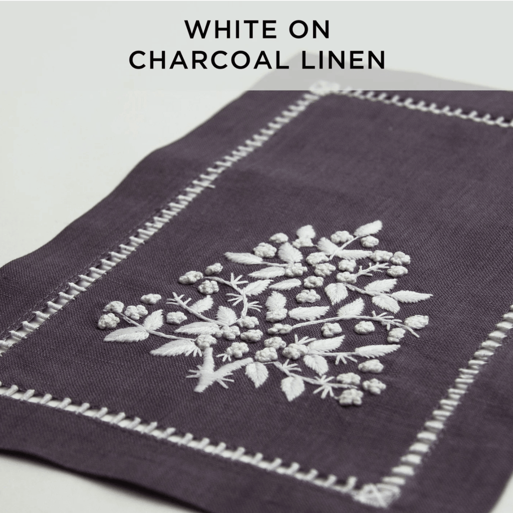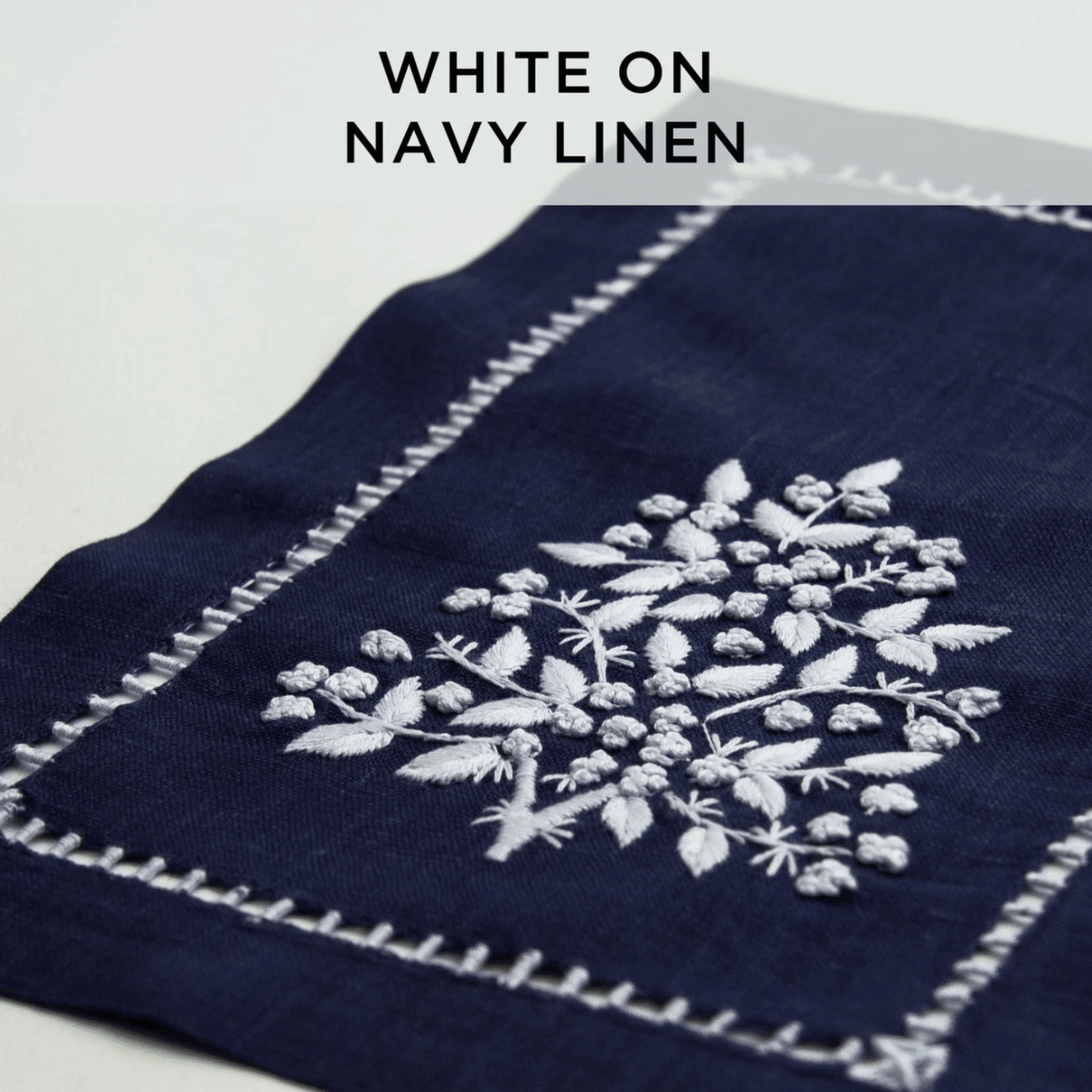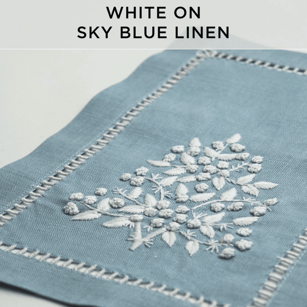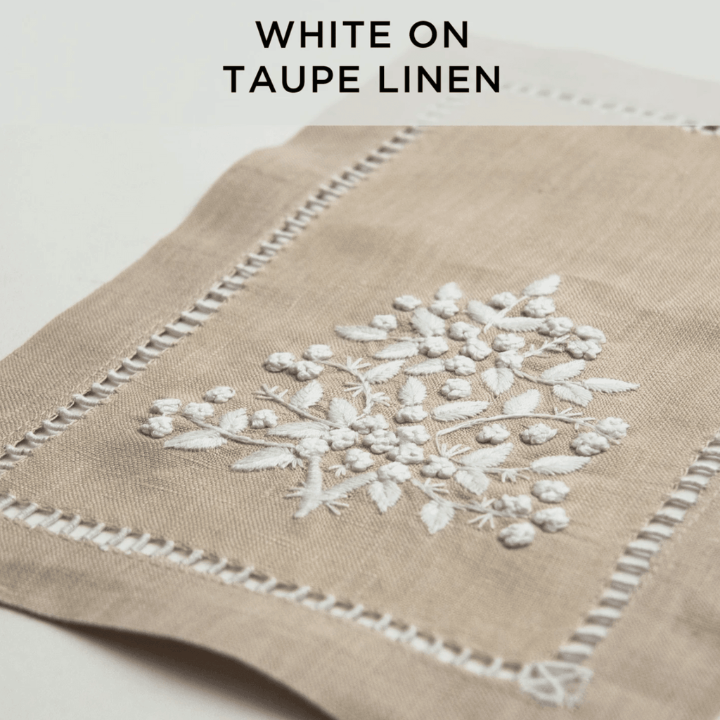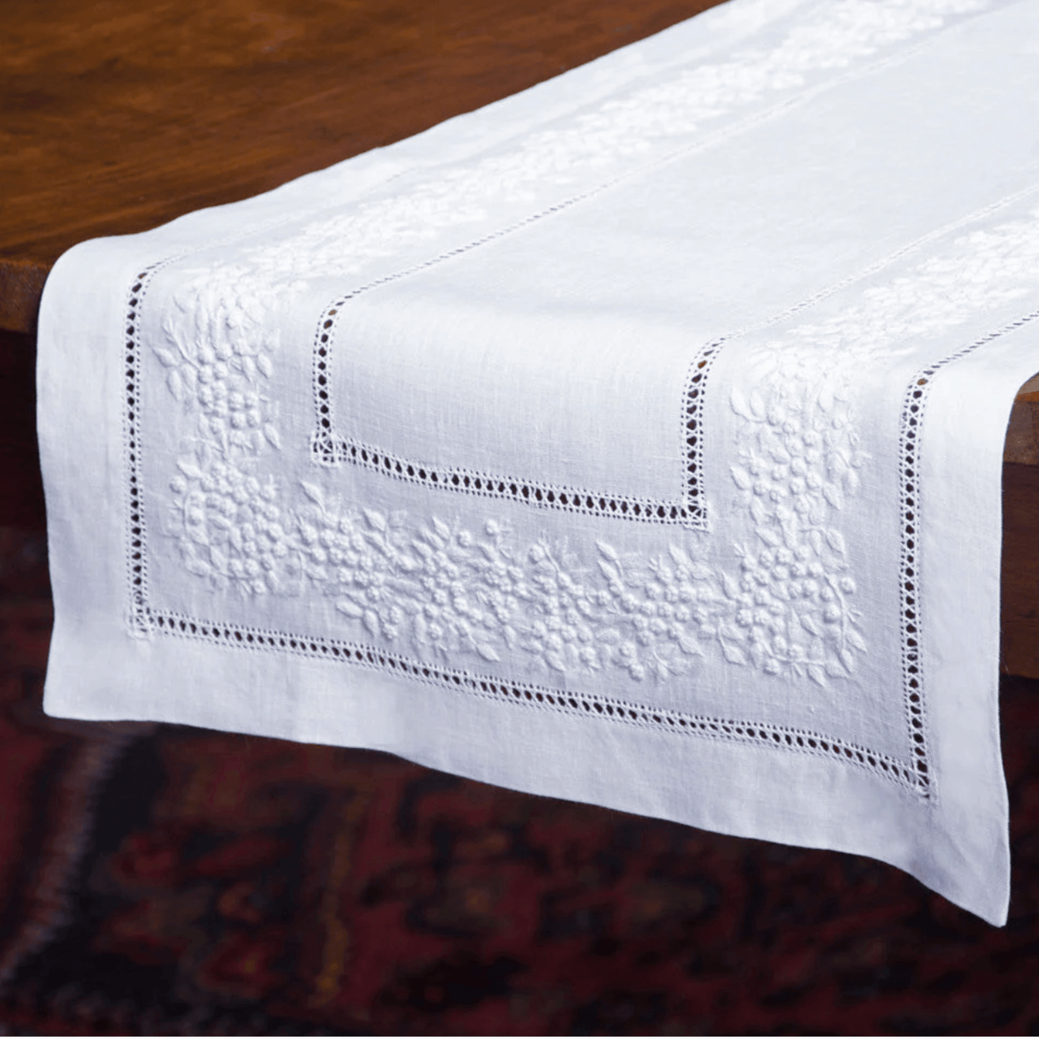 Pure Italian linen hand embroidered French knot floral pattern and hand drawn hemstitch.