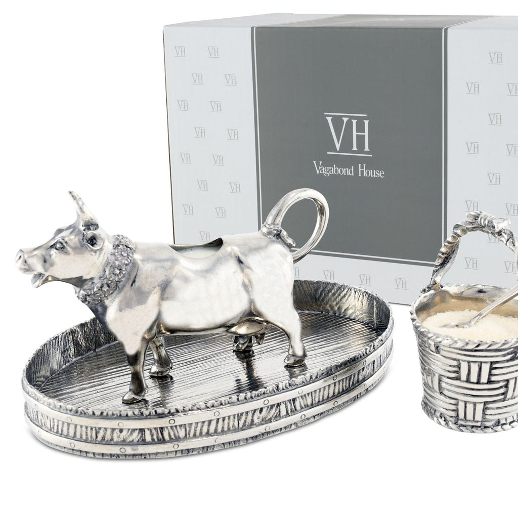 Vagabond House's Mabel Cow Creamer Set honors the natural process of collecting milk and the products that come from it. Our darling cow, Mabel, acts as the creamer, while a pail and spoon make an attractive sugar bowl.