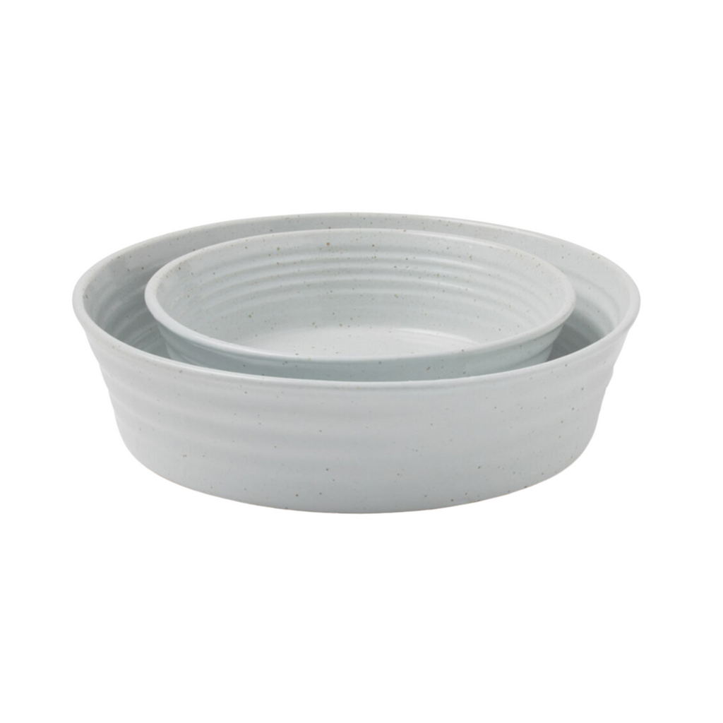 This duo of speckled stoneware nesting bowls makes it easy for hosts to quickly style and serve sides, salads, and snacks.