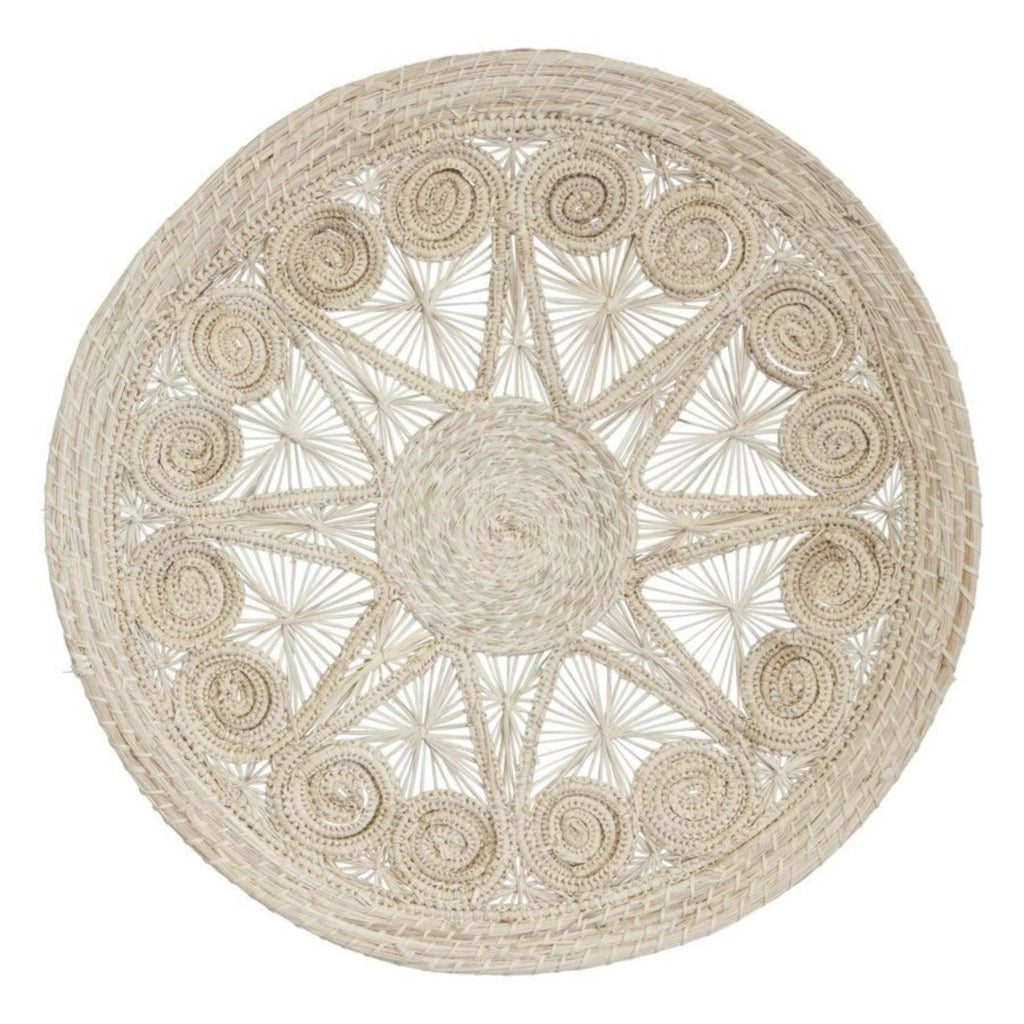 This beautiful handwoven placemat features a star and spiral pattern. Made by true artisans with cultivated palm leaves from Columbia.