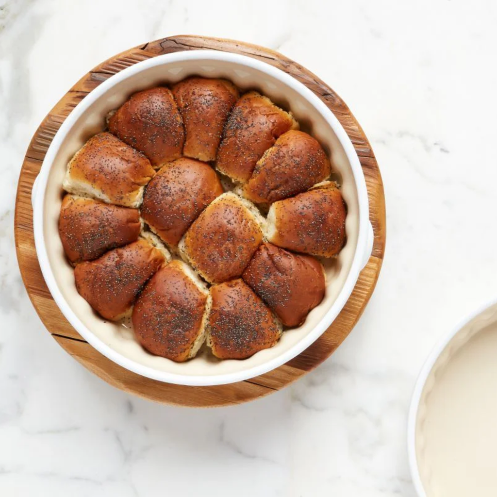 These stoneware bakers have endless possibilities and can also be used for serving as it moves from the oven to the table seamlessly without the need to transfer your meal to another dish. Skip the oven altogether, and this casserole dish can be used as a statement serving tray.