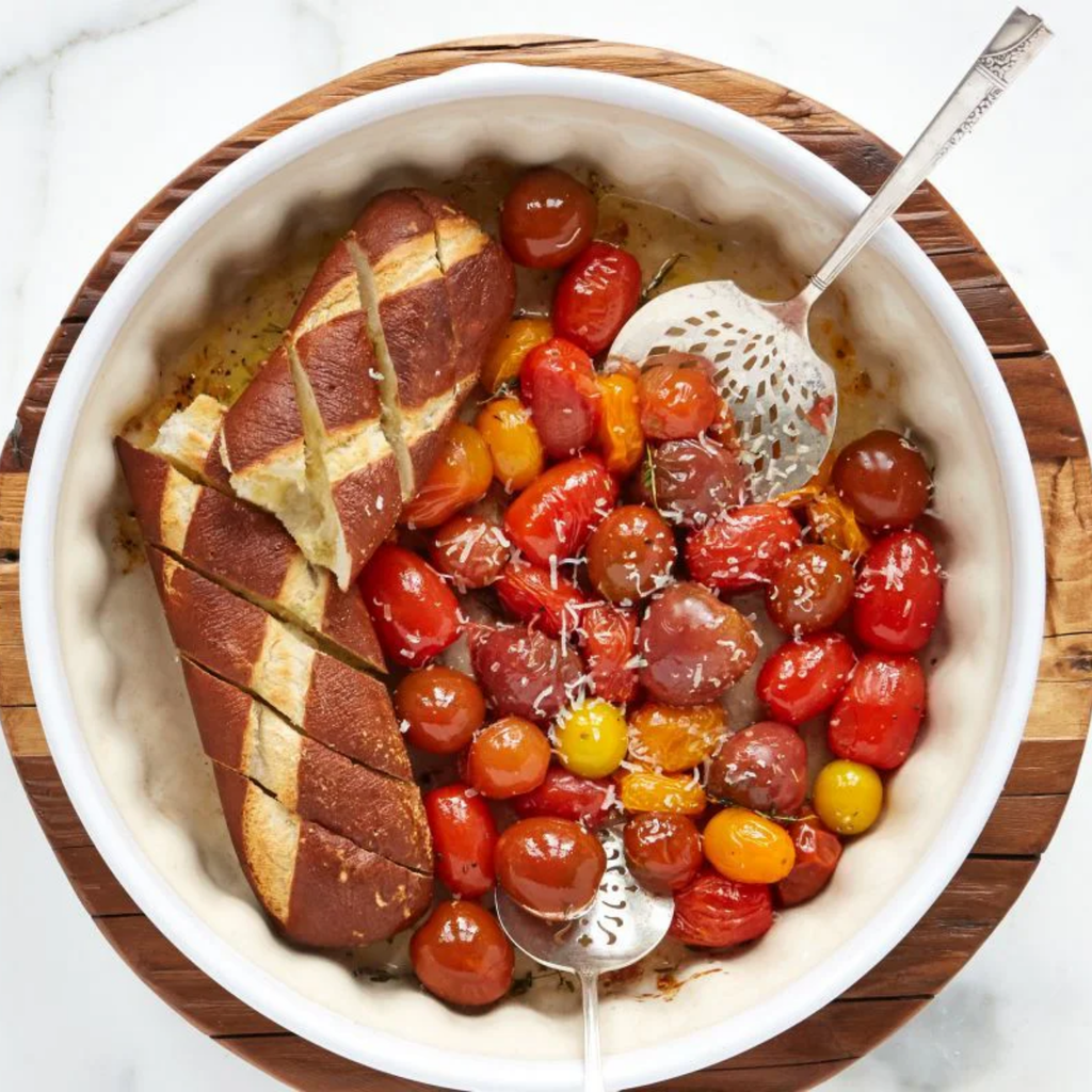 These stoneware bakers have endless possibilities and can also be used for serving as it moves from the oven to the table seamlessly without the need to transfer your meal to another dish. Skip the oven all together, and this casserole dish can be used as a statement serving tray.