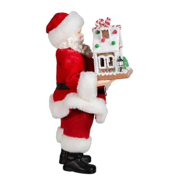 Part of Kurt Adler's Fabriché™ collection, this 12" Fabriché™ light-up Santa with gingerbread house is a fun and festive addition to any holiday décor! Santa is dressed in a red and white Santa suit holding a light-up gingerbread house.