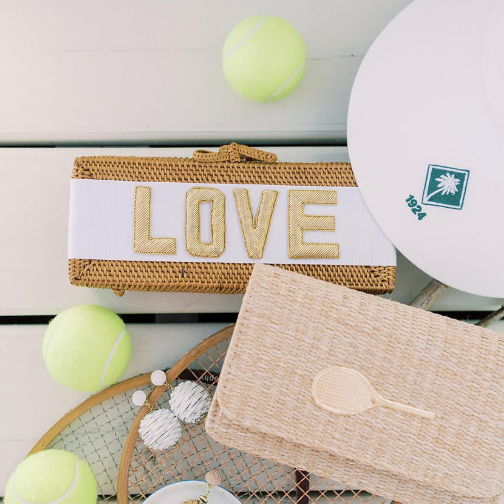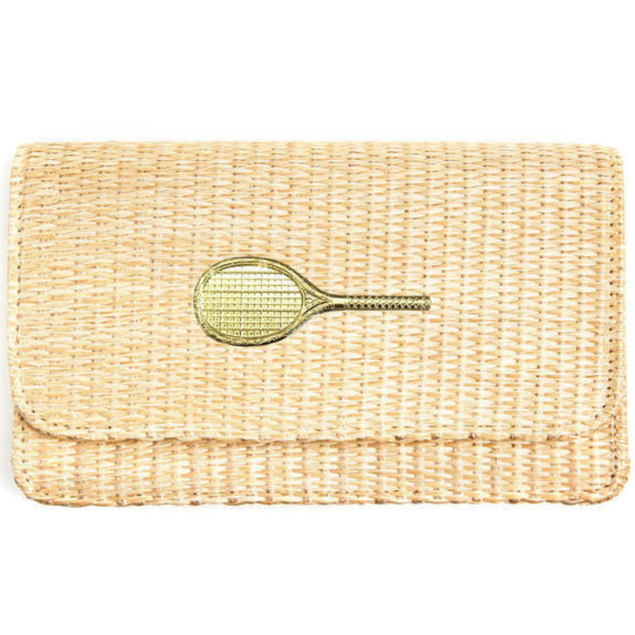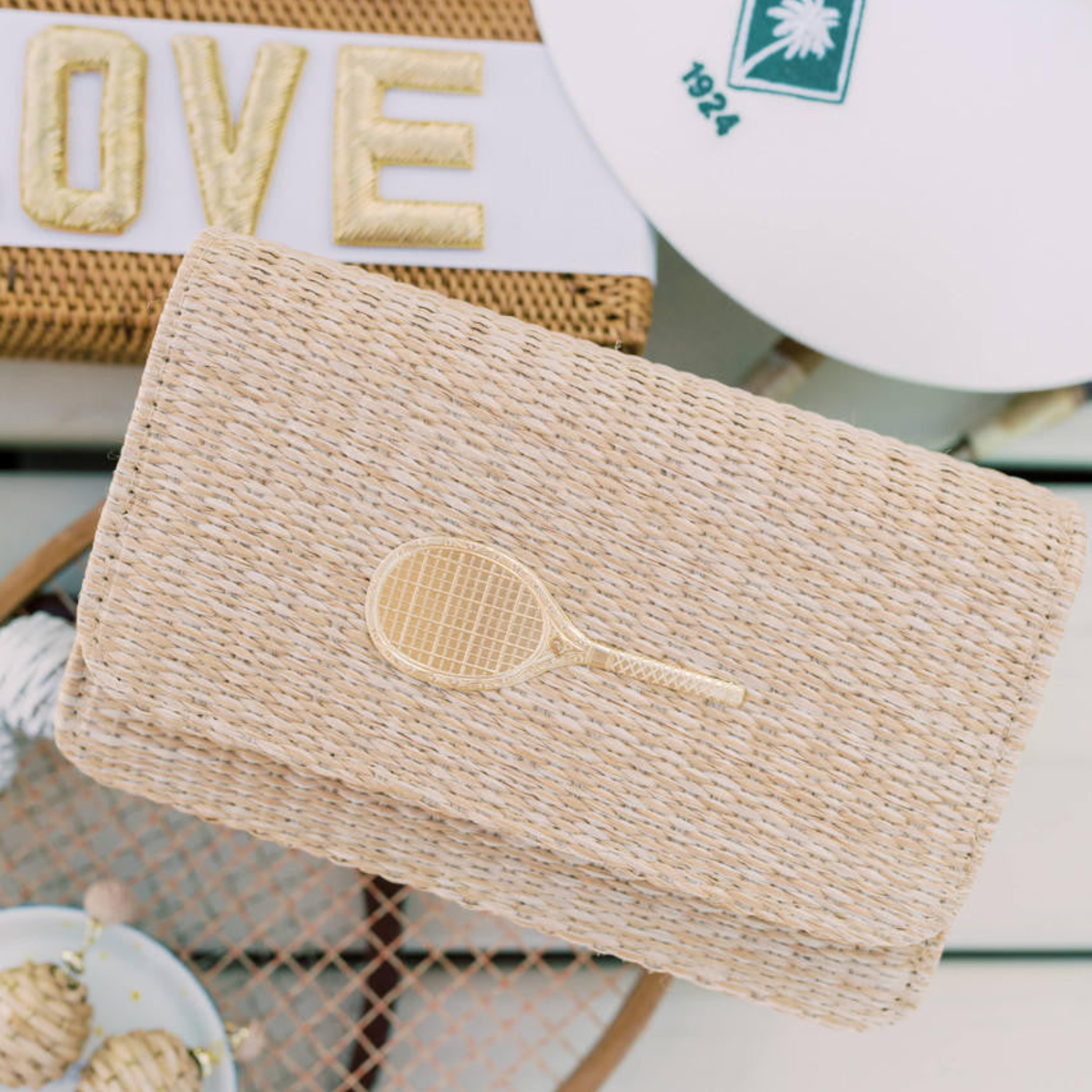 Effortlessly chic with a playful twist, this clutch is your perfect companion for warm-weather outings. Crafted from natural straw, this clutch features a sleek foldover design that combines laid-back texture with sophisticated structure. The standout detail? A whimsical gold-tone tennis racket charm, adding a sporty yet stylish nod to your love of the game.