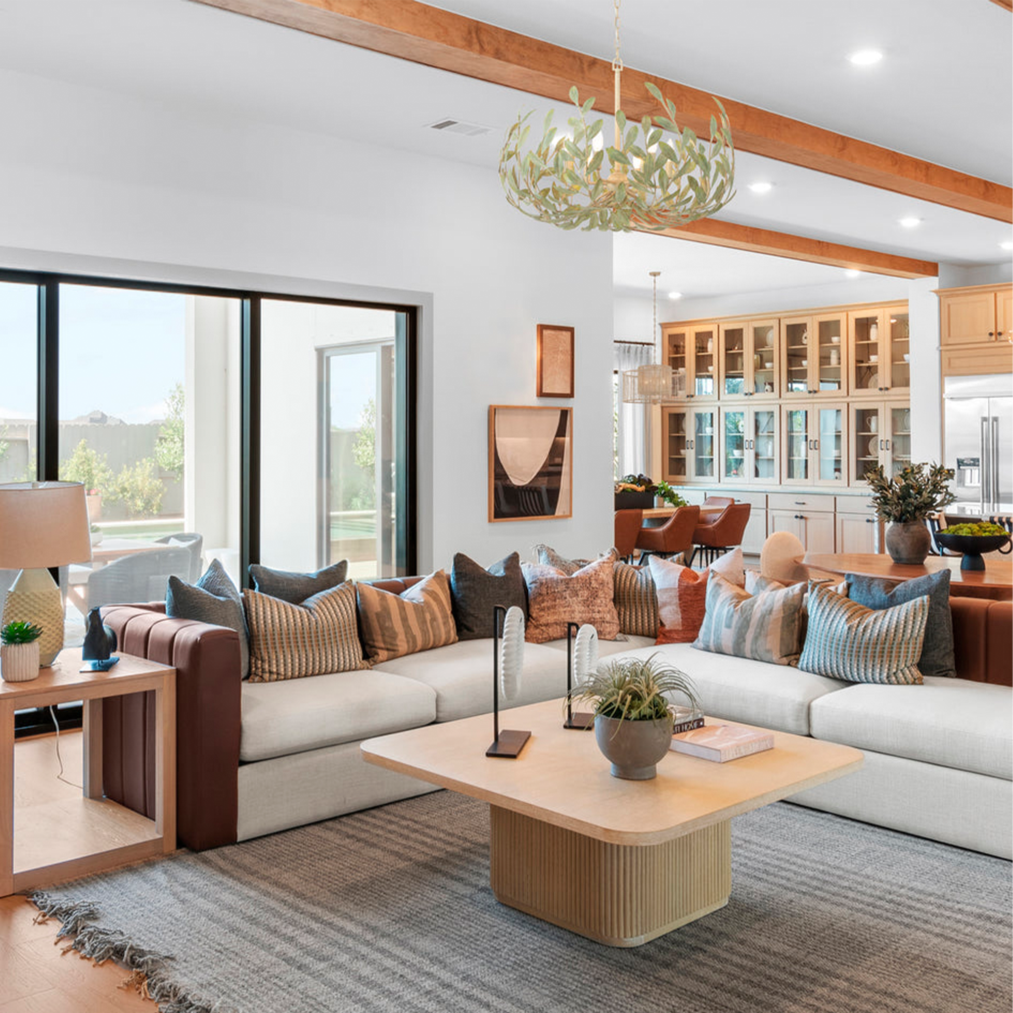 The Broche 6 Light Chandelier captivates with its nature-inspired design, featuring hand-painted metal leaves arranged in an elegant, layered silhouette. Six lights cast a warm, inviting glow, creating a statement piece perfect for dining rooms, living areas, or entryways.
