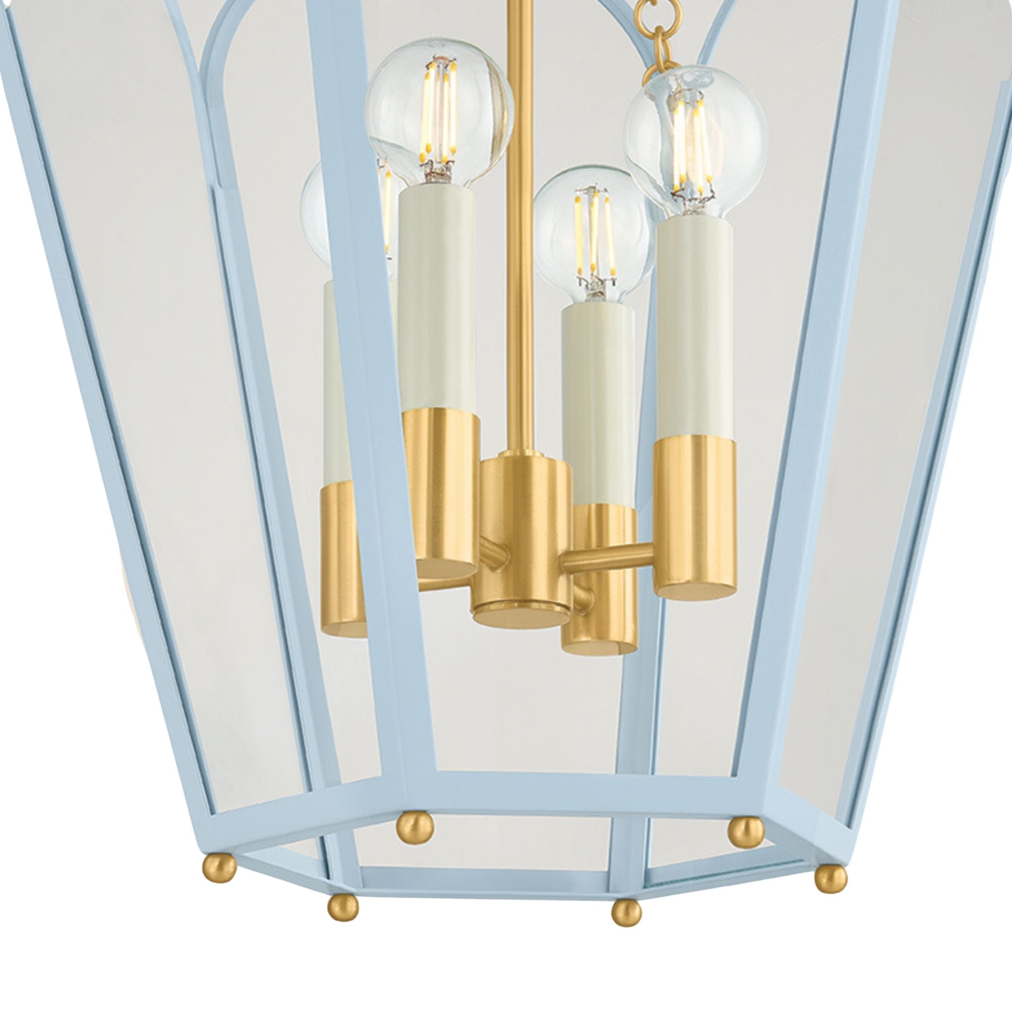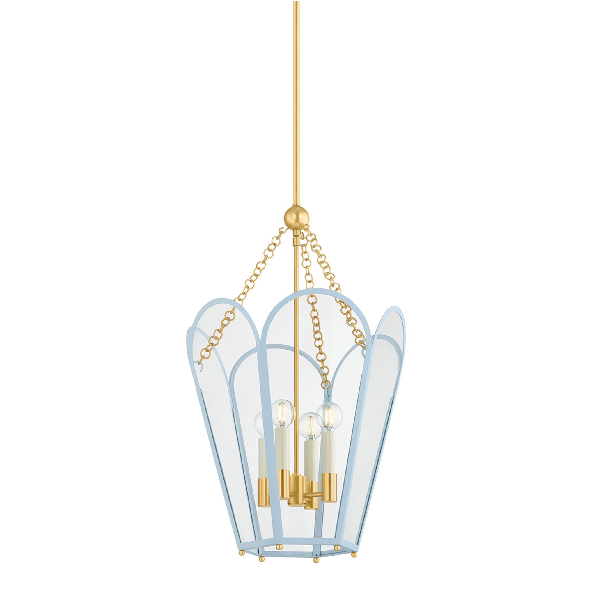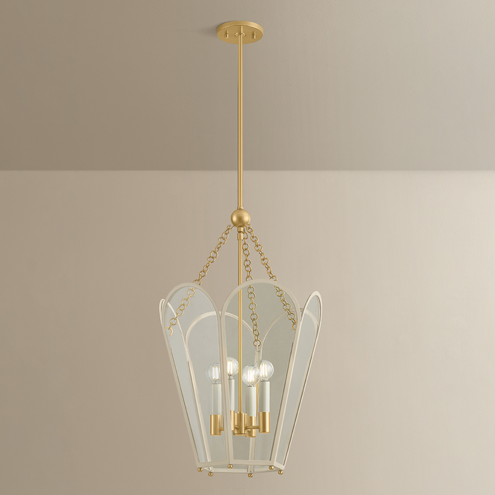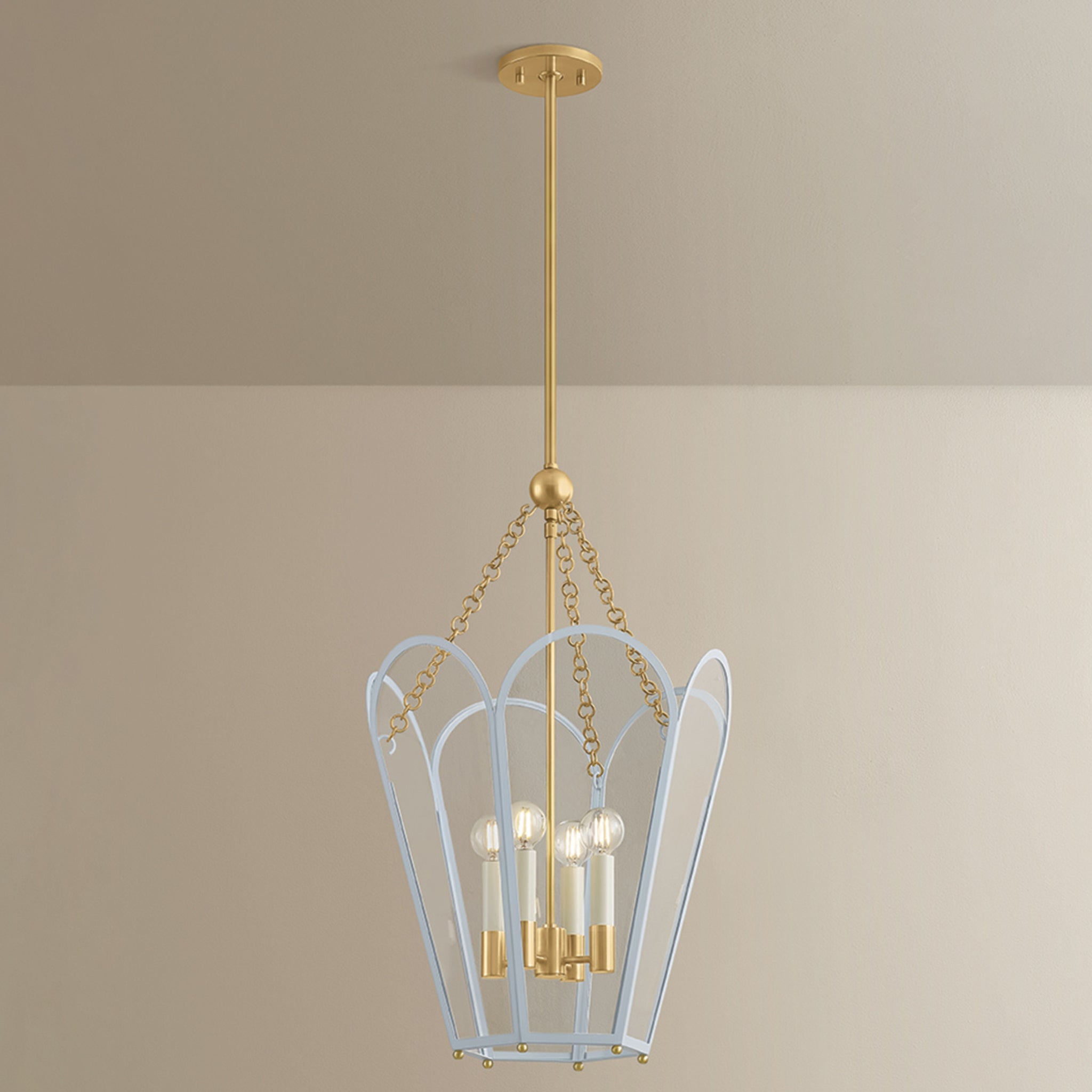 The Clarisse Lantern reimagines a classic hexagonal lantern with arched glass panels that beautifully showcase cream candle-style lights. Finished in Aged Brass with Soft Bisque or Arctic Ocean options, this romantic design is available in small 3-light and large 4-light versions.