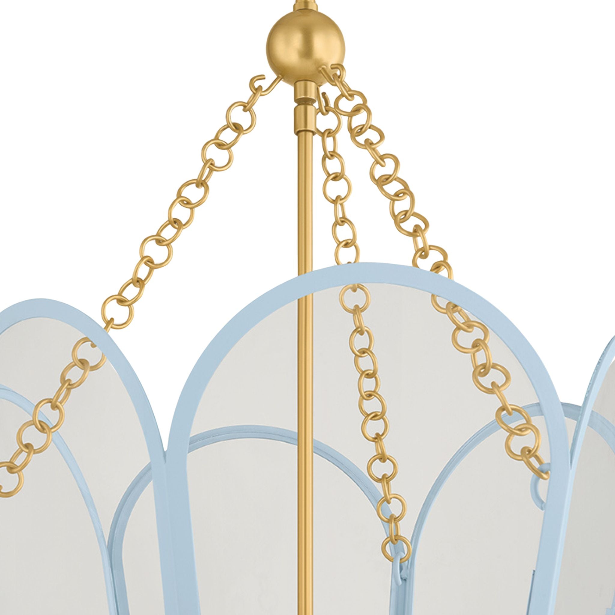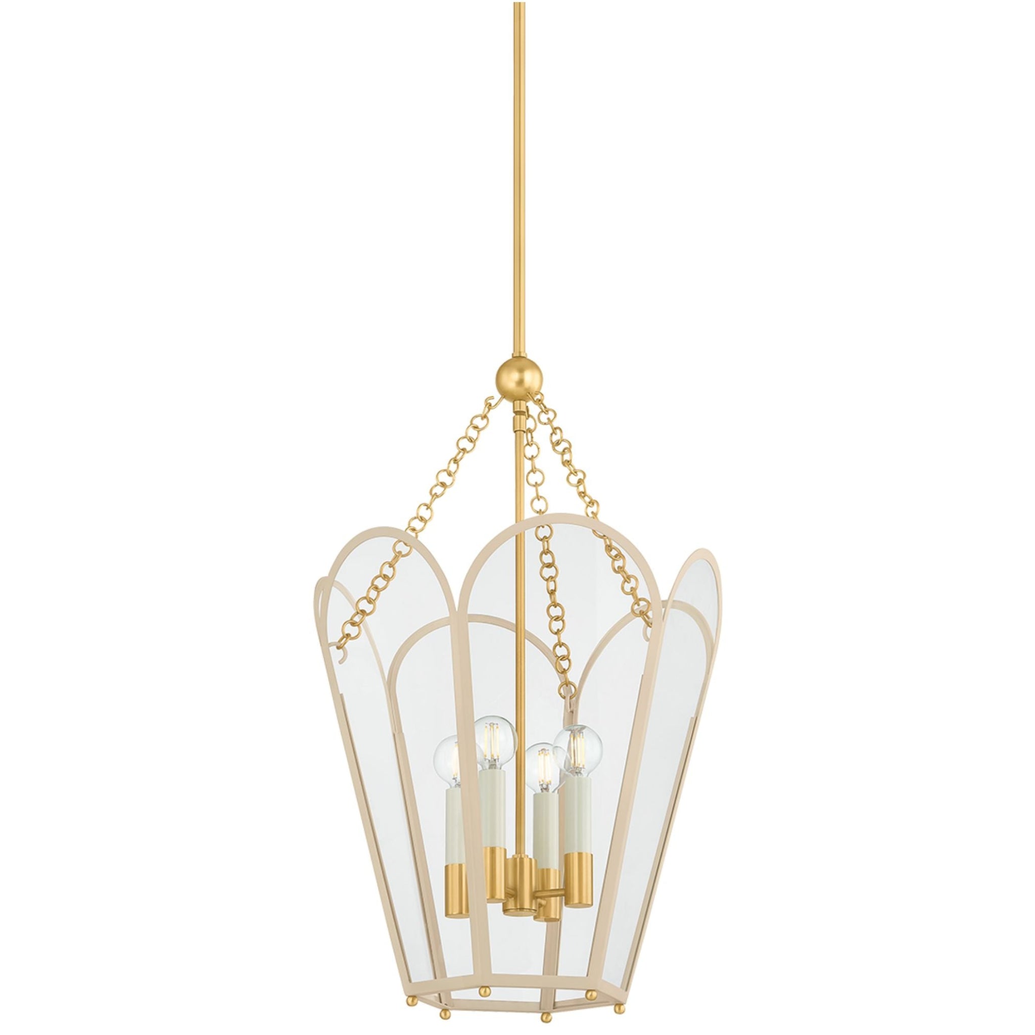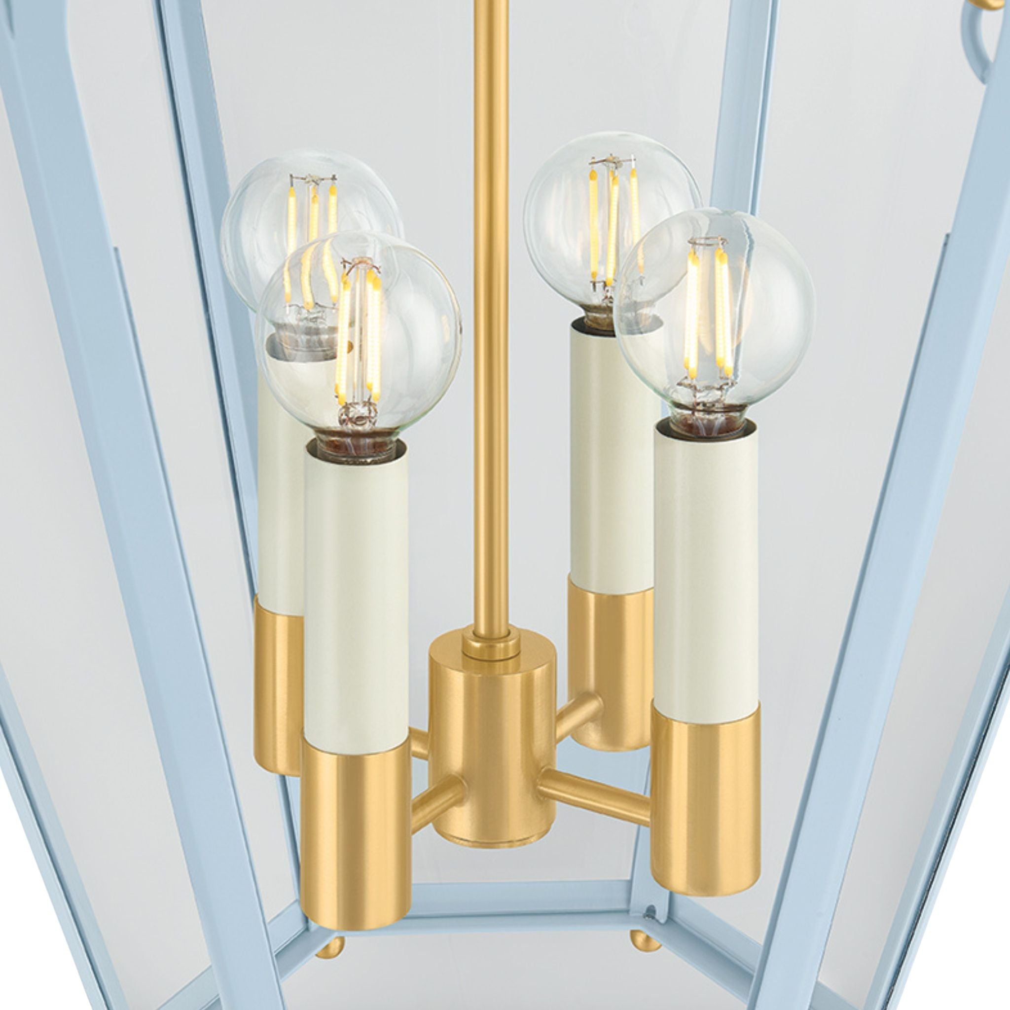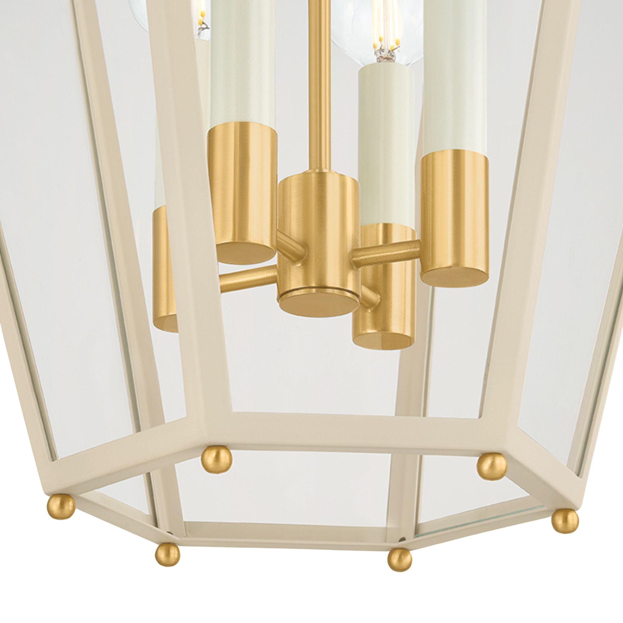 The Clarisse Lantern reimagines a classic hexagonal lantern with arched glass panels that beautifully showcase cream candle-style lights. Finished in Aged Brass with Soft Bisque or Arctic Ocean options, this romantic design is available in small 3-light and large 4-light versions.