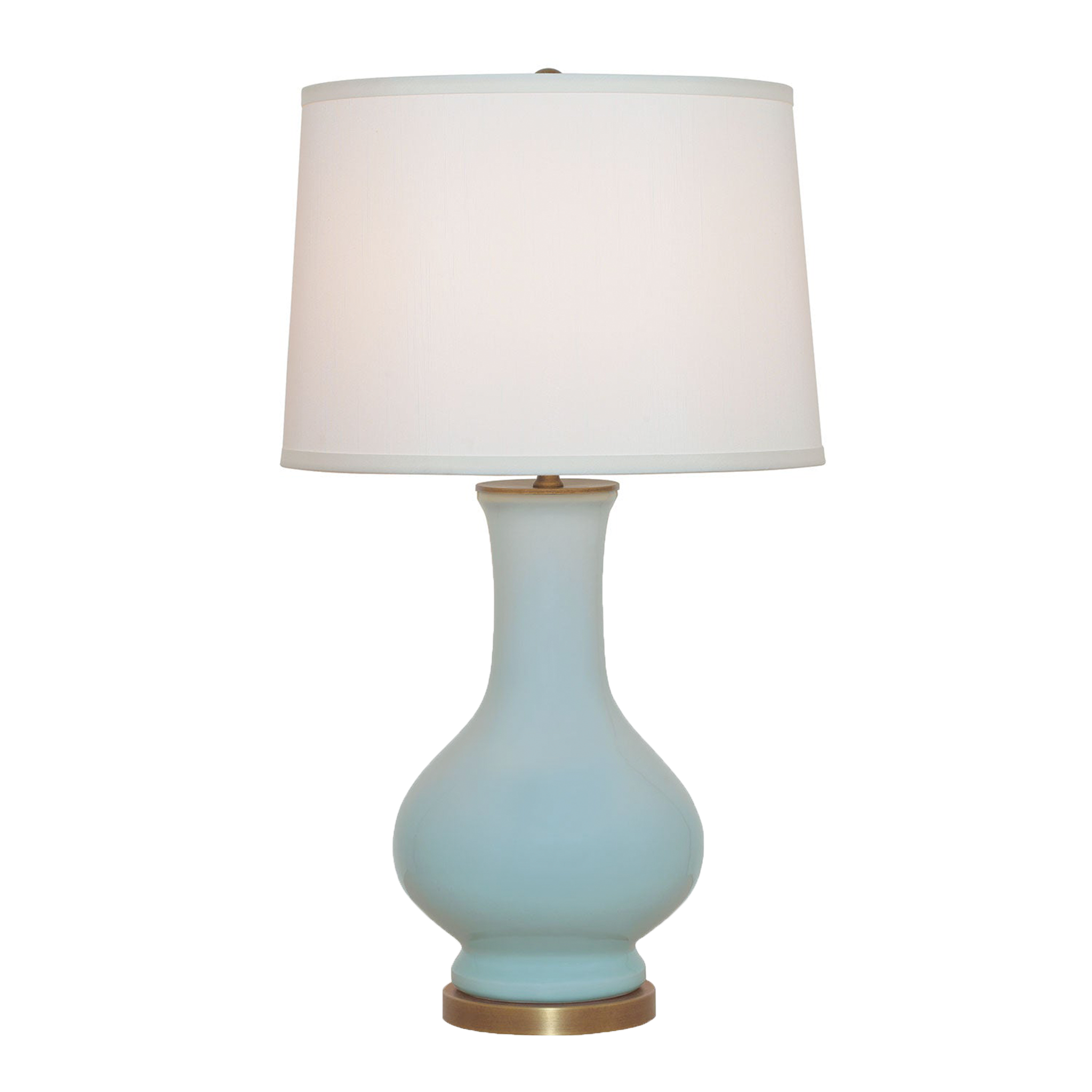 The Dorothy Celadon Lamp brings refined elegance with its glossy celadon porcelain base and classic silhouette. Accented with aged brass details and topped with a tailored off-white shade, it creates a warm, sophisticated glow.
