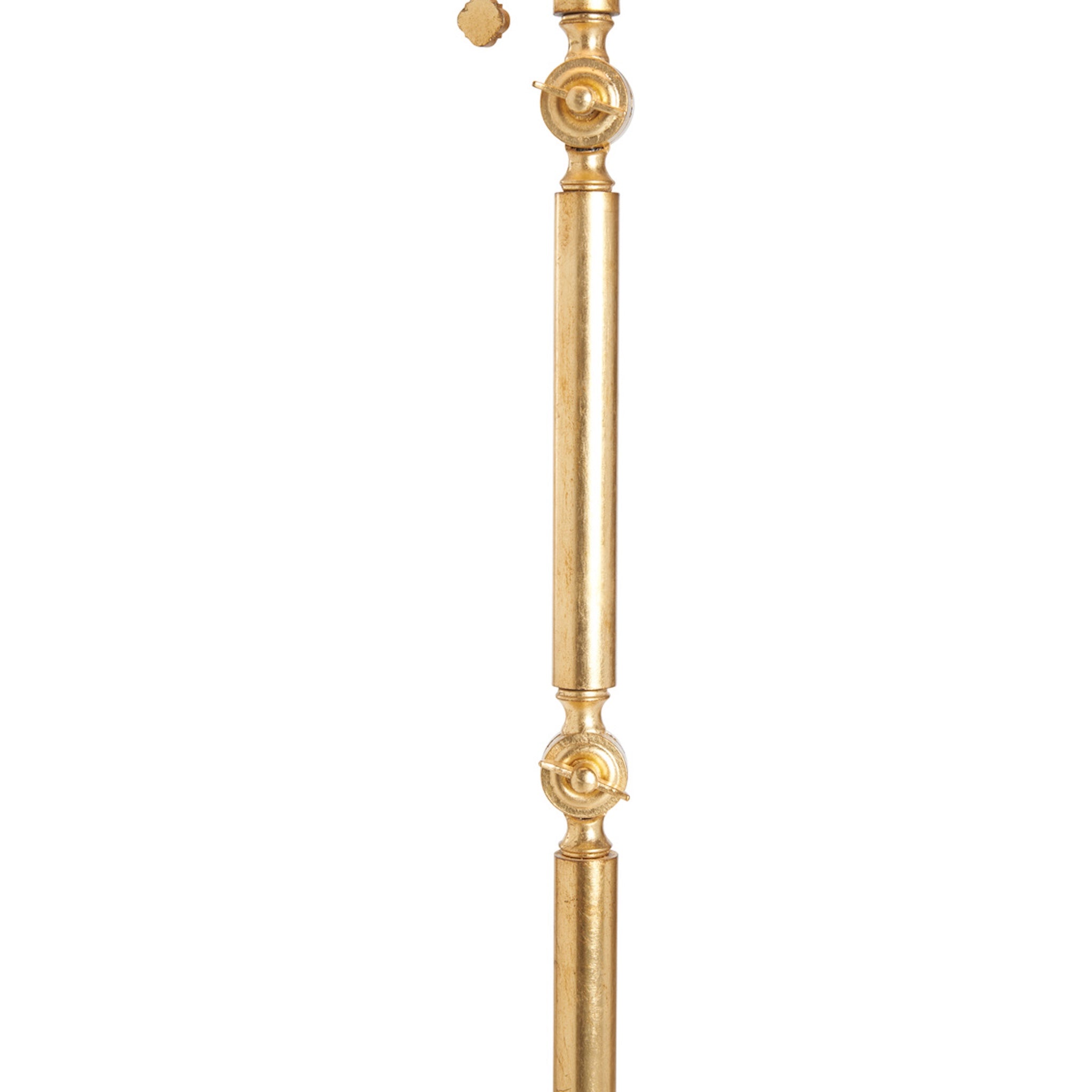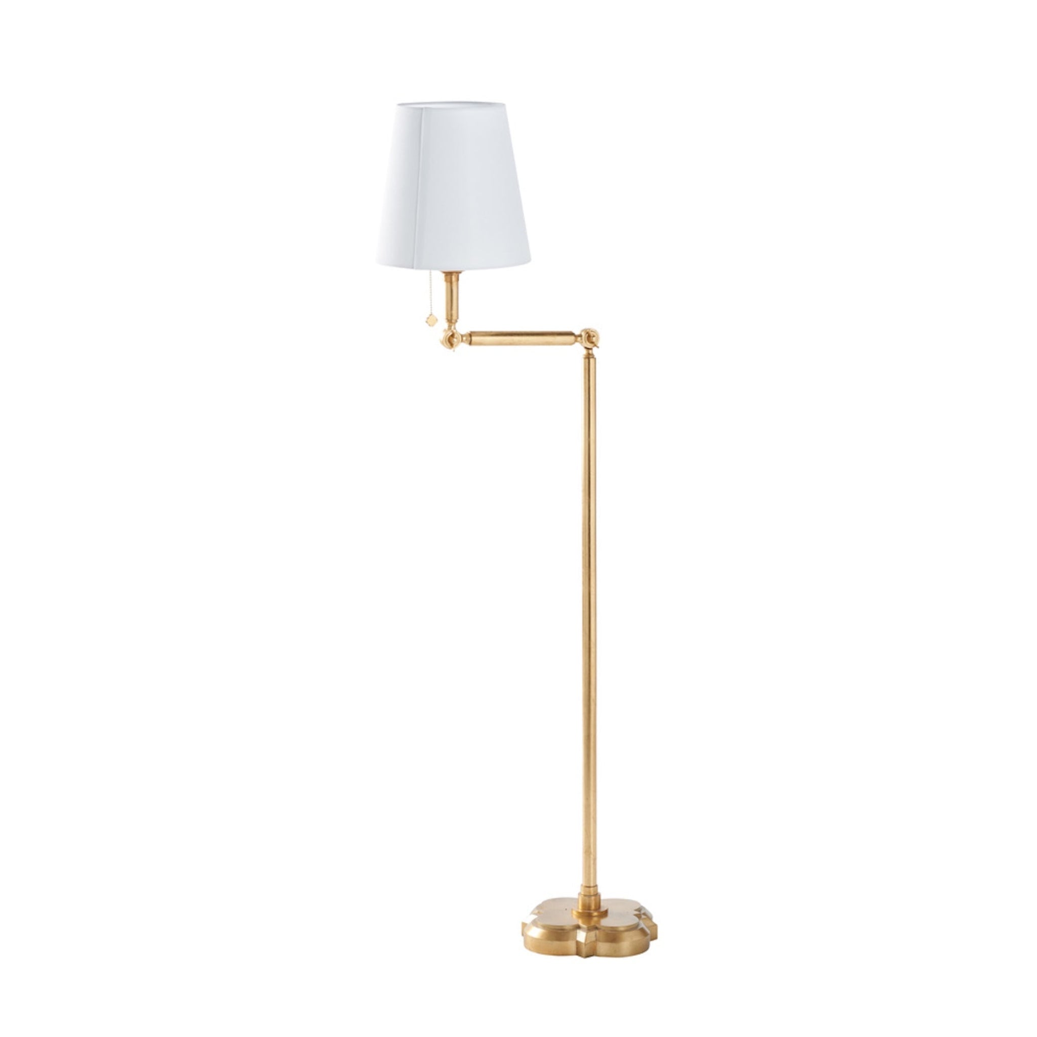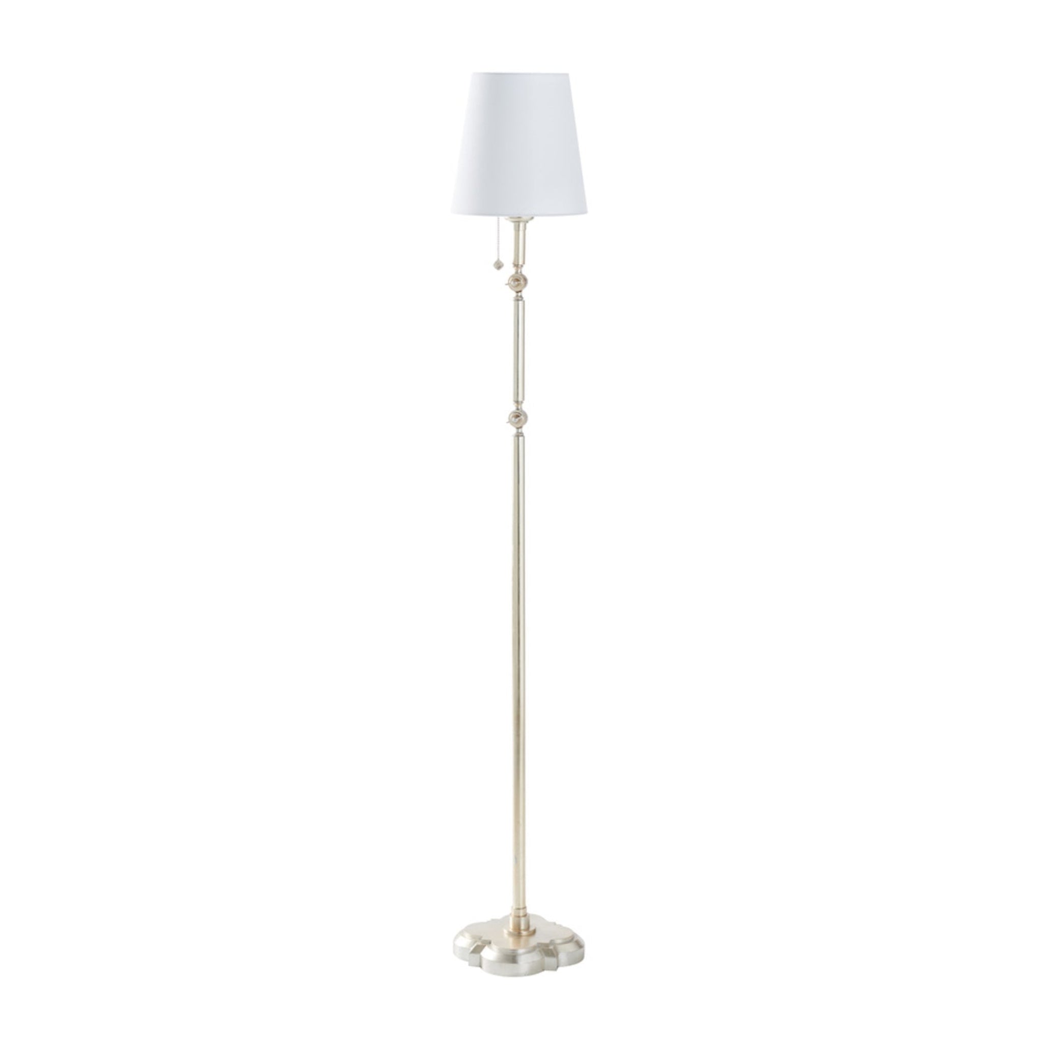 Designed by Lisa Kahn, this Quatrefoil Floor Lamp pairs a sleek quatrefoil base with silver or gold finishes for versatile sophistication. Topped with a white shade, it delivers gentle illumination that completes the look.