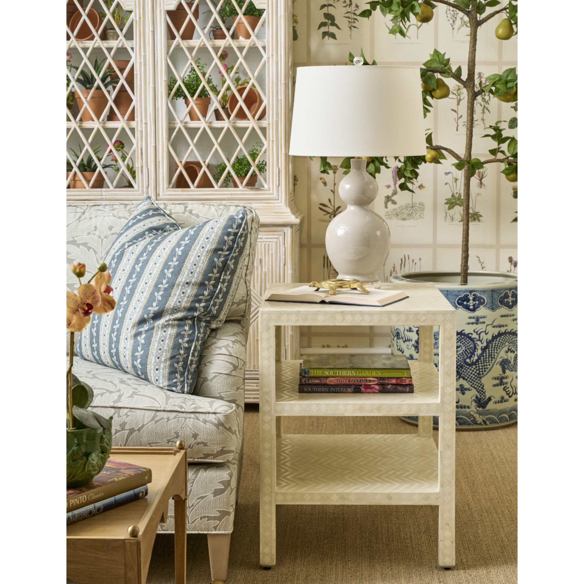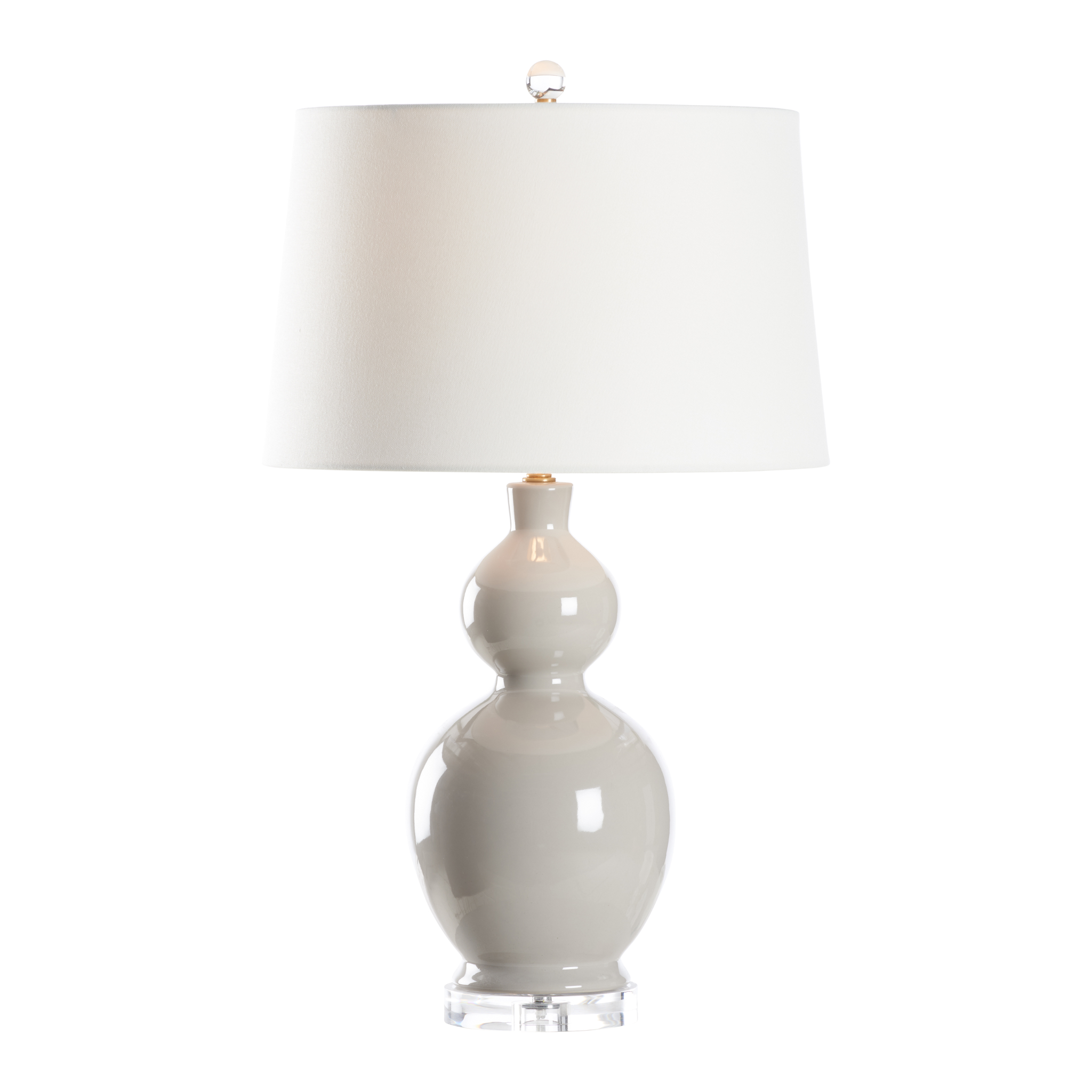 The Murano Lamp combines timeless craftsmanship with modern elegance. Featuring a classic double-gourd silhouette, this ceramic table lamp rests on a clear acrylic base and is topped with a crisp white shade for a clean, sophisticated look. Available in white, gray, and blue, the Murano Lamp effortlessly enhances both contemporary and traditional interiors with soft, ambient lighting. Perfect for bedrooms, living rooms, or entryways.
