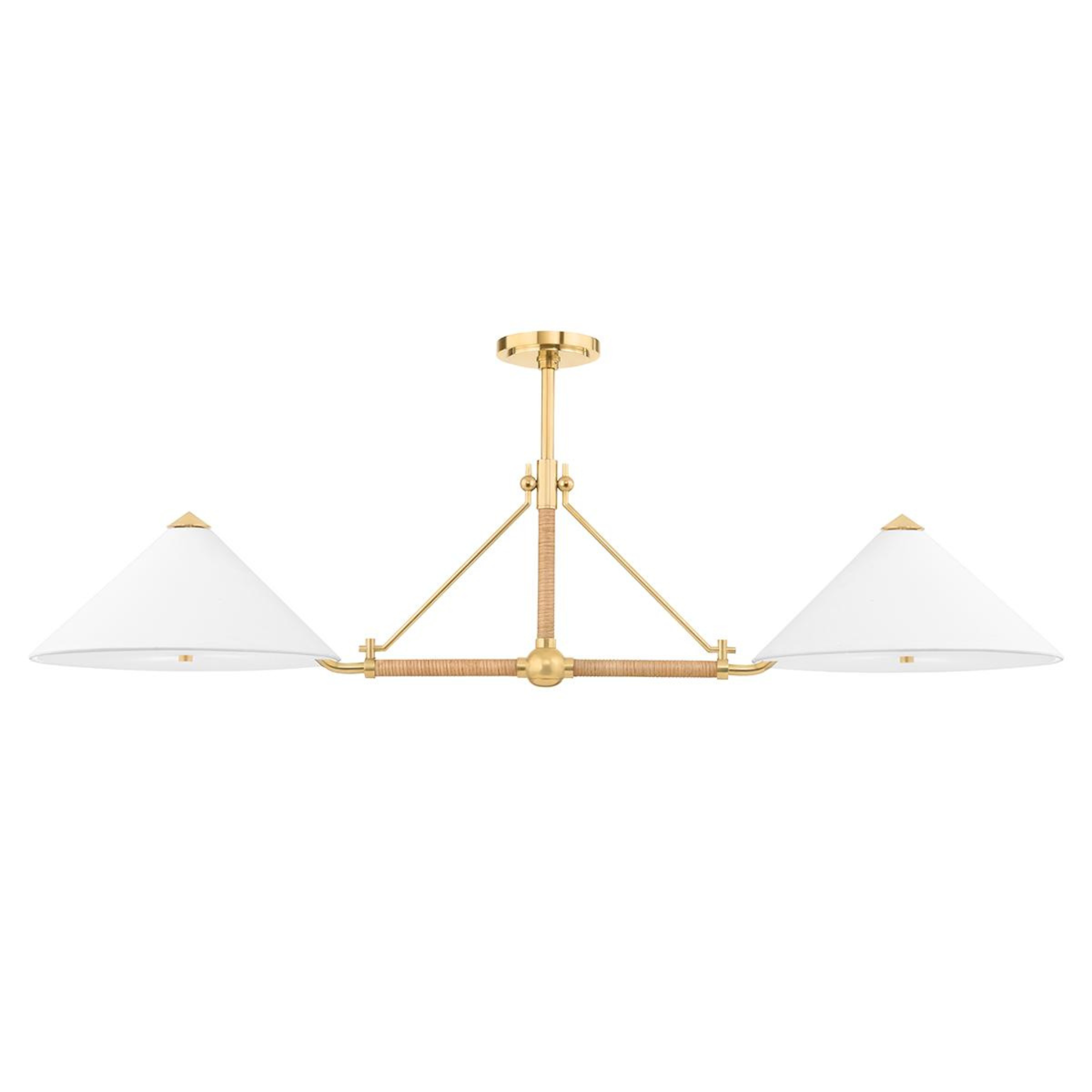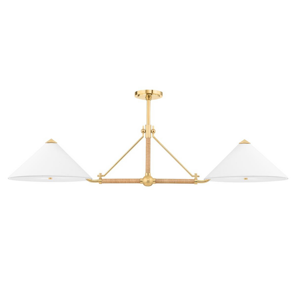 Williamsburg Rattan Wrapped Linear Chandelier in Aged Brass Finish