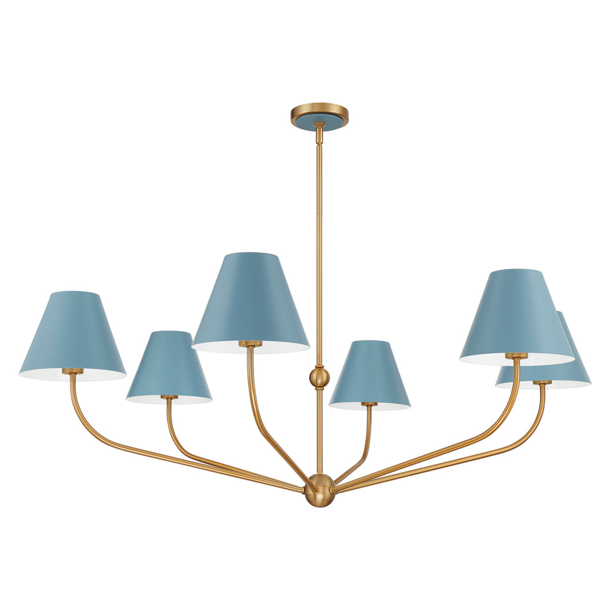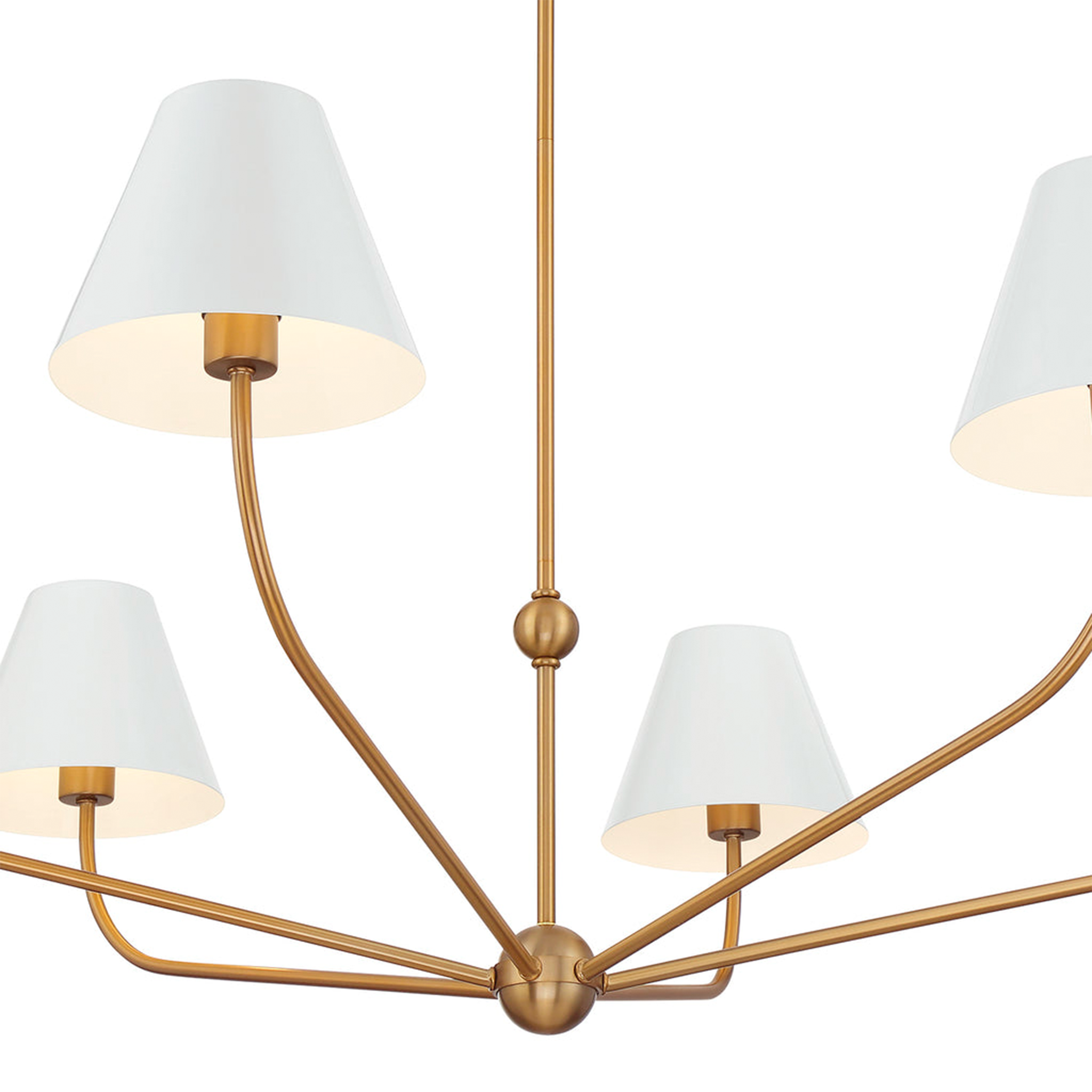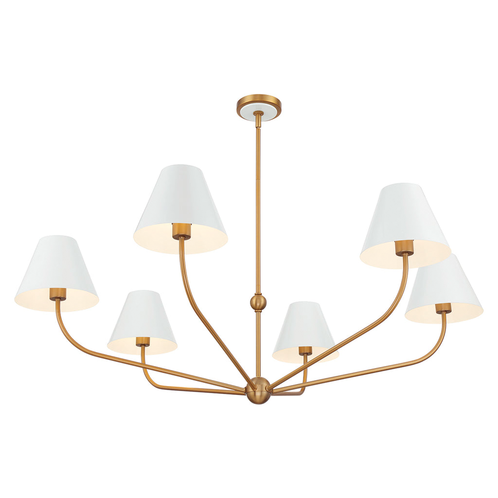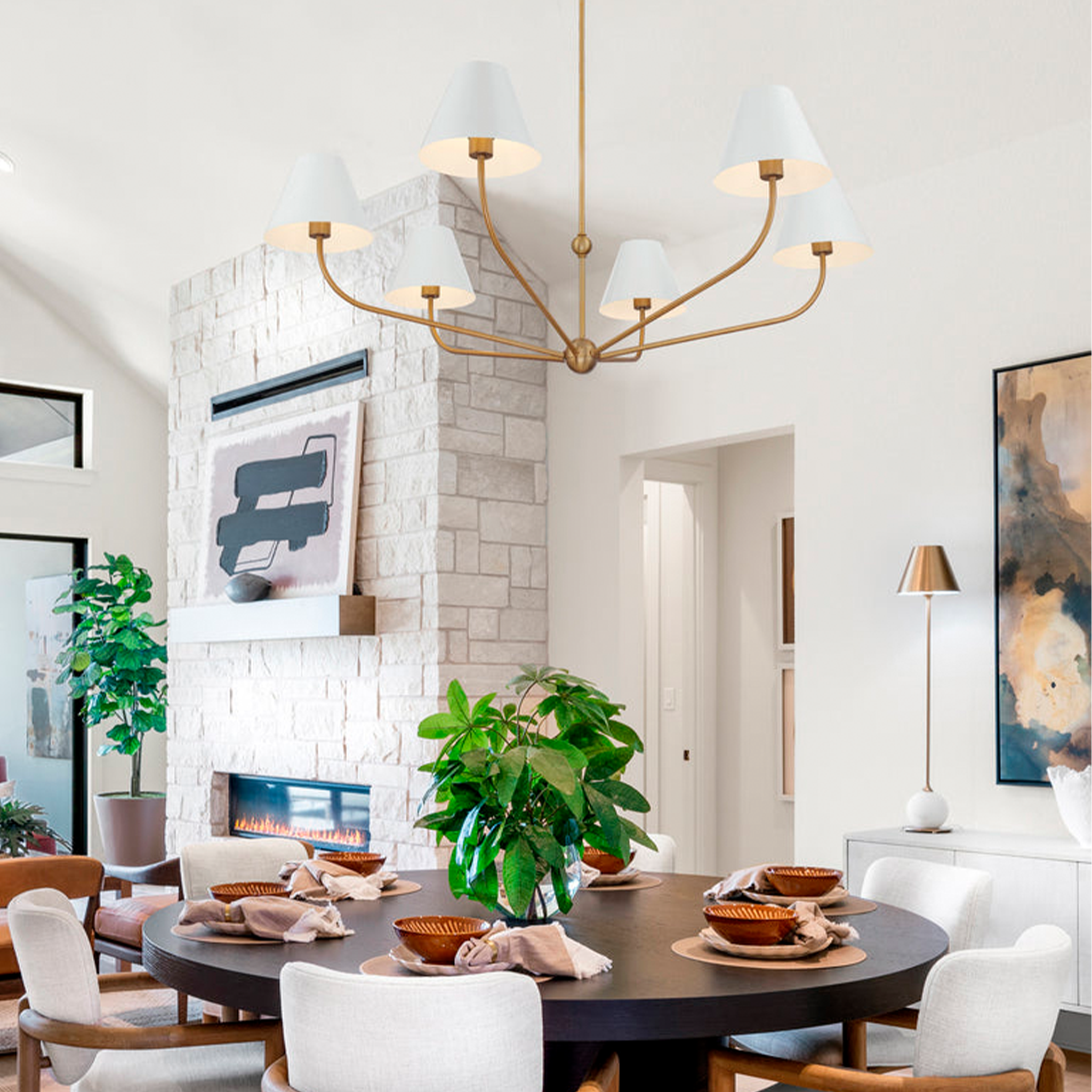 Elevate your space with the Xavier 6 Light Chandelier - a striking blend of modern form and industrial flair. Featuring six exposed bulbs and a bold metal frame, it casts a warm, inviting glow.