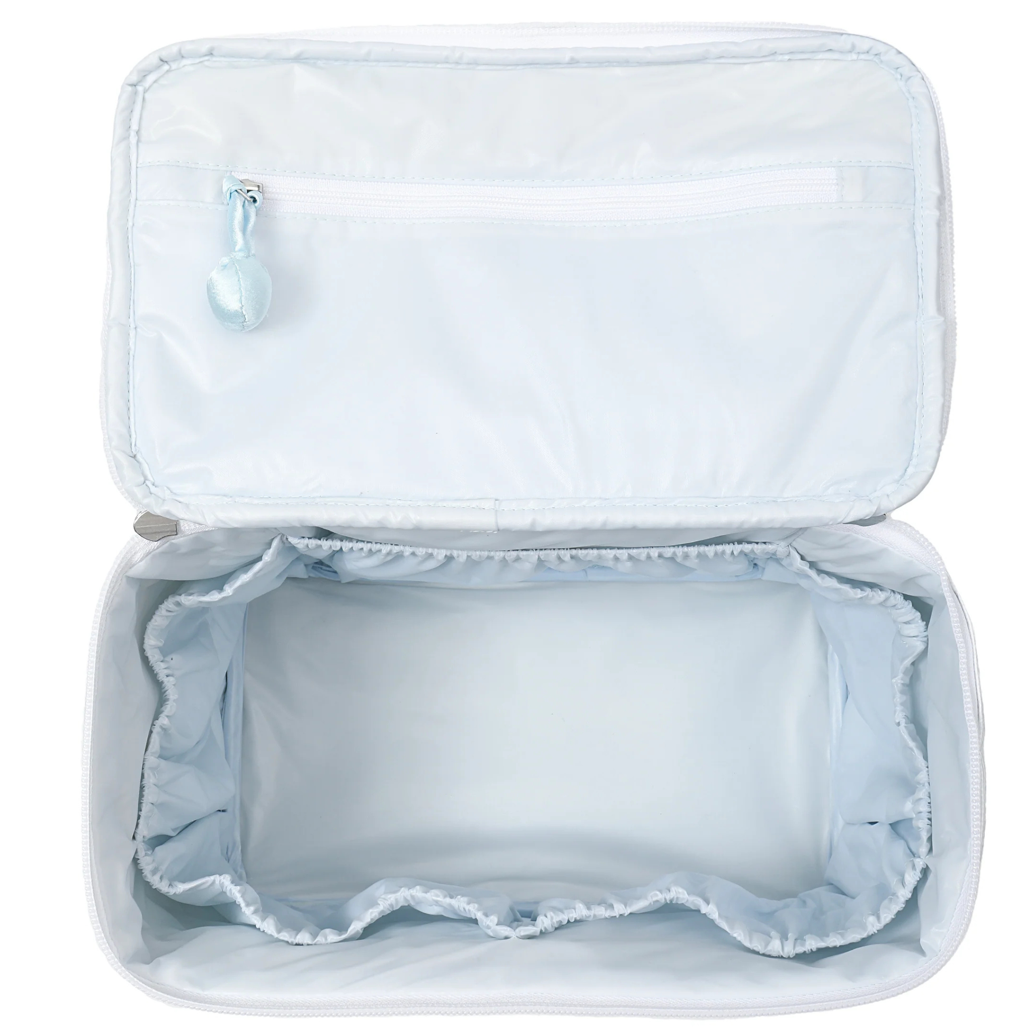 Our Embroidered Train Case exists at the intersection of beauty and practicality. Beautifully Embroidered with delicate florals, the stylish case features ample storage space and even includes a hand six- compartment divider to safely and securely hold all your make-up, skincare, covered in a plastic material for easy cleaning, and other beauty essentials on your next getaway.