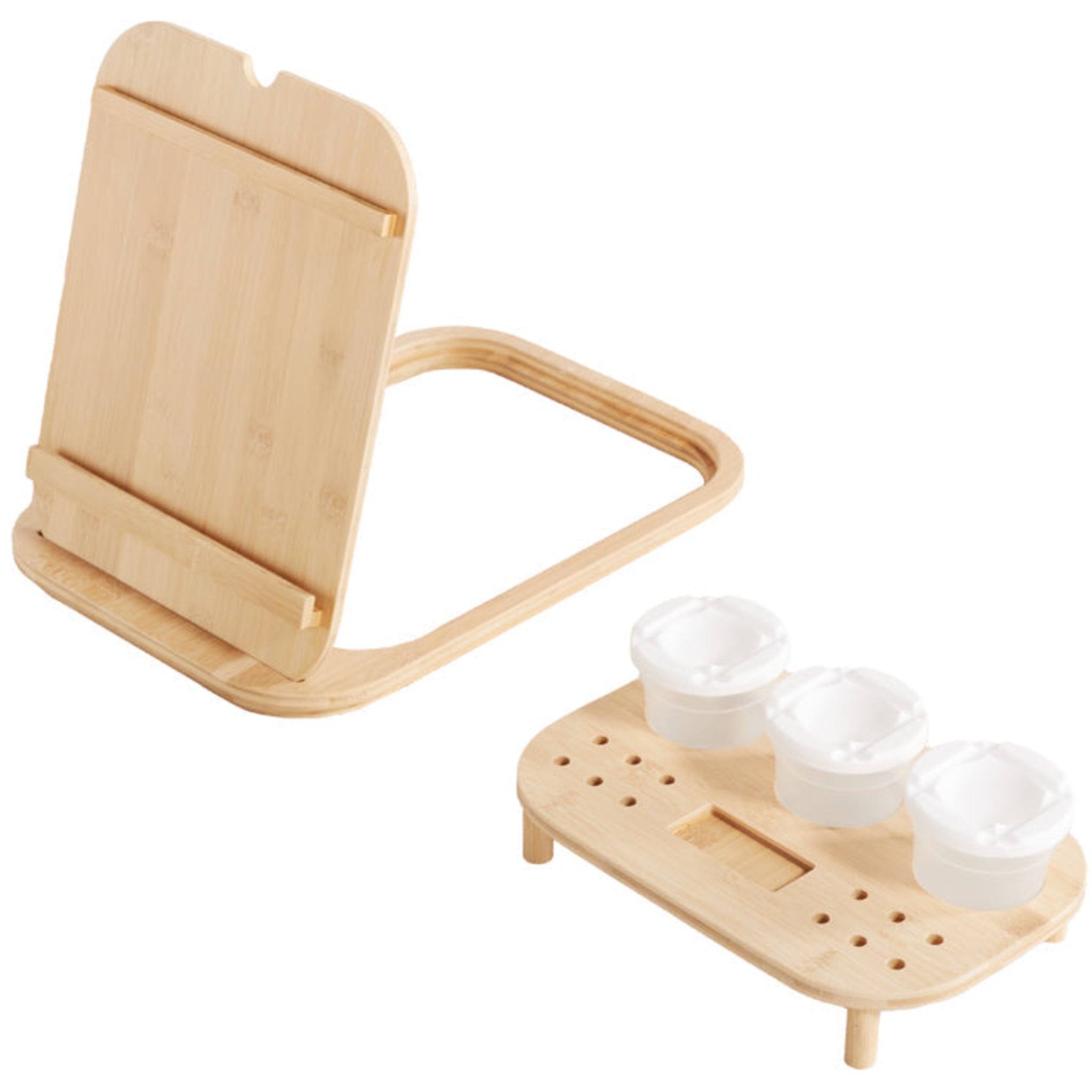- All-in-one setup: built-in easel, three paint cups and dedicated holders keep brushes and supplies organized