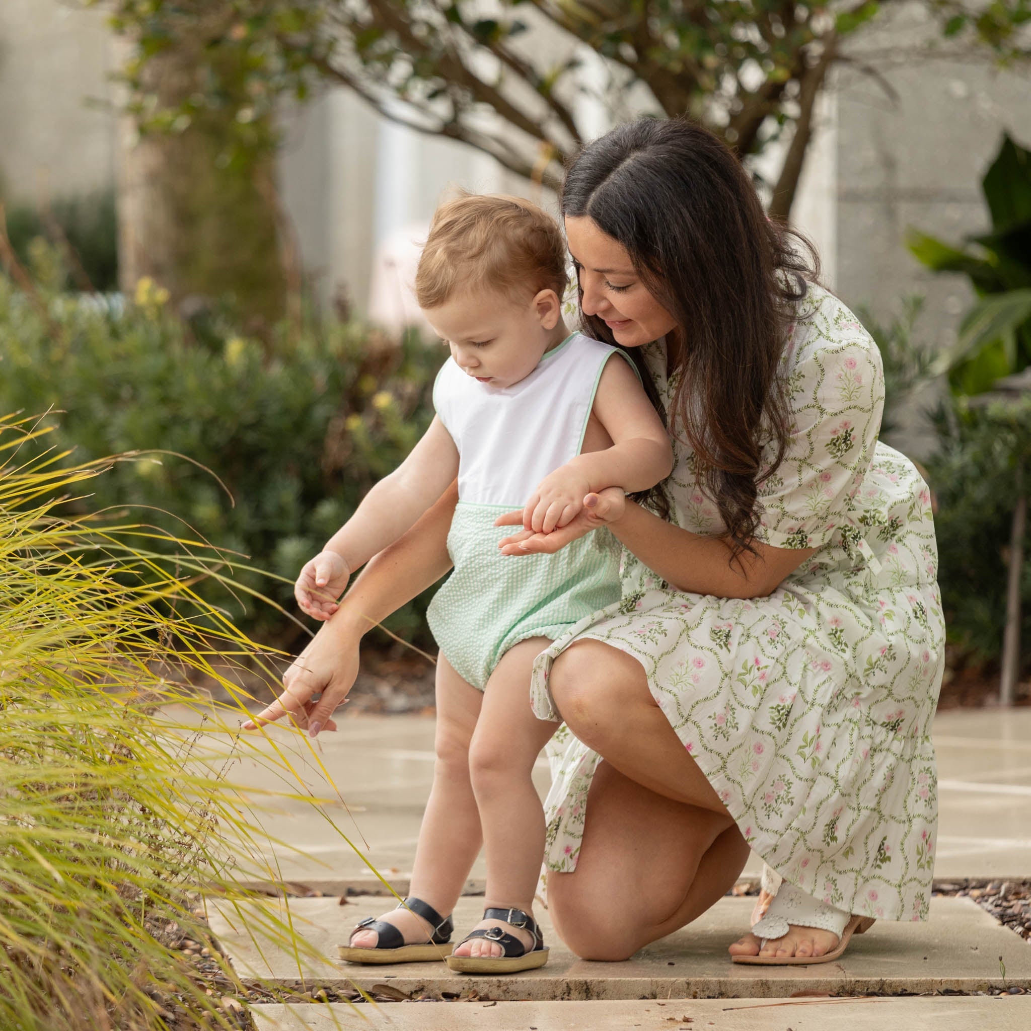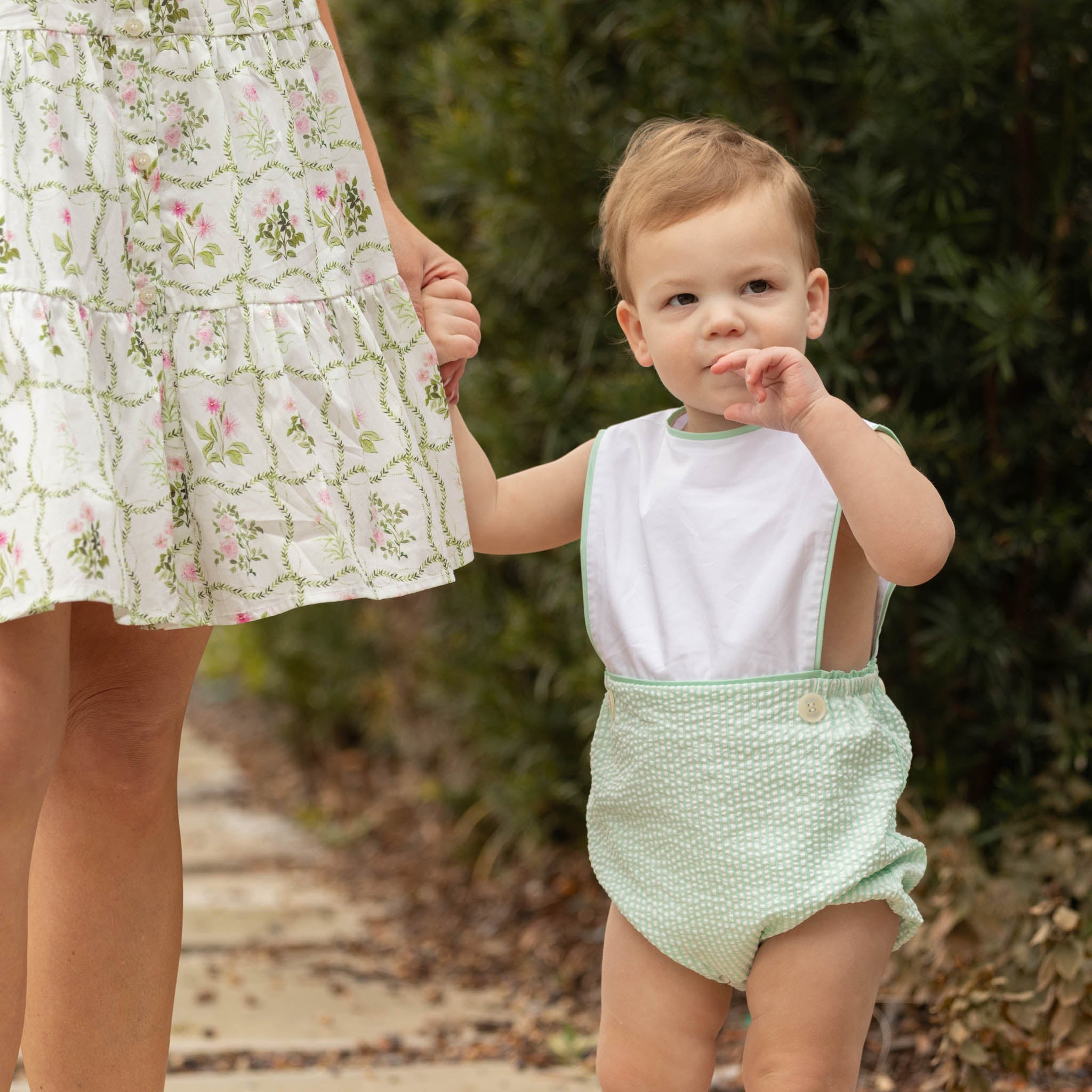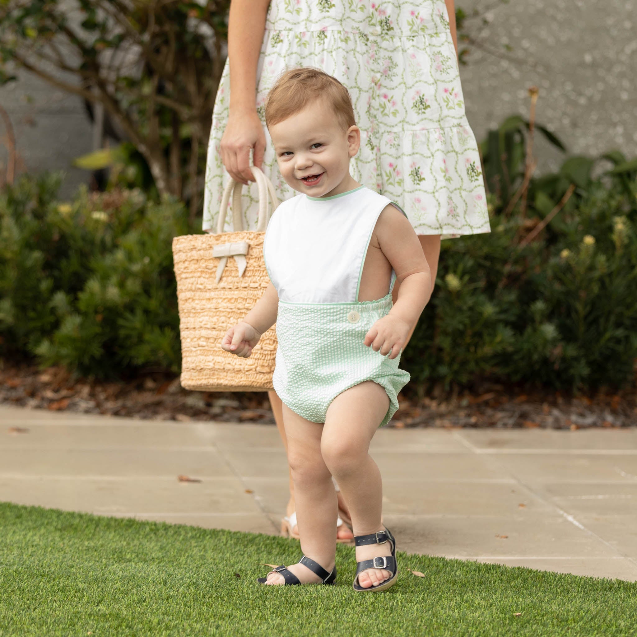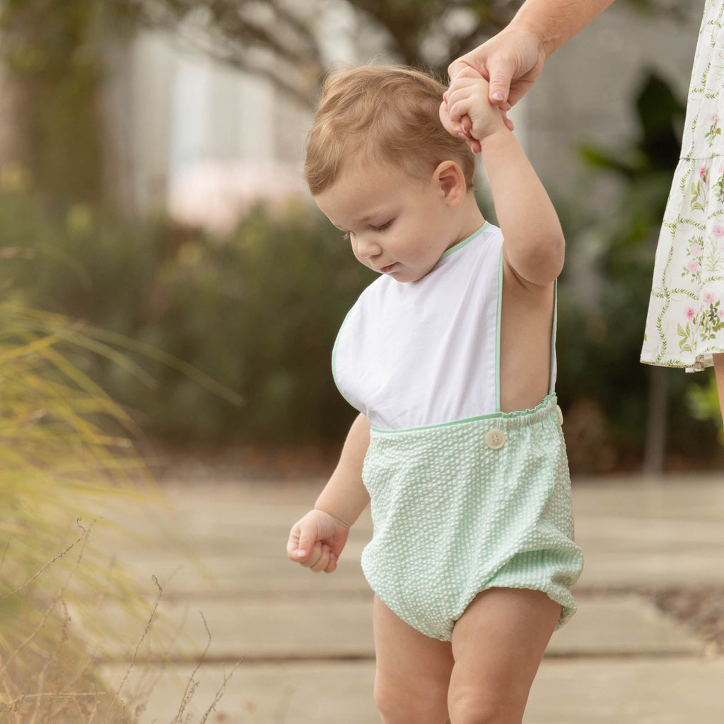 Our Andrew bubble is one of our favorite pieces for baby boys! It's classic and sweet and features our large HD buttons on the front and back, making the details almost as precious as he is.