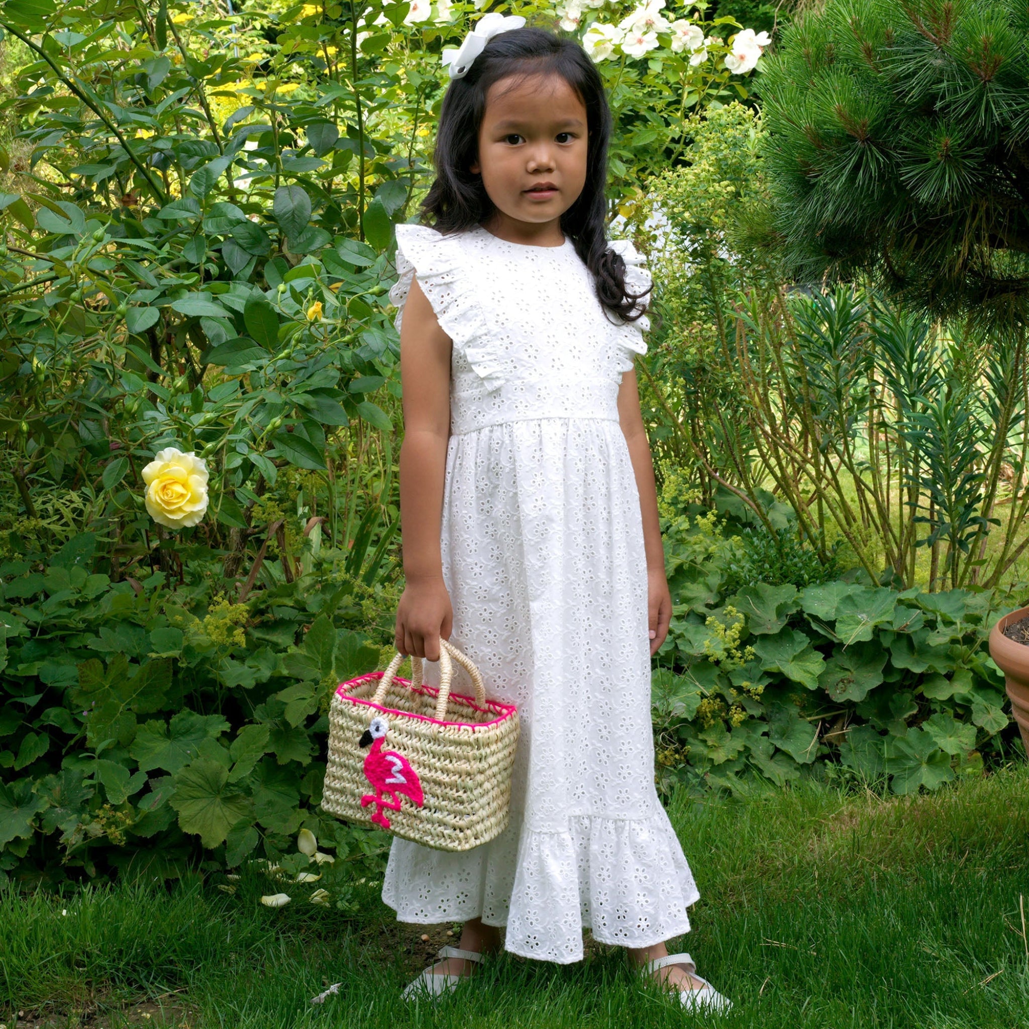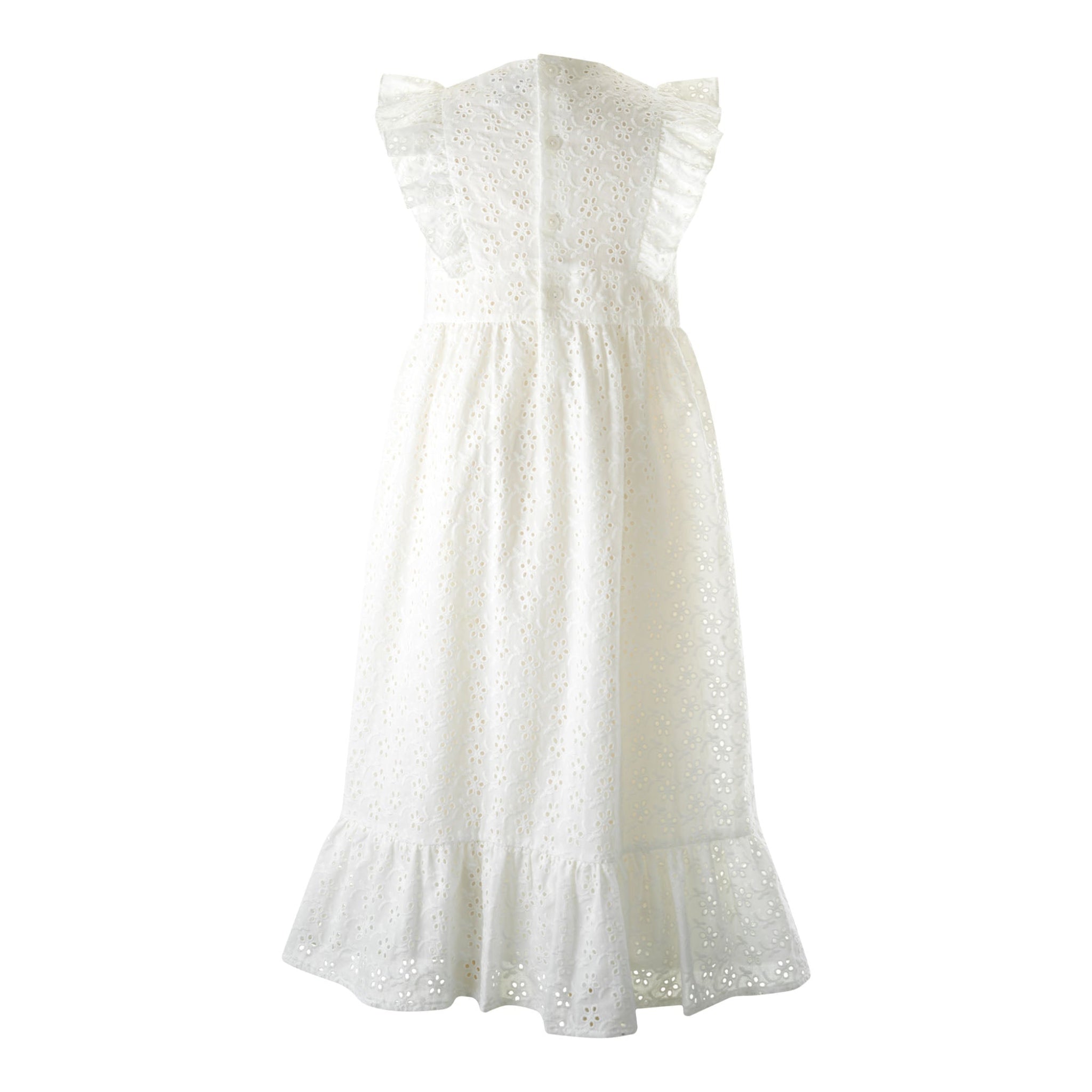 Introducing our Eyelet Maxi Dress - where elegance meets girly! This stunning ivory maxi dress is perfect for your little one, featuring delicate eyelet embroidery allover. With complimenting ruffles around the shoulders and bottom hem, it's perfect for vacations and special summer occasions. Your little fashionista will love it!
