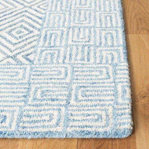 Blue & White Hand Tufted Geometric Patterned Wool Area Rug