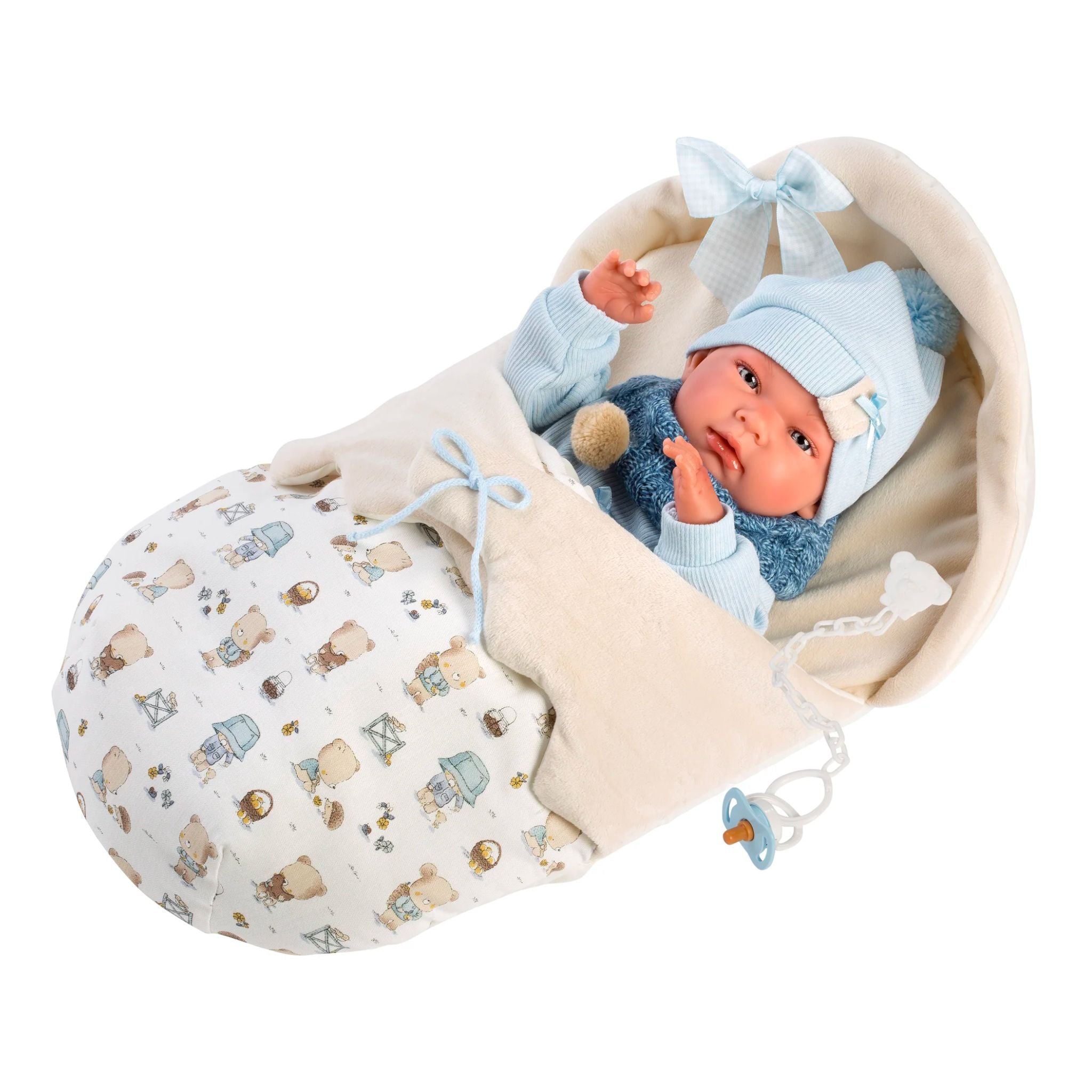 Cuddle up to our cute baby doll Kyle. Kyle comes with a cozy sleeping bag for the perfect nap time. Let your little one drift off to sleep with their new best friend. This detailed baby doll is sure to bring years of comfort and companionship!