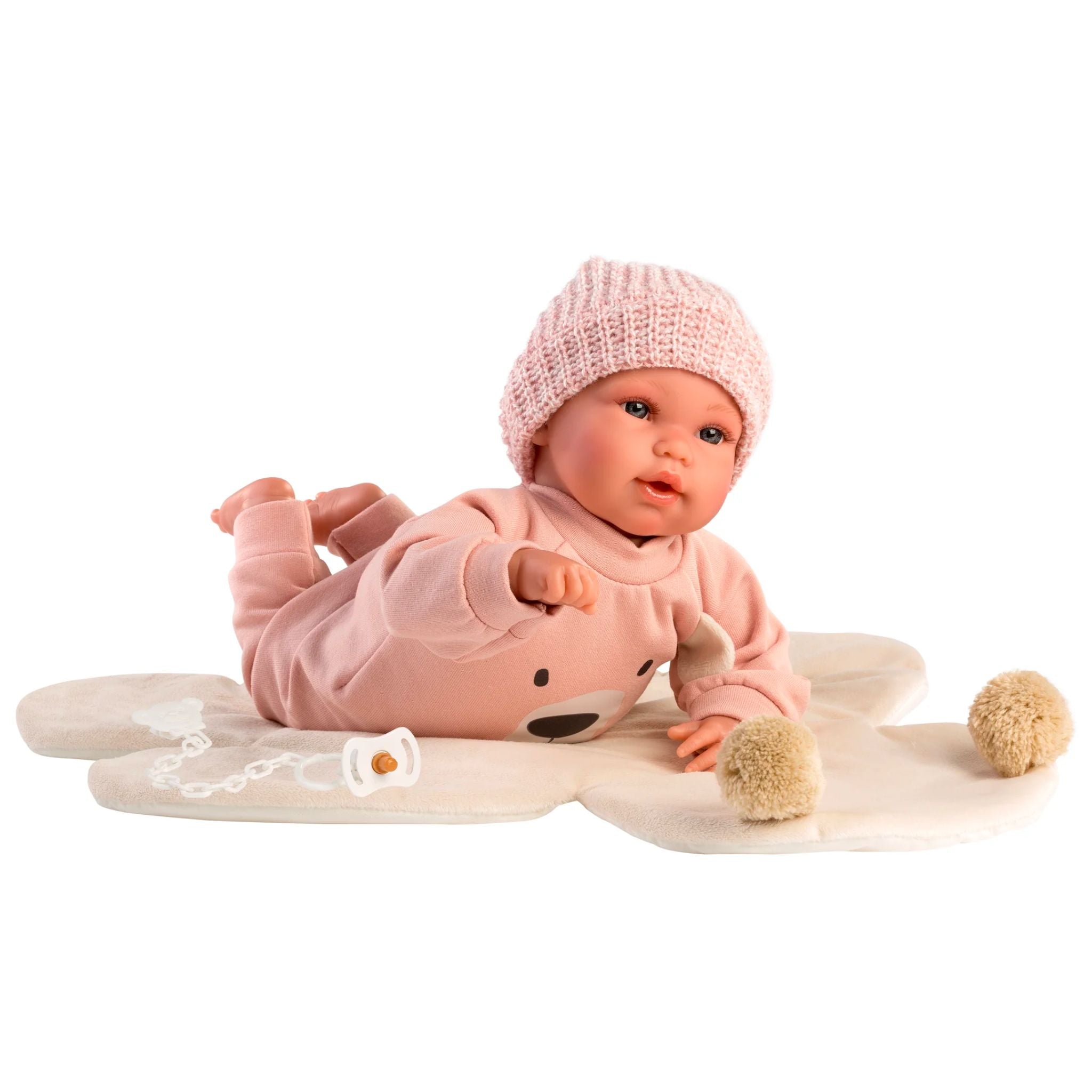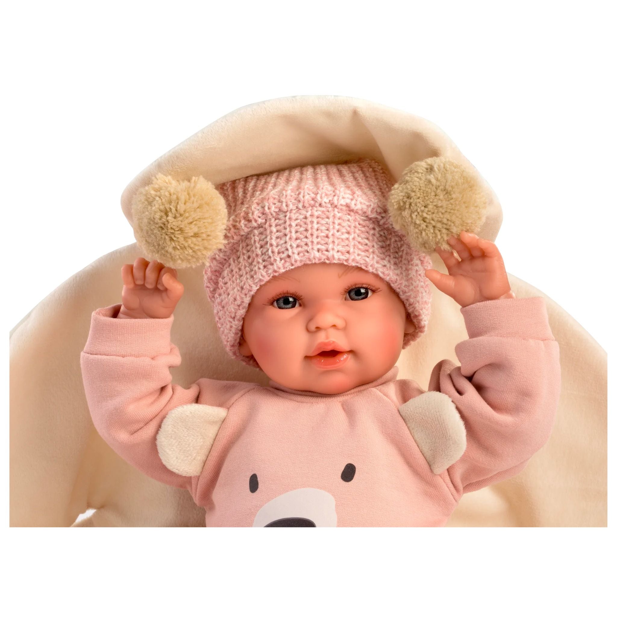 Claudia is an articulated crying newborn doll! She's wearing a precious pink onesie and matching hat, complete with her own adorable bear blanket. She's sure to become a treasured addition to your family!