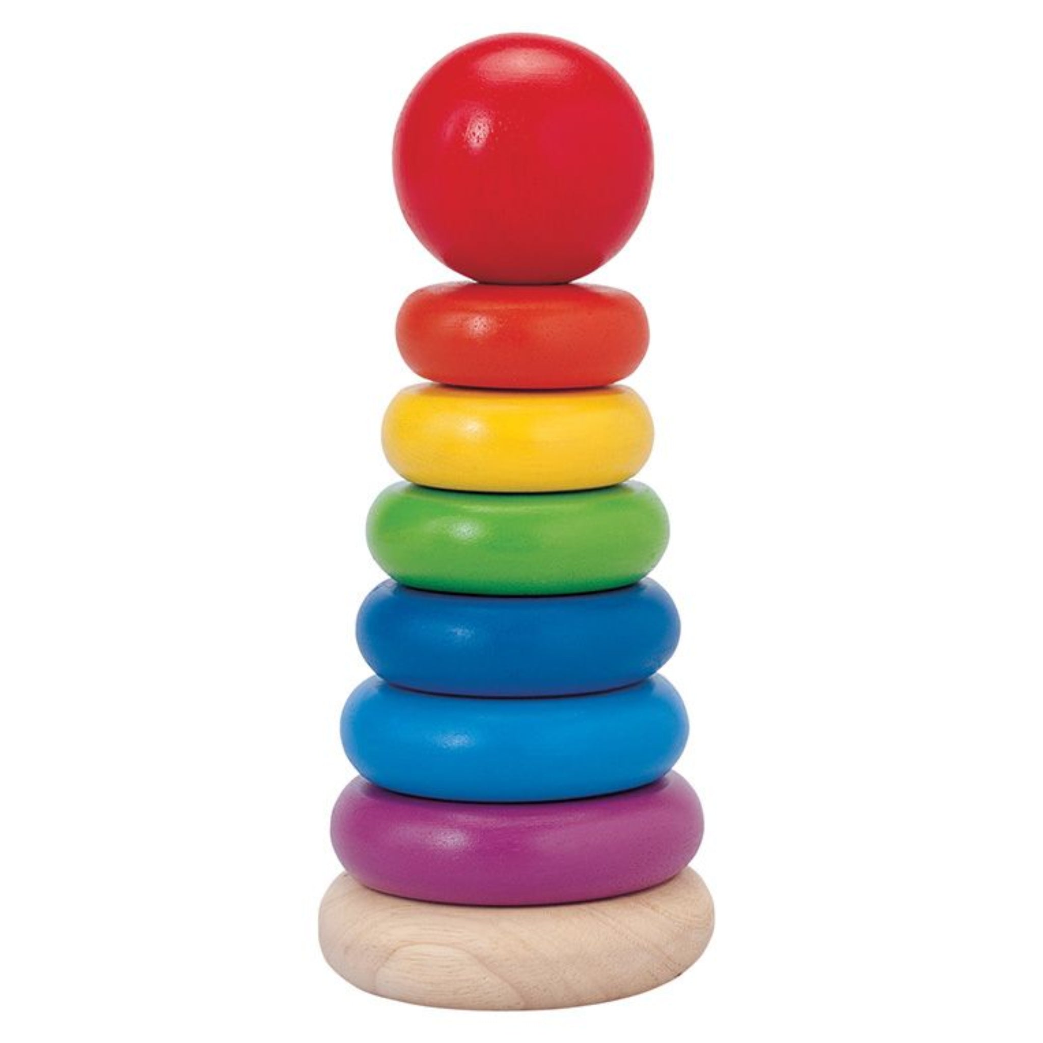 The colorful wooden Stacking Ring helps teach children about size and colors. For safety precaution, the center rod is foldable.