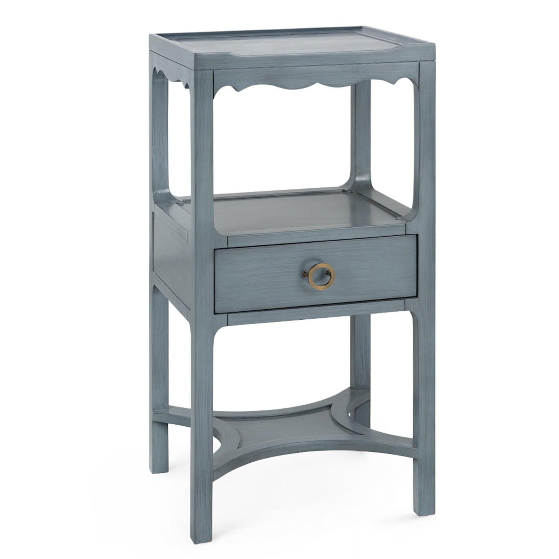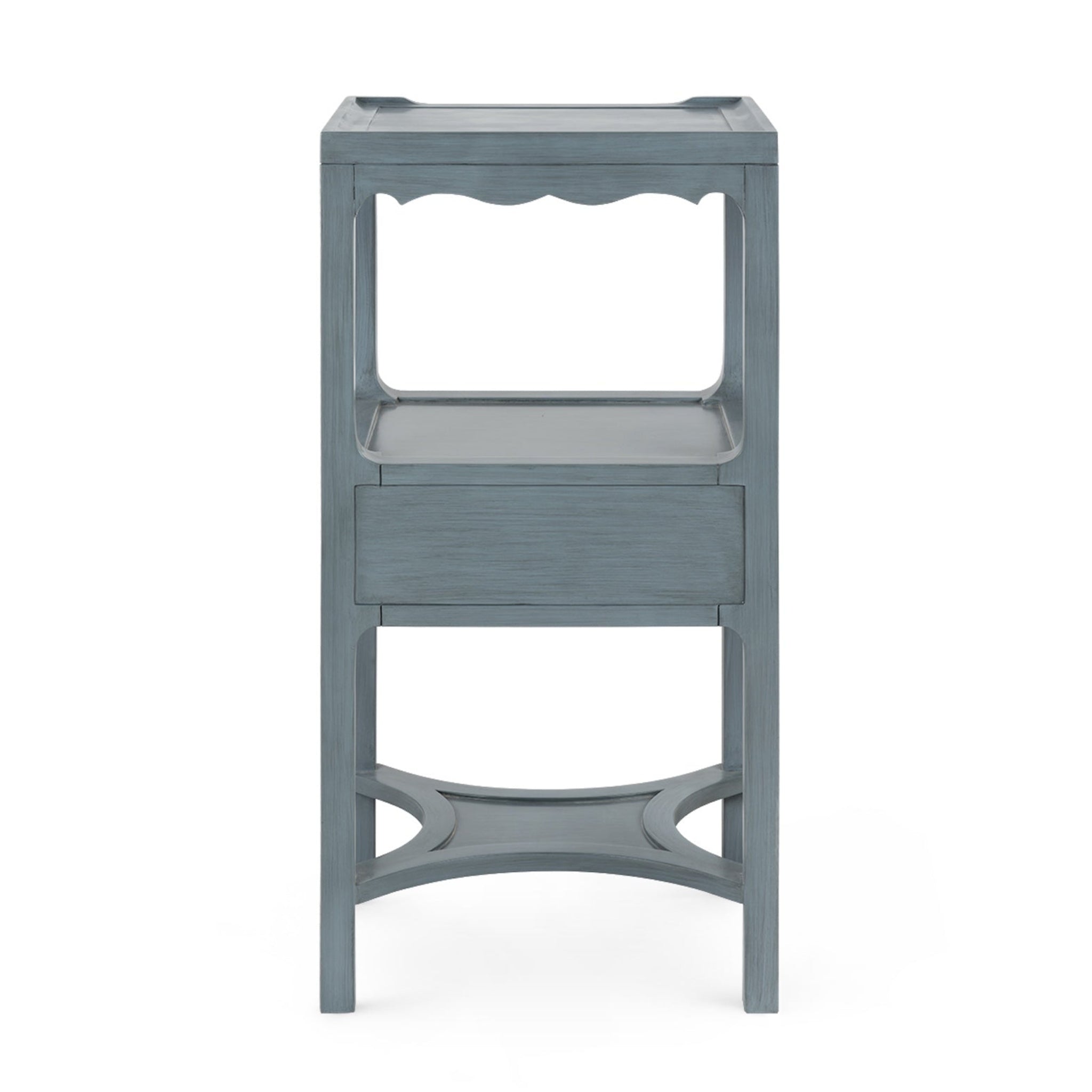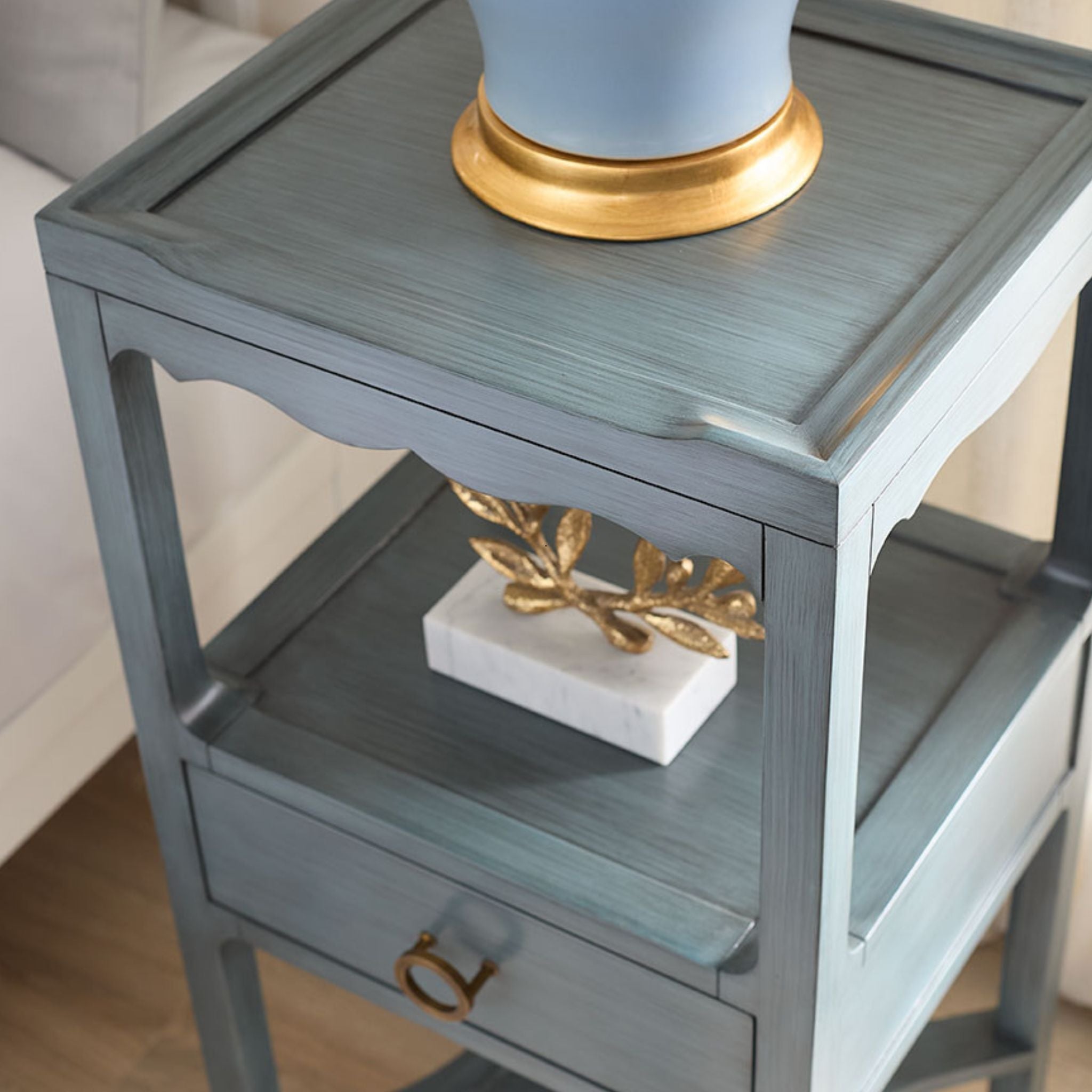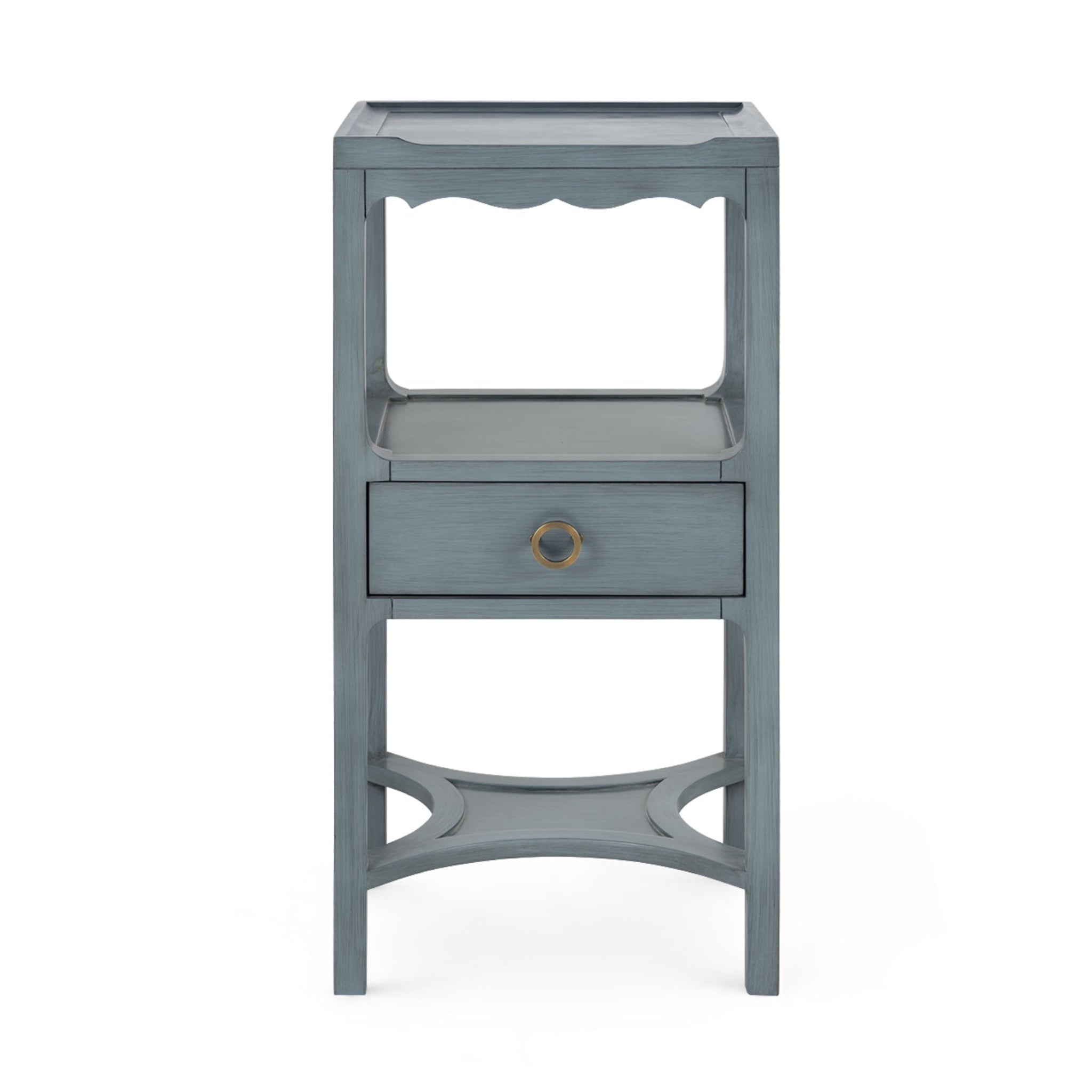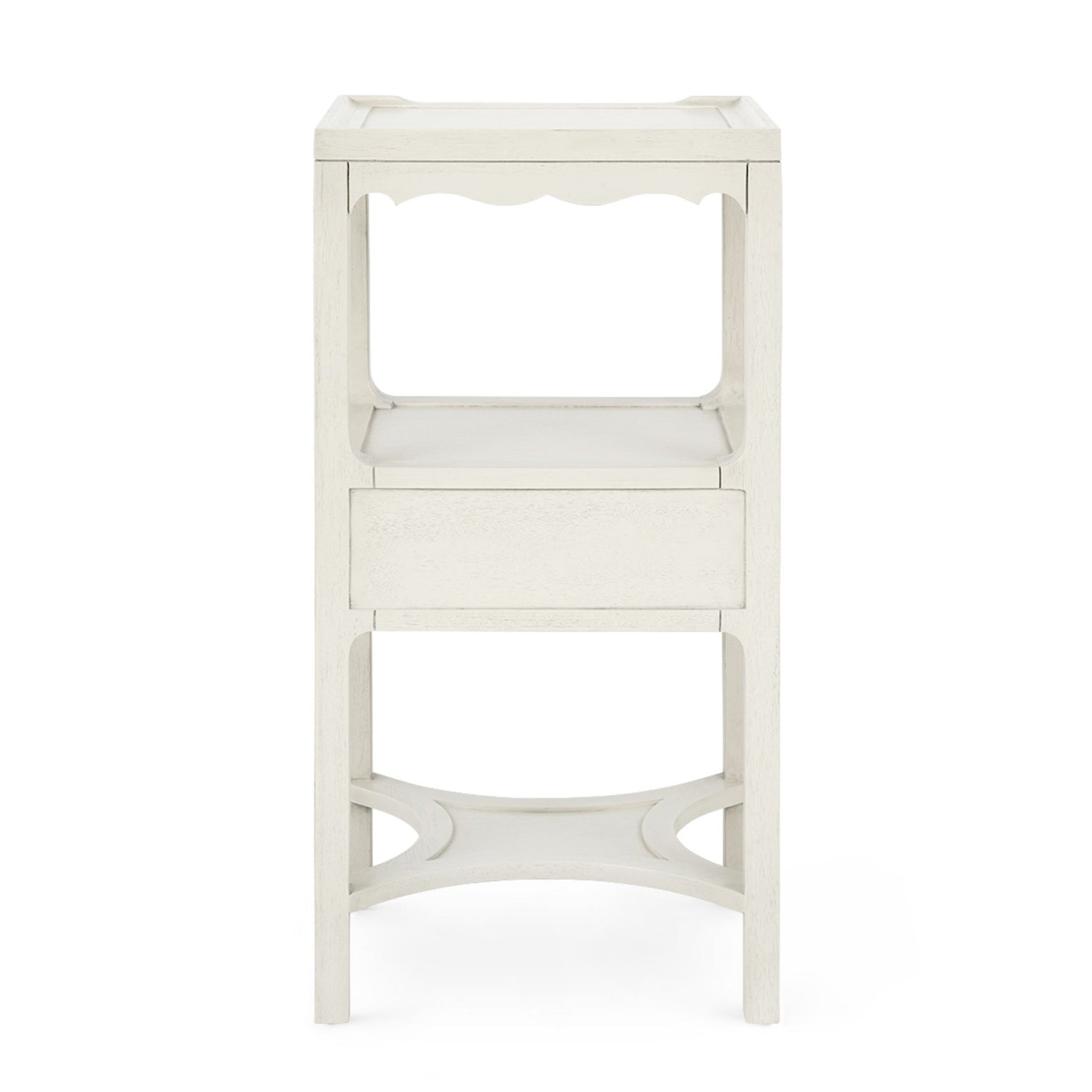 The Sara 1-Drawer Side Table blends vintage-inspired charm with a modern finish, featuring raised panel drawer detailing and softly curved aprons for a romantic, timeless look. Crafted from lacquered acacia wood, it offers a soft-close drawer and a refined silhouette that adds effortless elegance to any space.