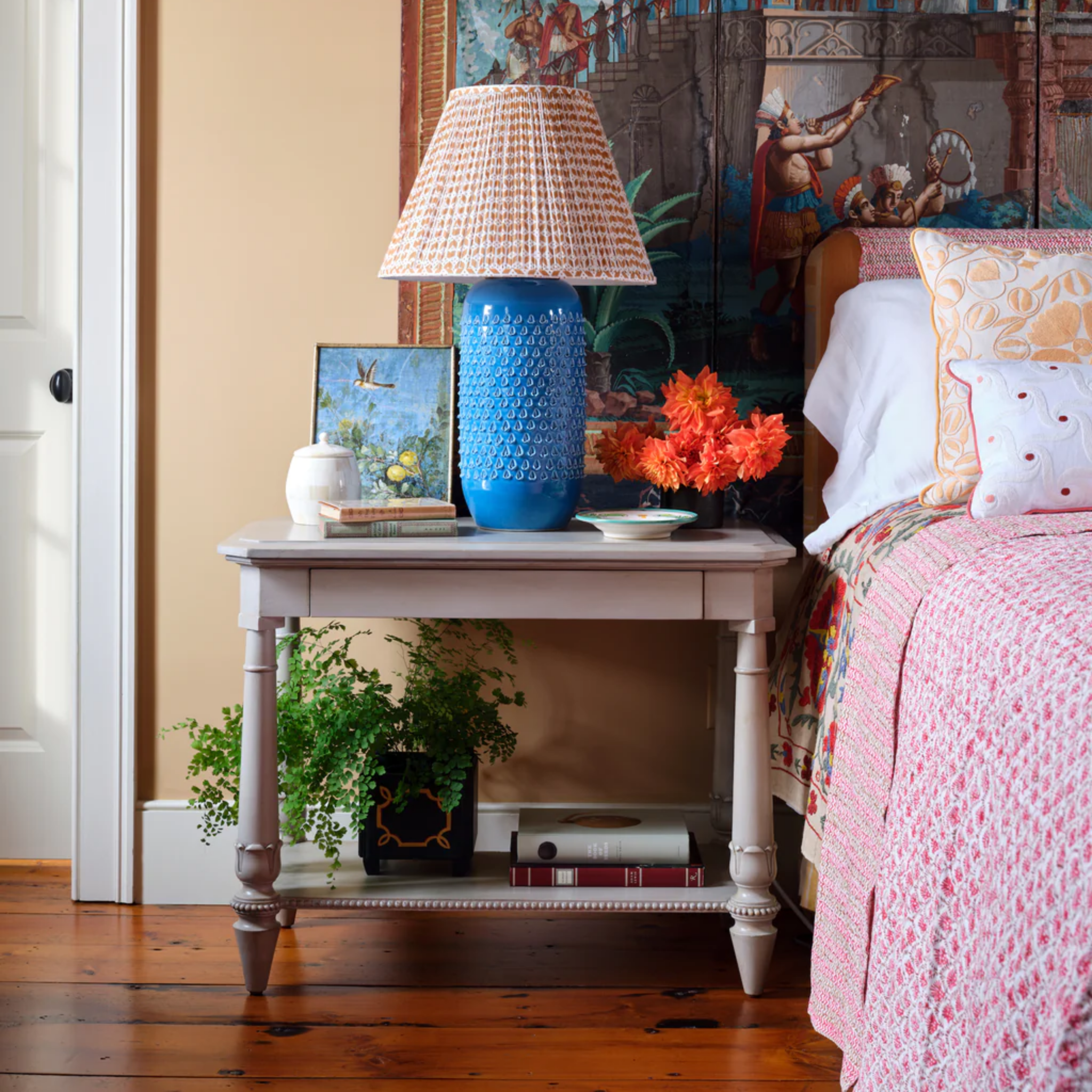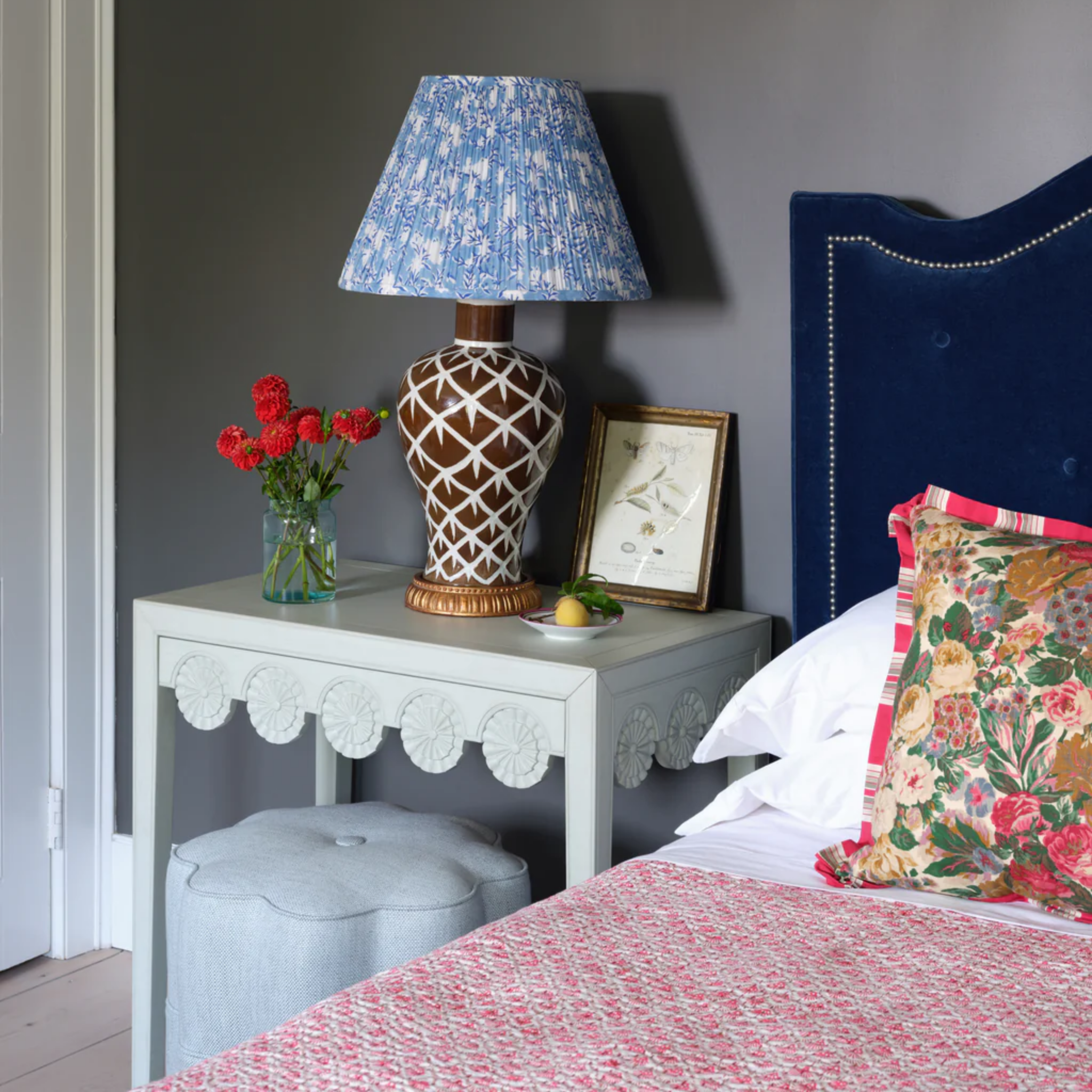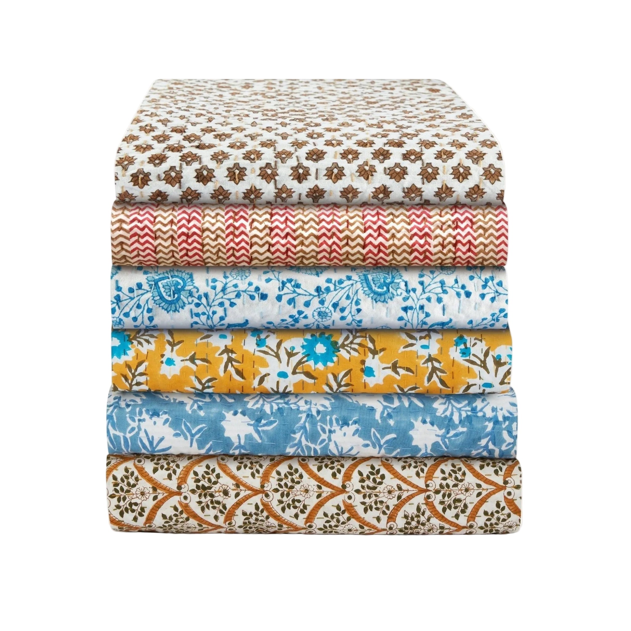 A soft, hand blocked reversible throw in a playful zig-zag pattern. Featuring a charming floral pattern on its opposite side, with coordinating stitching. Available in three sizes: Sofa, Queen, and King. Click images for greater detail.