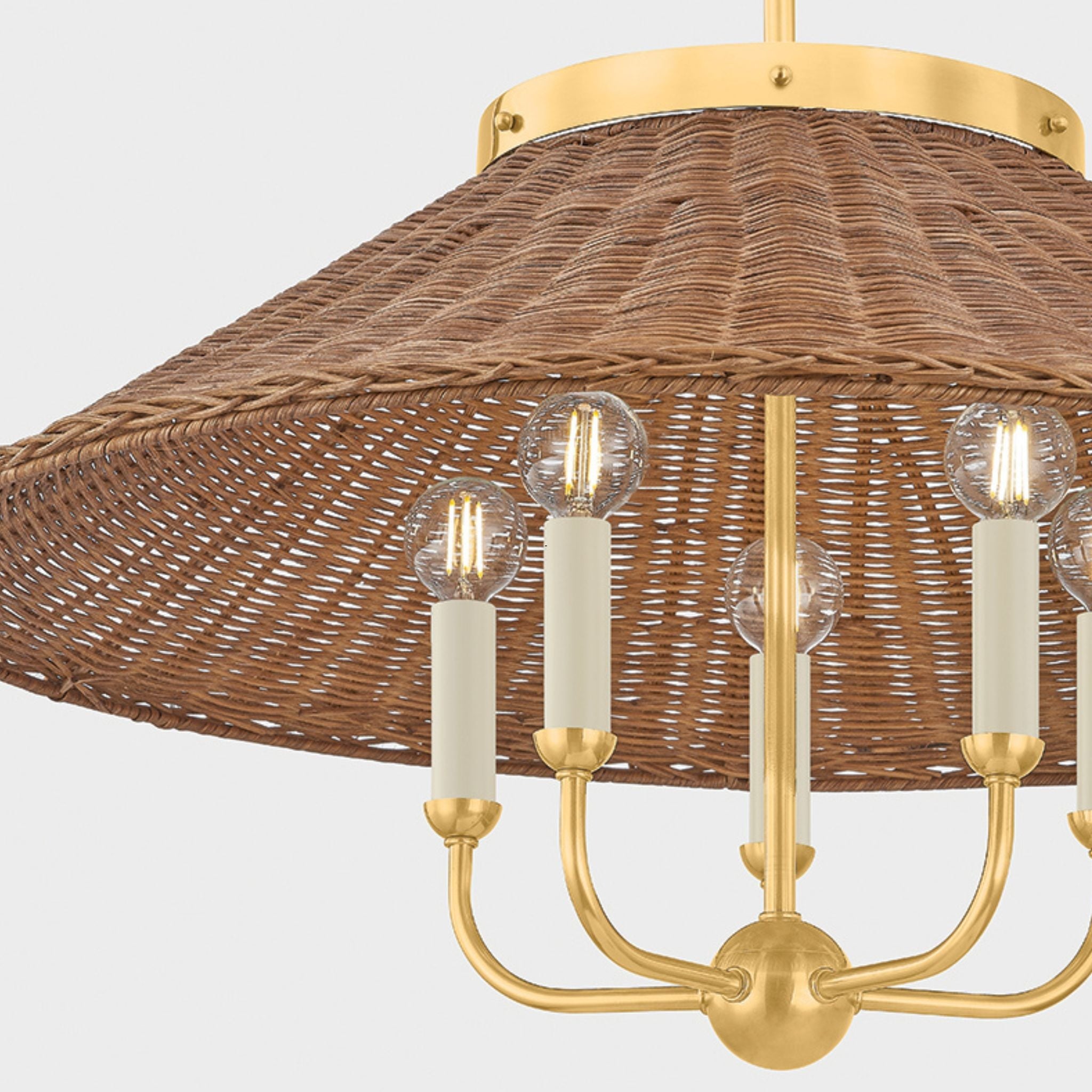 Kensington reimagines Mark D. Sikes’ Clivedon family by introducing the natural beauty of walnut wicker. The heritage feel of these fixtures stems from their artisanal craftsmanship, Aged Brass accents, and classic design details like a slender gooseneck arm. An instant classic, Kensington is designed to be layered with other pieces in the same family.