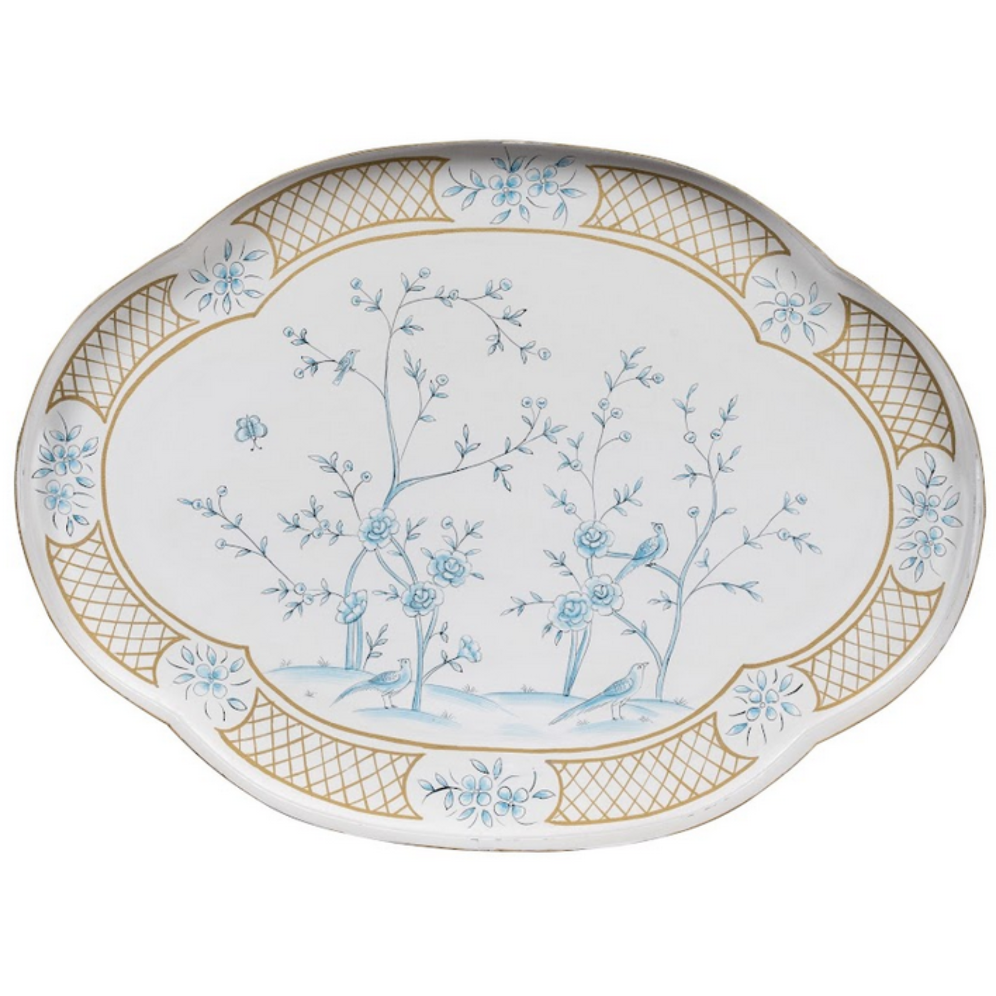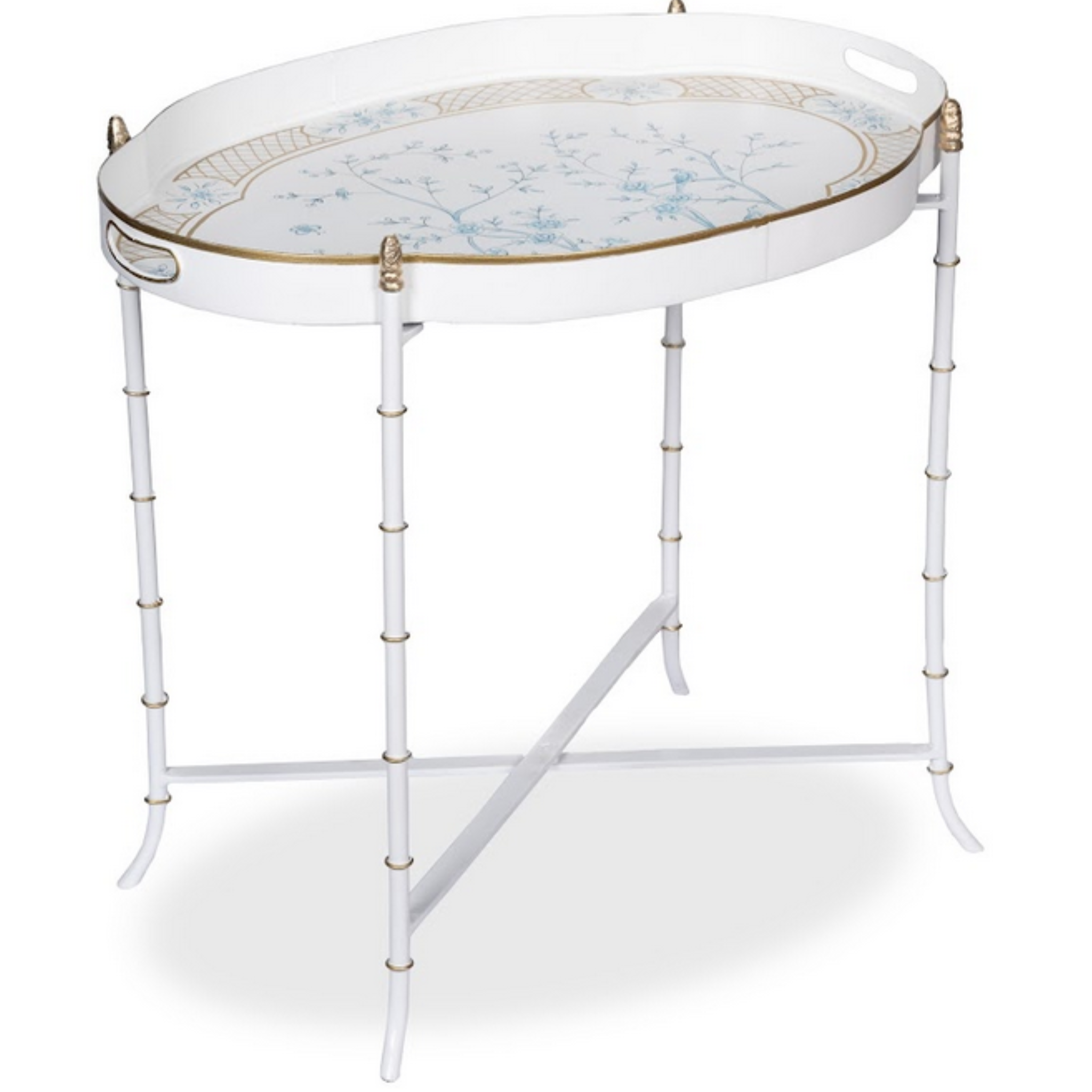 Ivory & Blue Scalloped Tray Table
