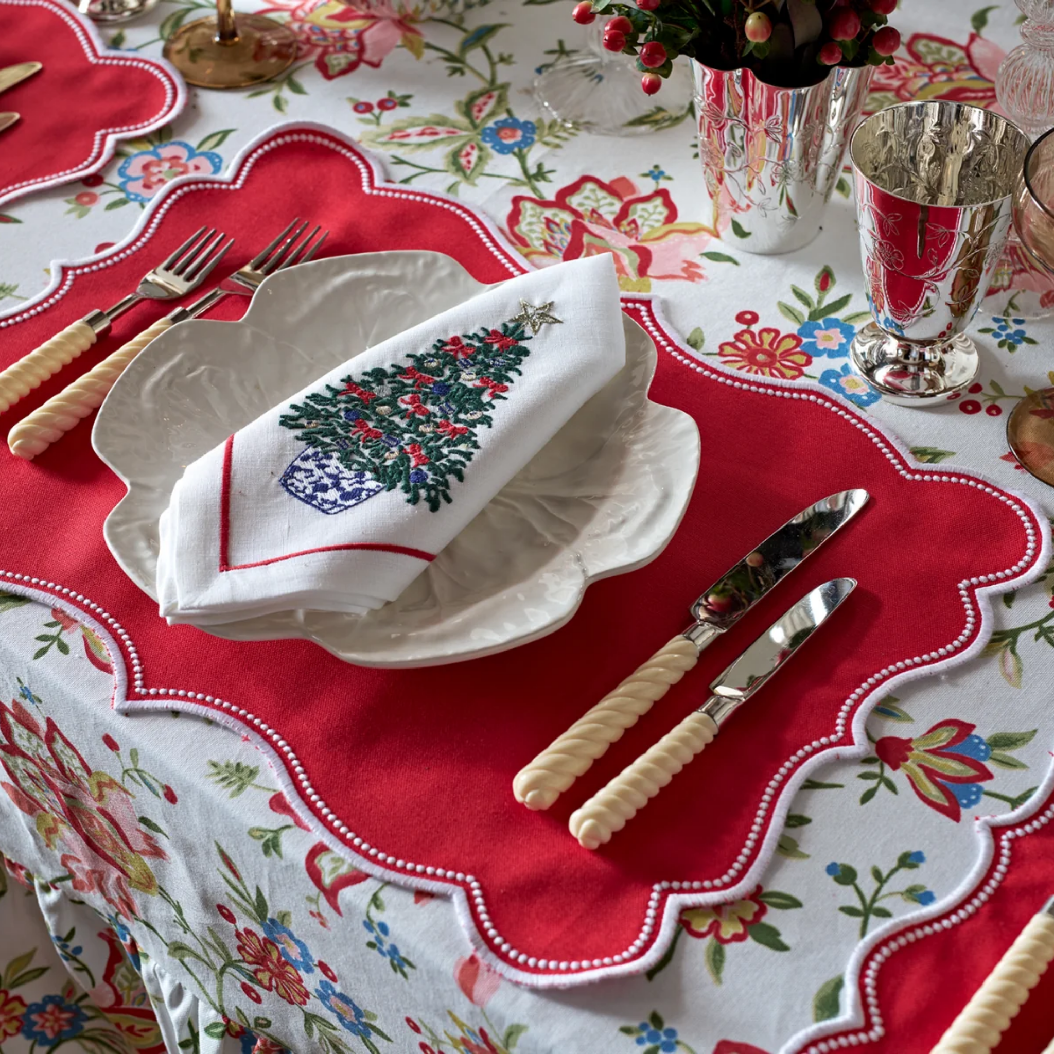 These Embroidered European placemats will elevate your table and help you host the chicest soiree! Set of 4. These items are final sale and not eligible for return. Because our products are all handmade, no two are exactly the same. Click images for greater detail.