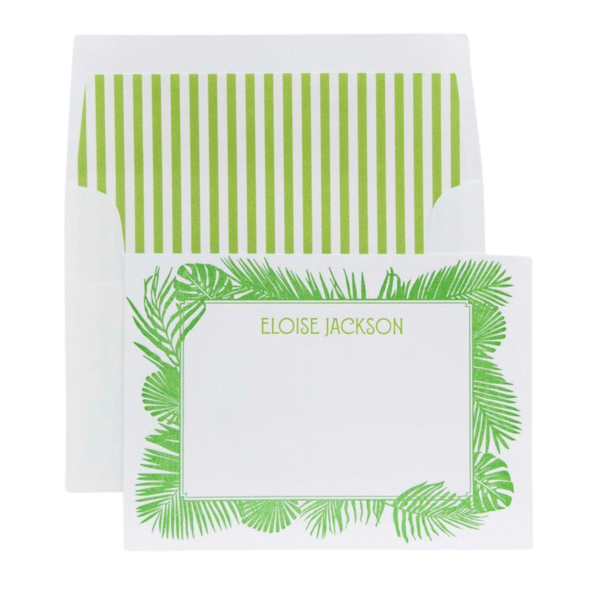 All stationery in our Personal Stationery collection is printed on 4.5" x 6.25" Crane's 110# Lettra using a Two Color Letterpress print method.