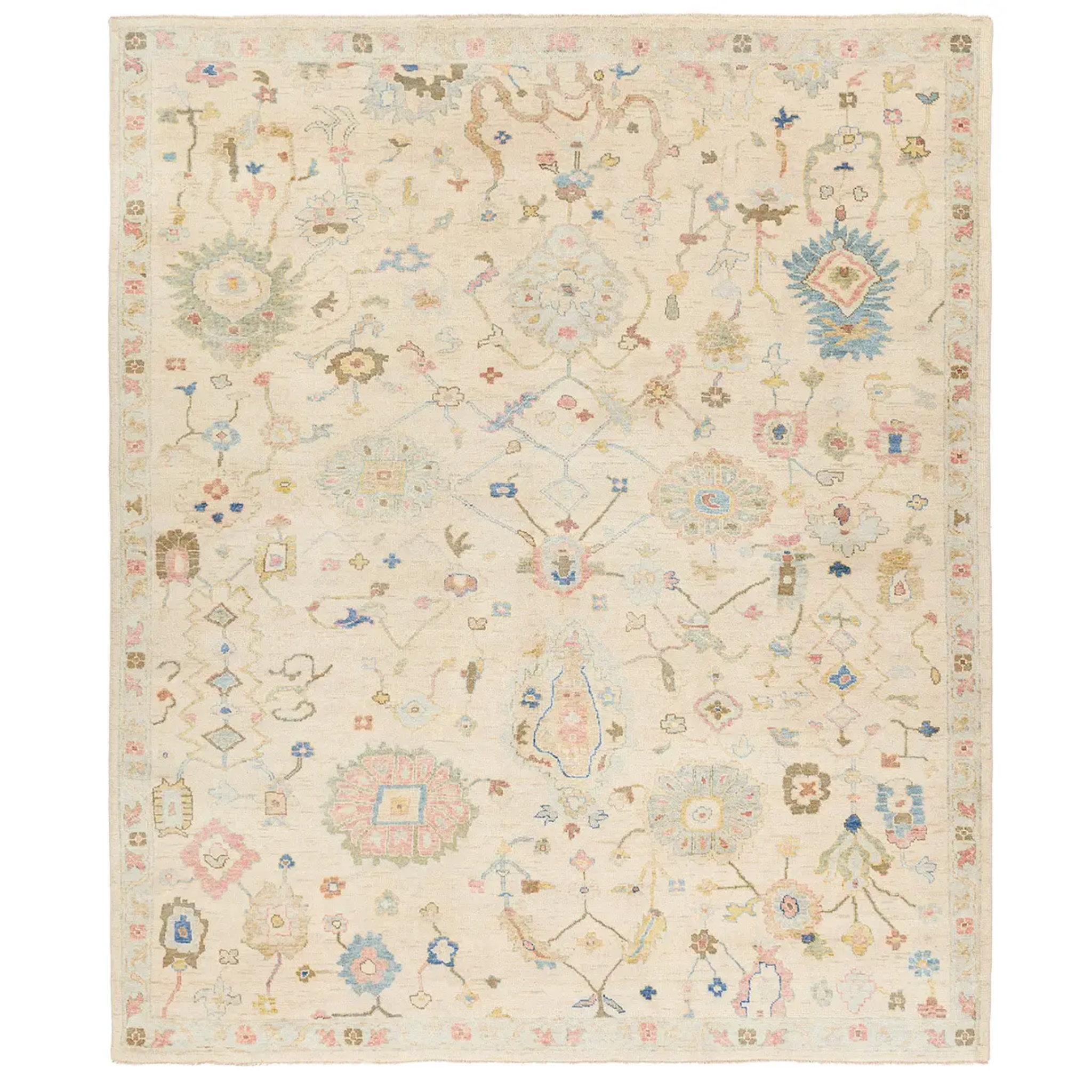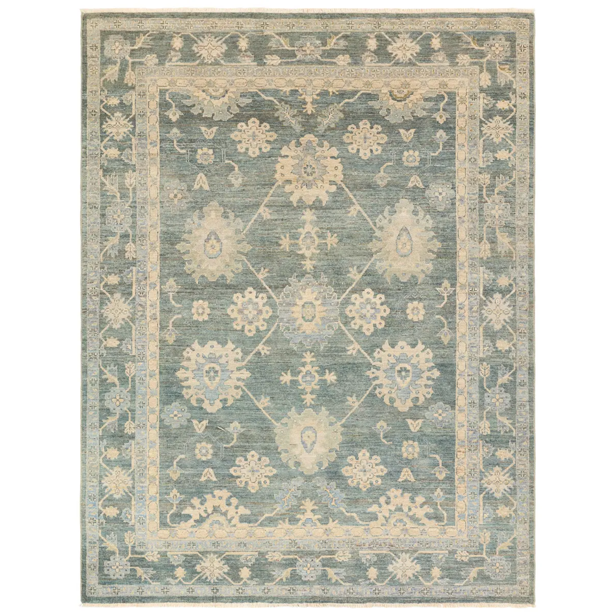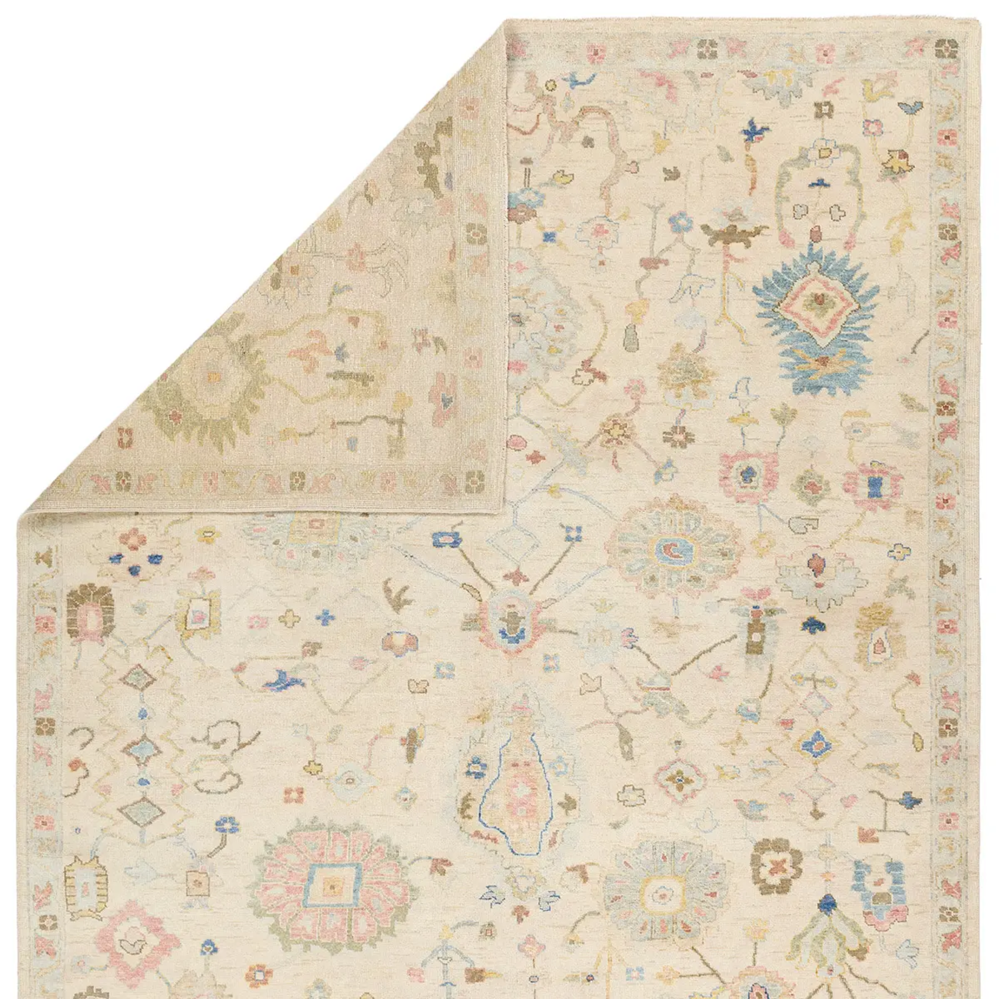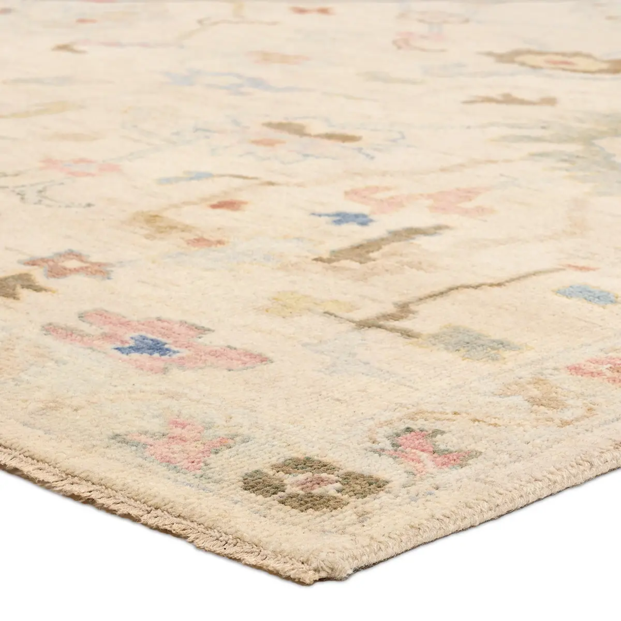 This rug marries traditional motifs with soft, subdued hues for the perfect blend of fresh and time-honored style. Features a hand-sheared quality that gives the design a vintage impression.