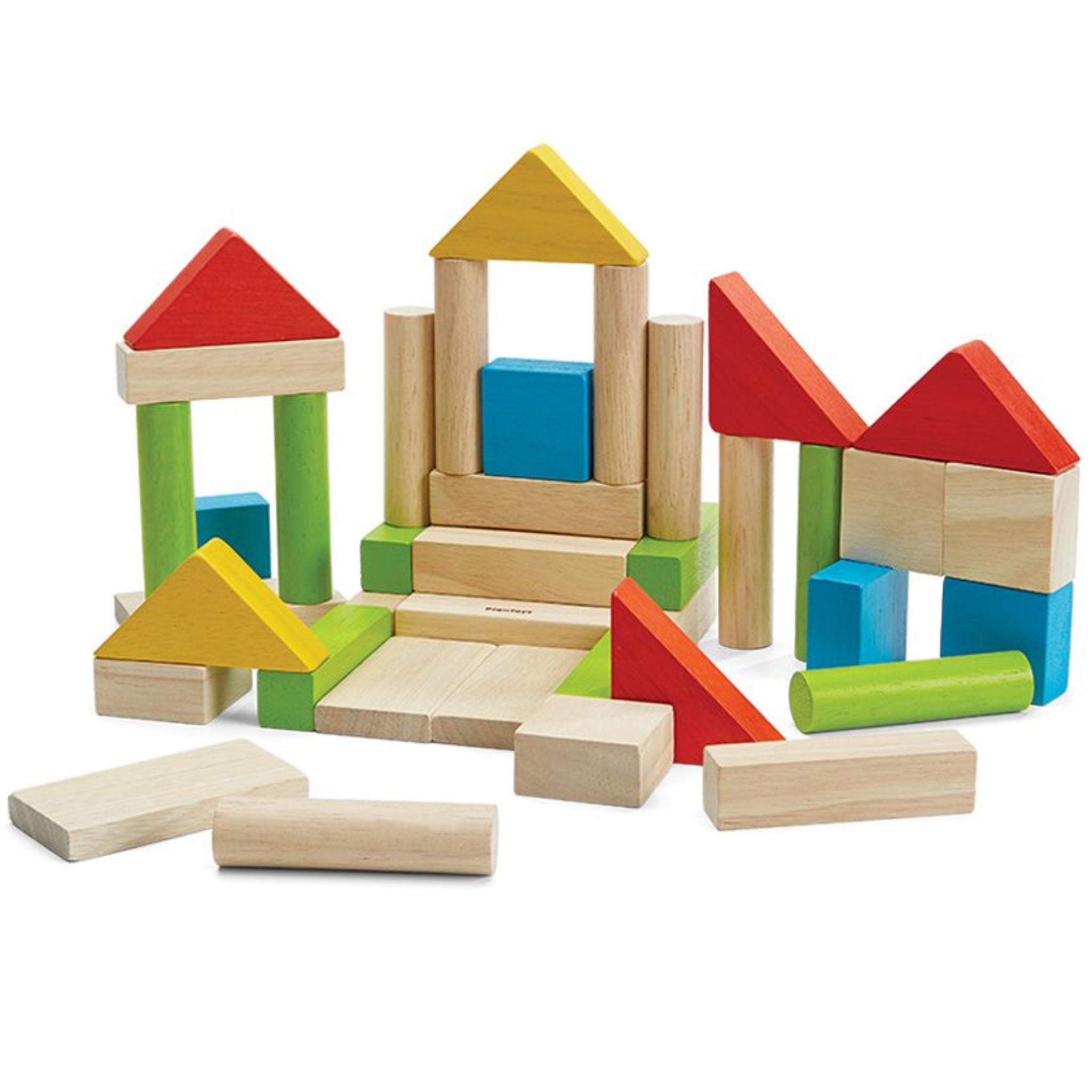 - Comes with 40 blocks of different shapes and sizes in a natural and colored blocks