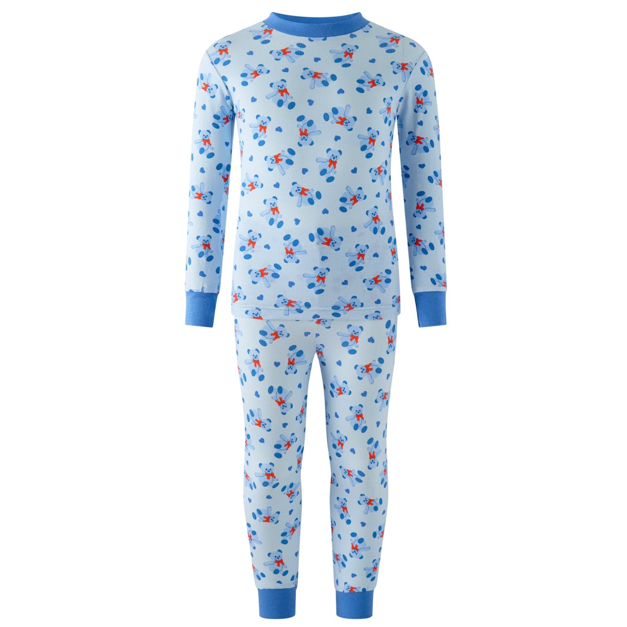 The Bear Jersey Pajamas are cozy, soft sleepwear featuring an adorable bear motif that adds playful charm to bedtime. Made from comfortable, breathable jersey knit, they offer a relaxed fit and easy movement for restful nights. Perfect for everyday wear or gifting, these pajamas blend comfort and cute style in one snug set.