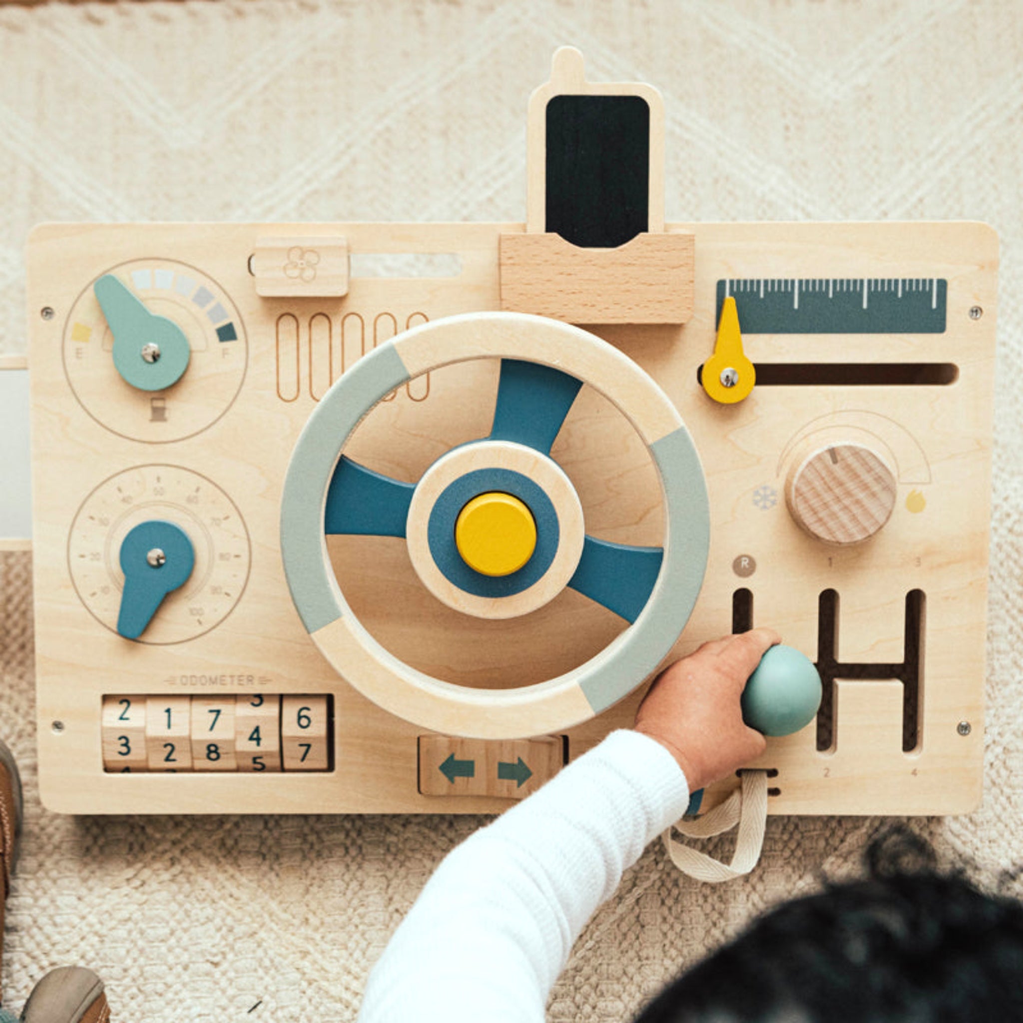 The Beep! Beep! Busy Board is a hands-on activity center packed with engaging buttons, switches, gears, and wheels. Designed to develop fine motor skills, problem-solving, and hand-eye coordination, its bright colors and interactive elements keep little learners entertained while encouraging curiosity and imaginative play.