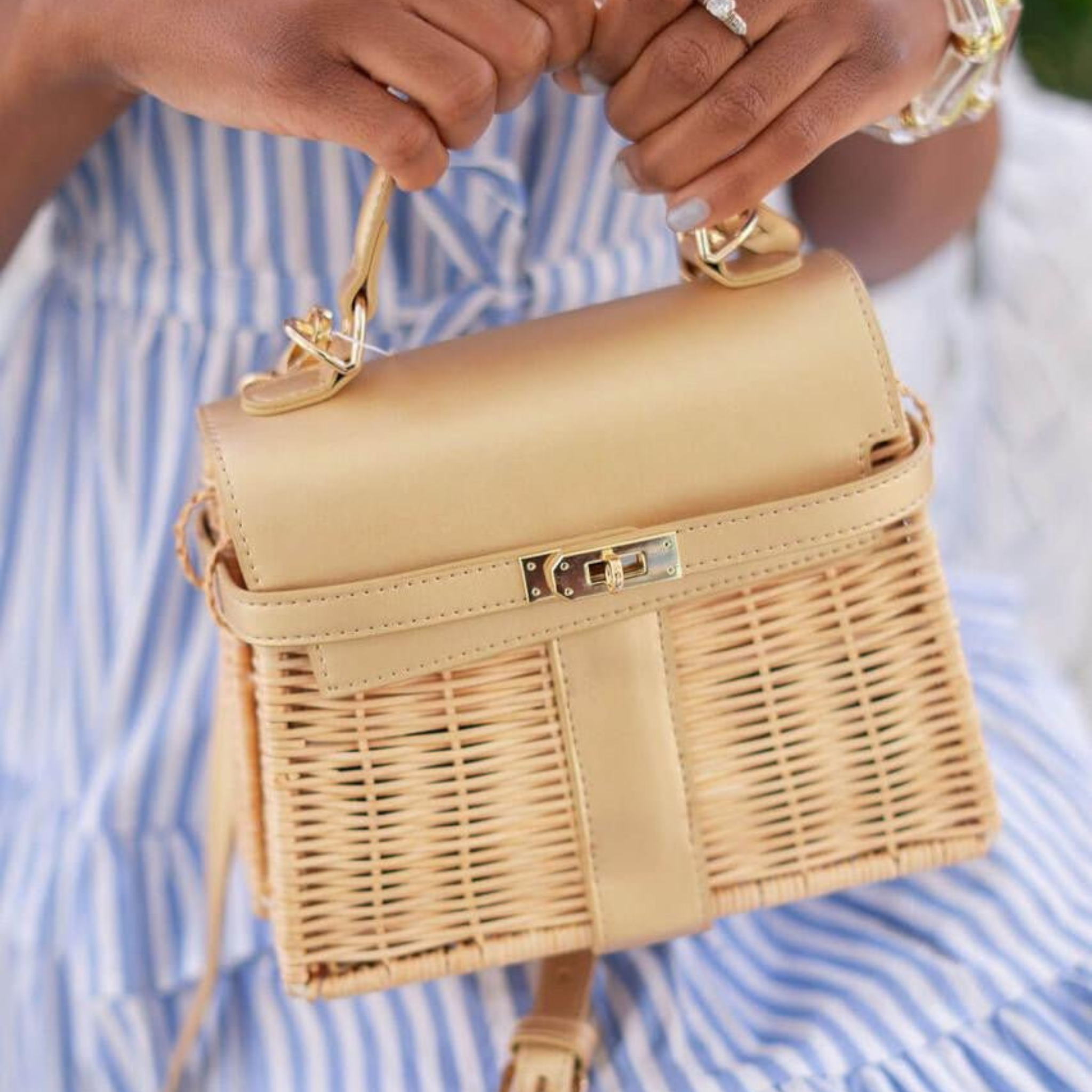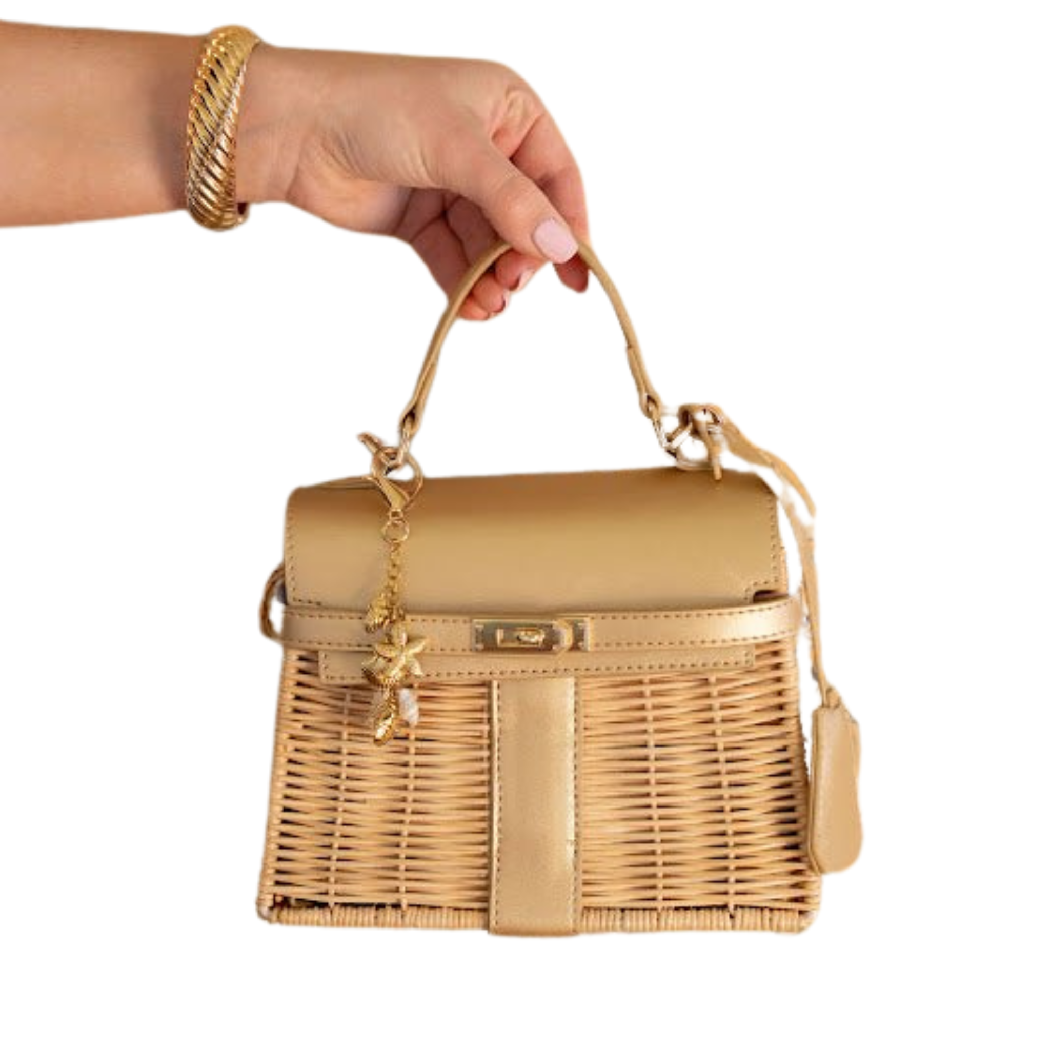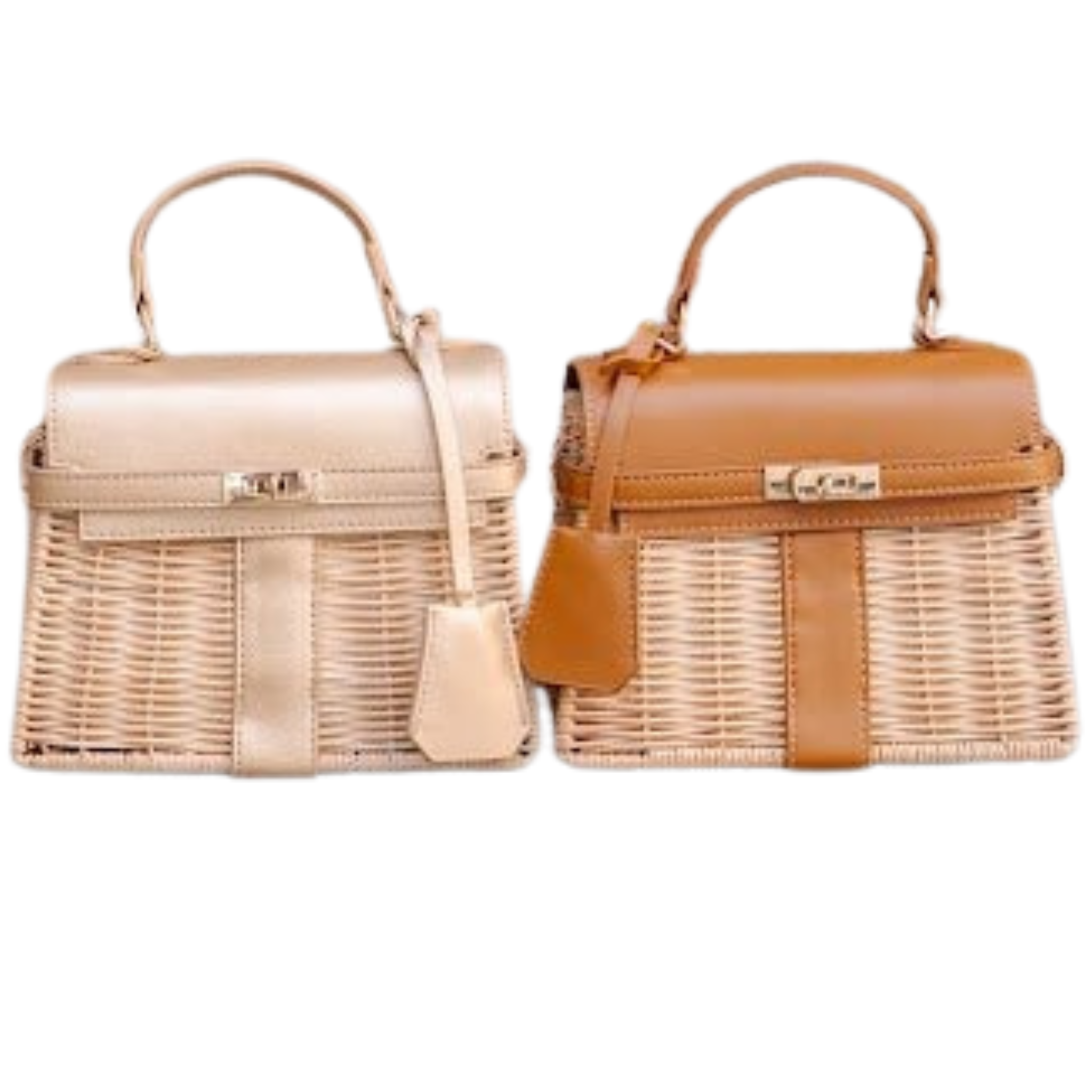 This elegant wicker handbag is meticulously crafted from premium woven straw, offering a natural yet refined texture that exudes effortless charm. The design is complemented by subtle gold hardware, adding a touch of sophistication without overpowering its earthy appeal.