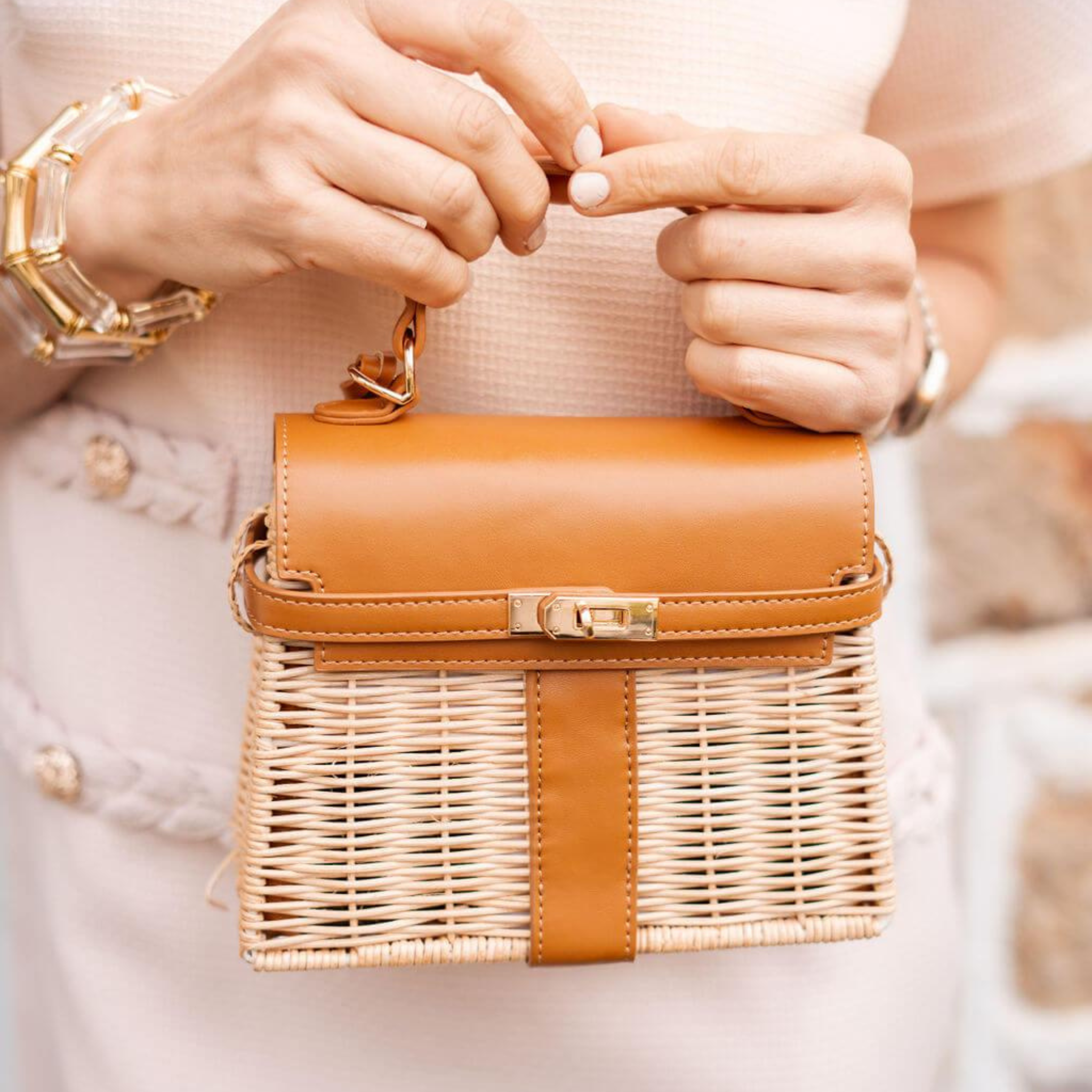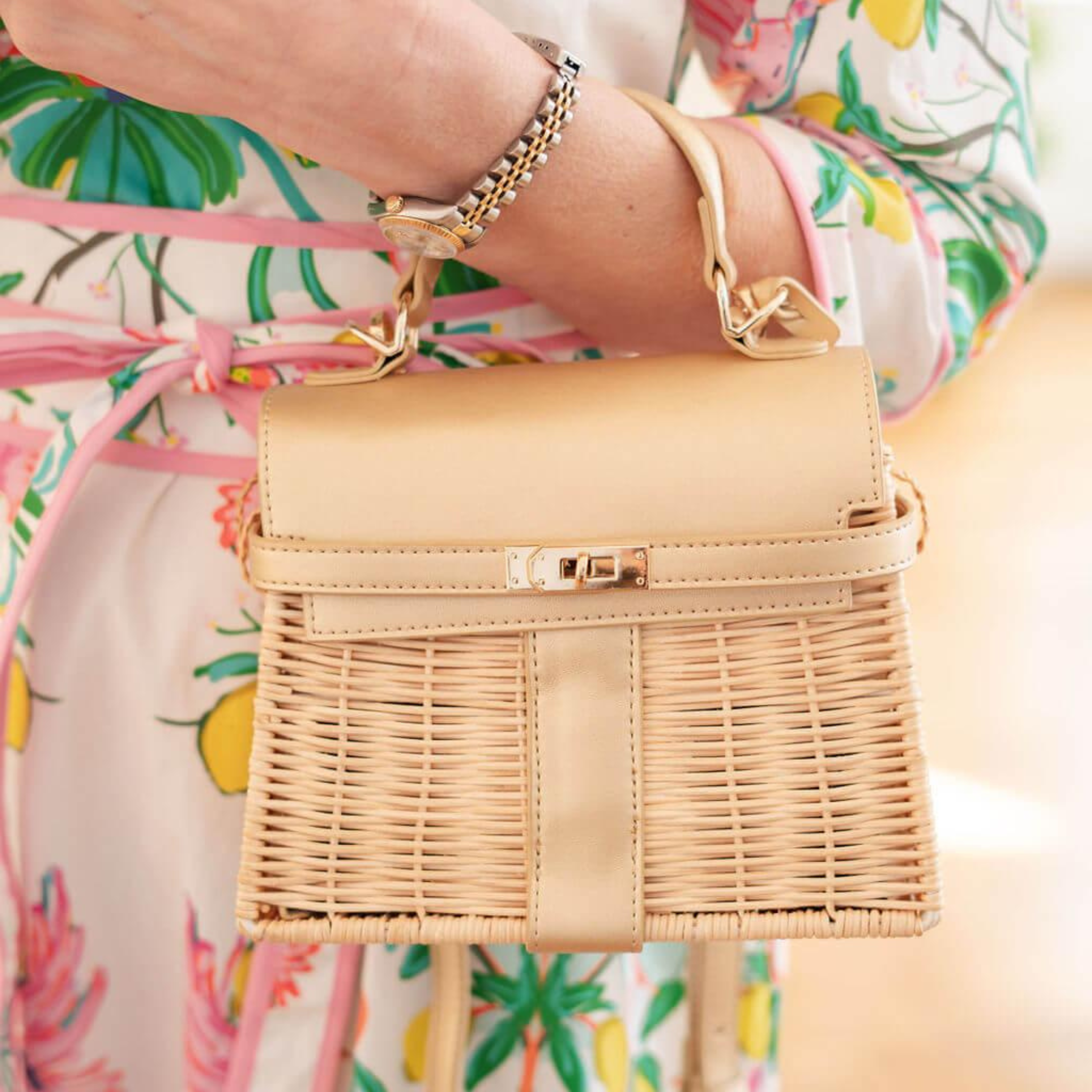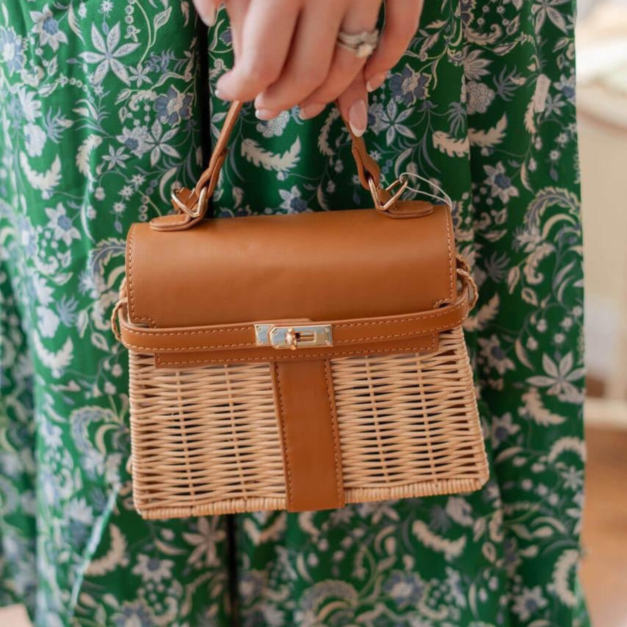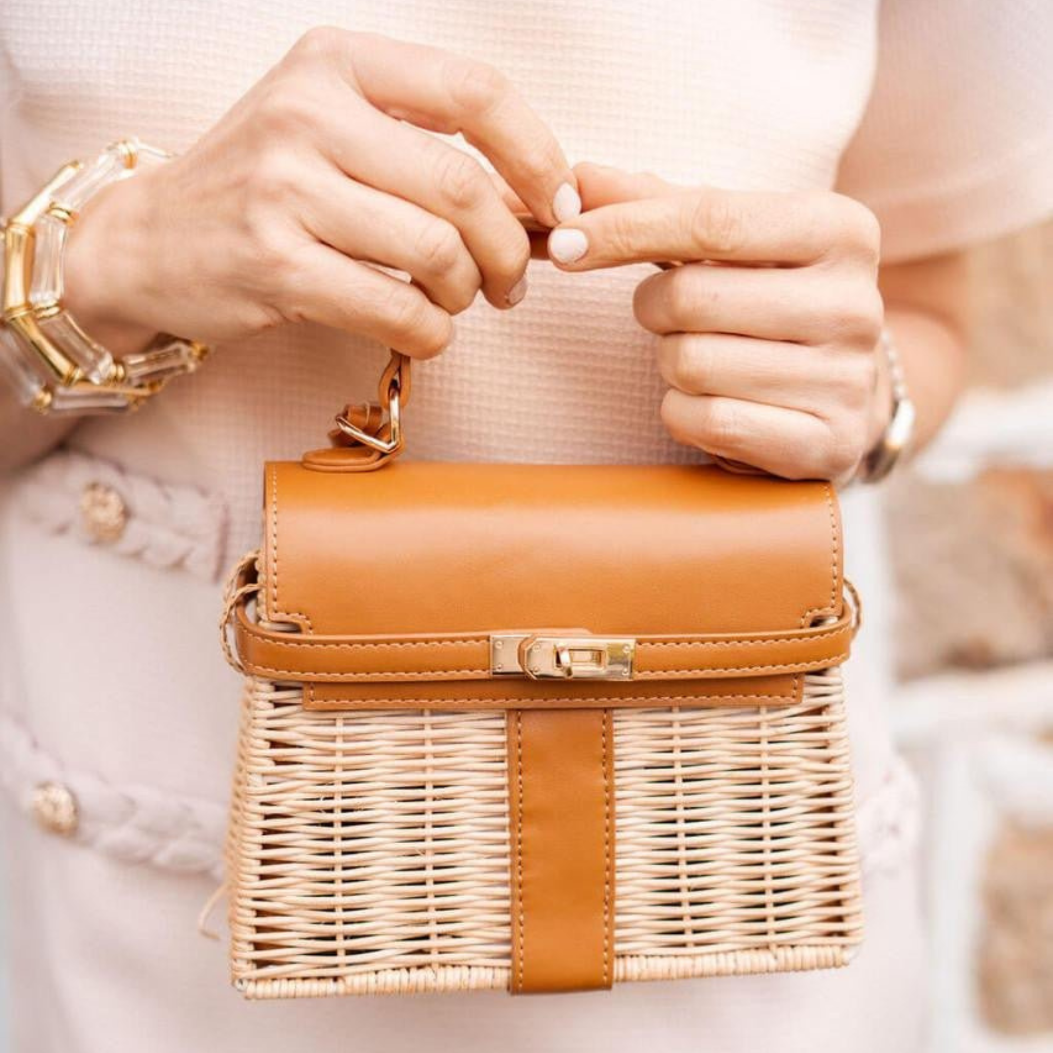 This elegant wicker handbag is meticulously crafted from premium woven straw, offering a natural yet refined texture that exudes effortless charm. The design is complemented by subtle gold hardware, adding a touch of sophistication without overpowering its earthy appeal.