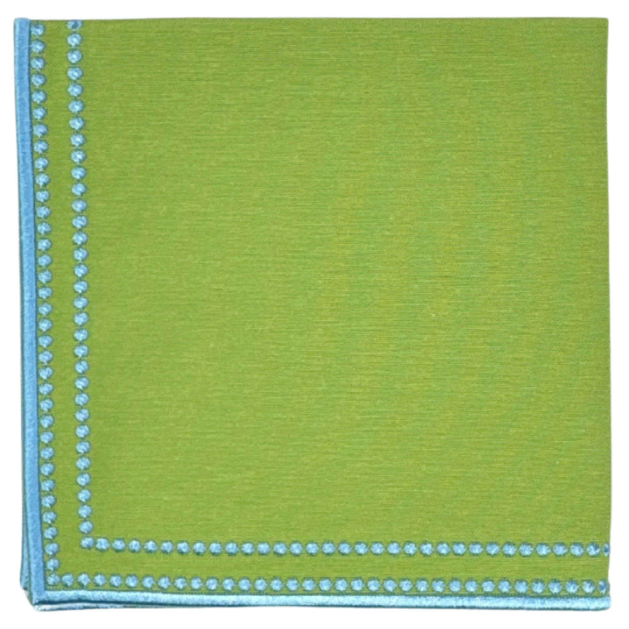 Add classic glamour to your table with our hand-crafted green Charlotte Napkin with blue embroidery. The luxurious feel of this napkin is meticulously crafted from a premium blend of cotton. Its stain-resistant properties ensure long-lasting beauty, while the intricate embroidery adds a touch of opulence that captures attention. This napkin provides the perfect canvas to enhance your table decor. Its versatile size caters to various table settings, creating a captivating visual impact that resonates with sophistication.