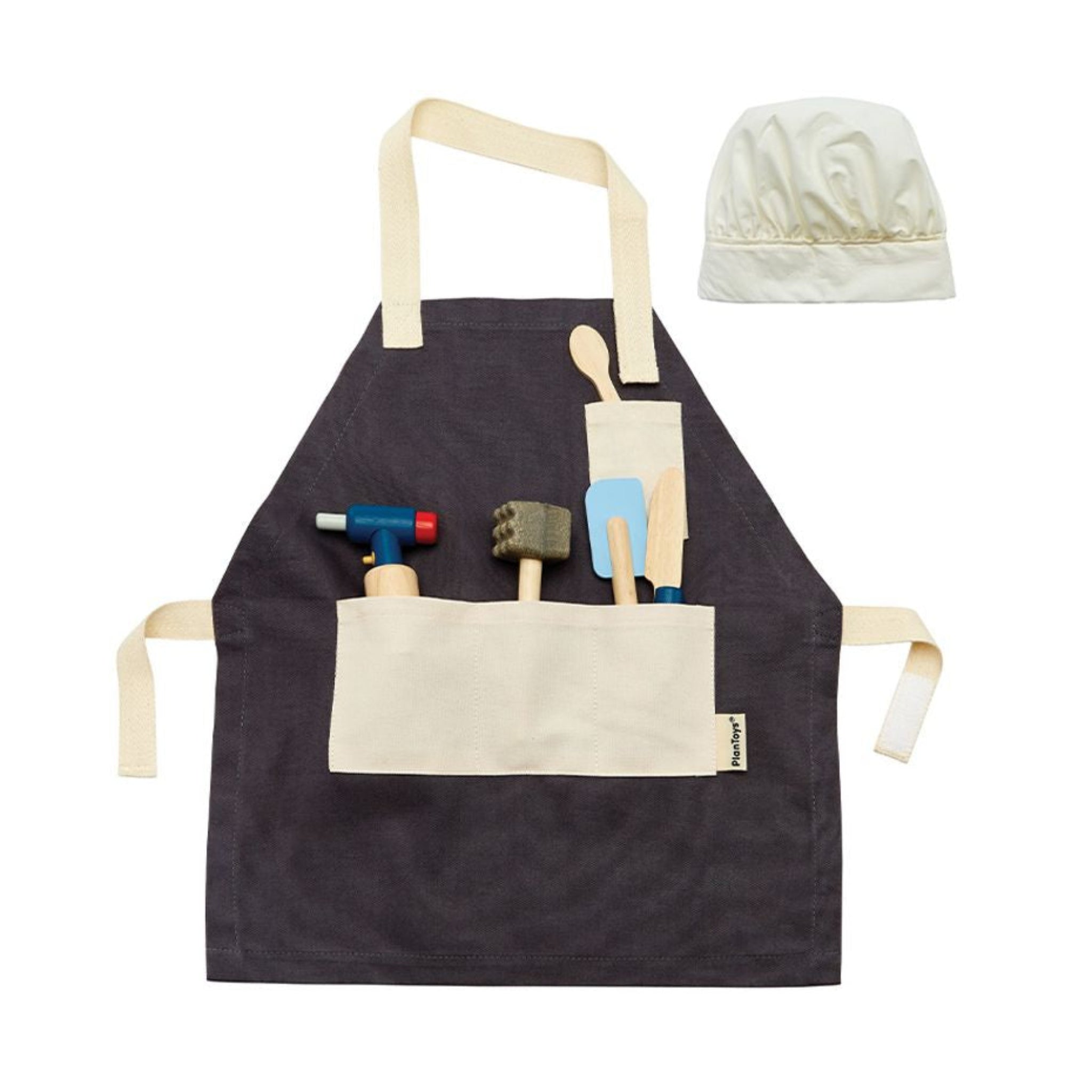 Introduce children to the joy of cooking! The Chef Set includes easy-grip cooking tools that are designed for small hands with big appetites. Expand upon this set with other PlanToys kitchenware as a young chef discovers all the possibilities of pretend-play cooking.