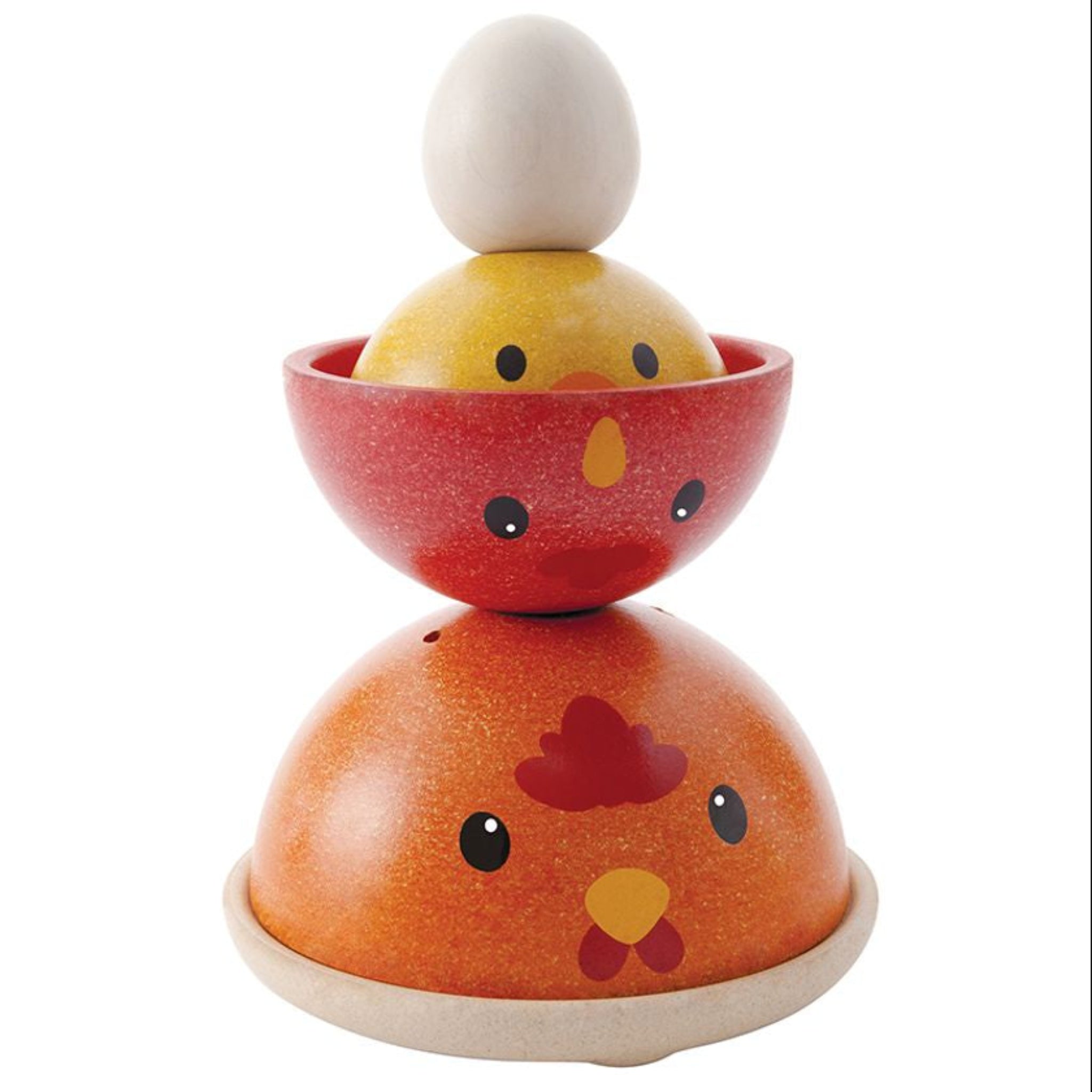 This basic nesting toy comes with a chicken theme. It consists of 4 pieces and a circle base. Children are able to learn about the sequencing, life cycle of a chicken and play in various styles.