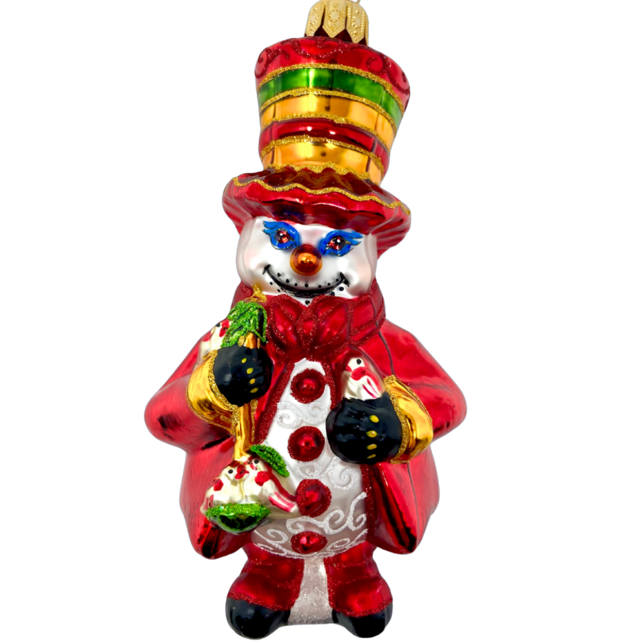 This delightful snowman is hand-painted in soft, spiced tones of cinnamon, cream, and clove, bringing a rustic twist to a classic winter character. Accented with glittering details, a cozy scarf, and a friendly smile, he captures the heartwarming essence of the season. Perfect for adding a touch of homespun elegance and festive warmth to your Christmas tree.